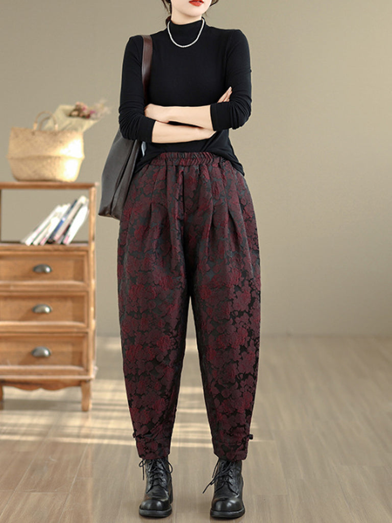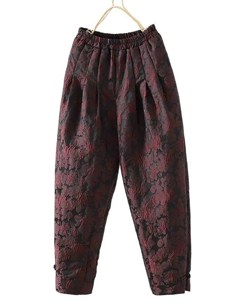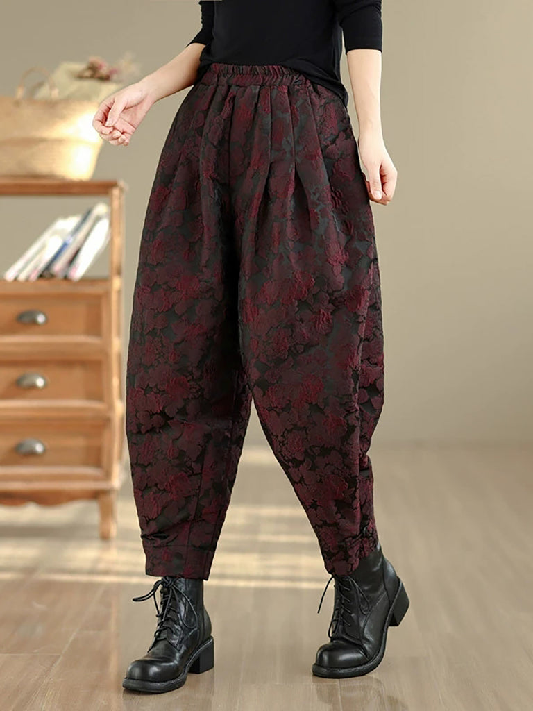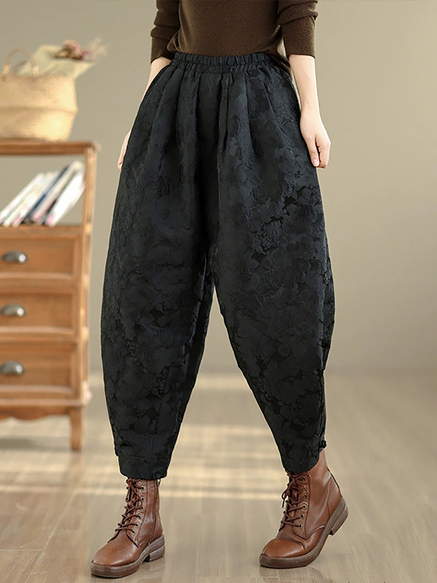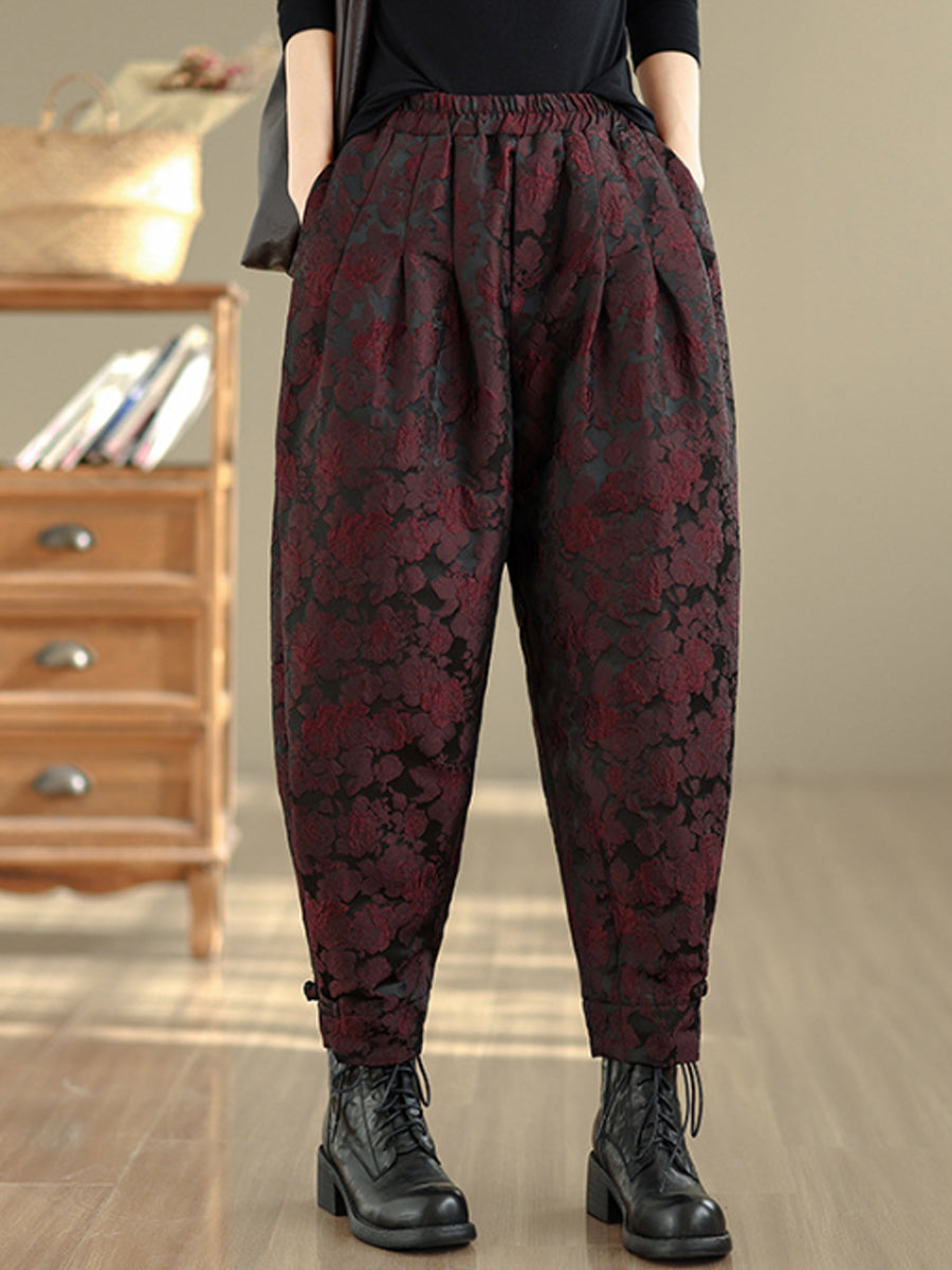 Pantaloni harem da donna con fodera in pile jacquard a fiori invernali