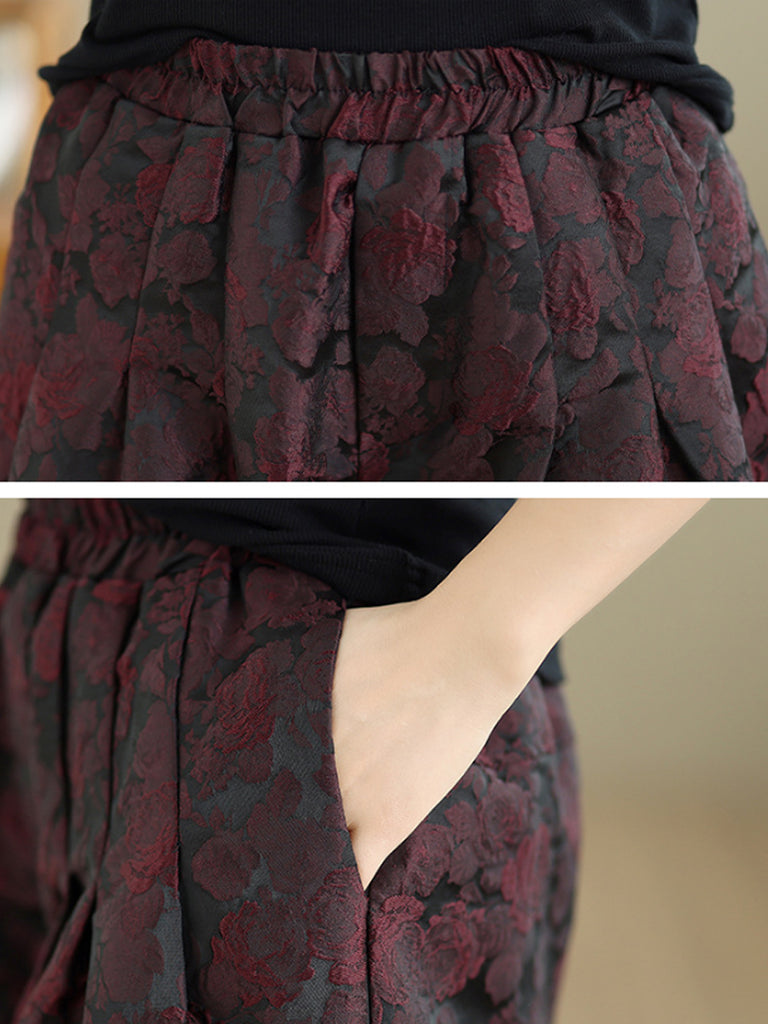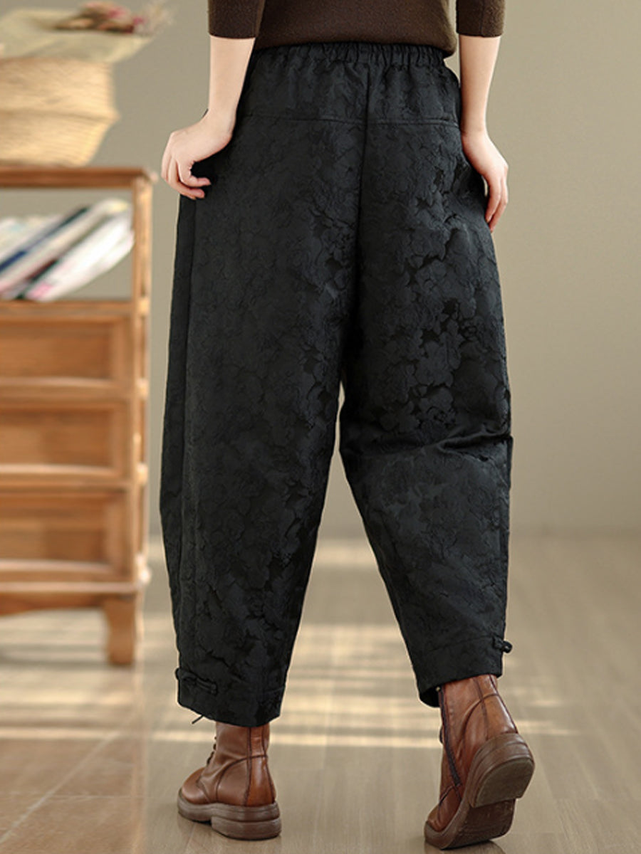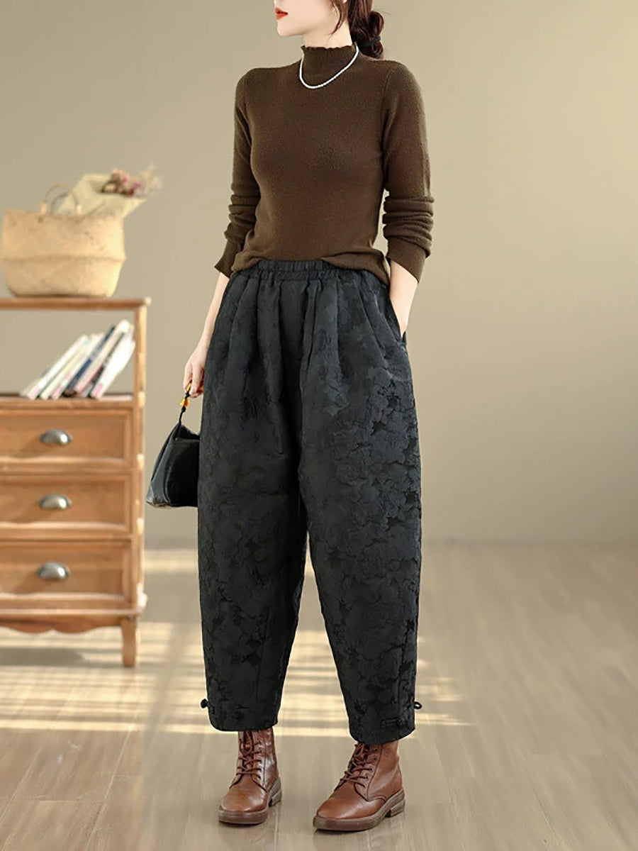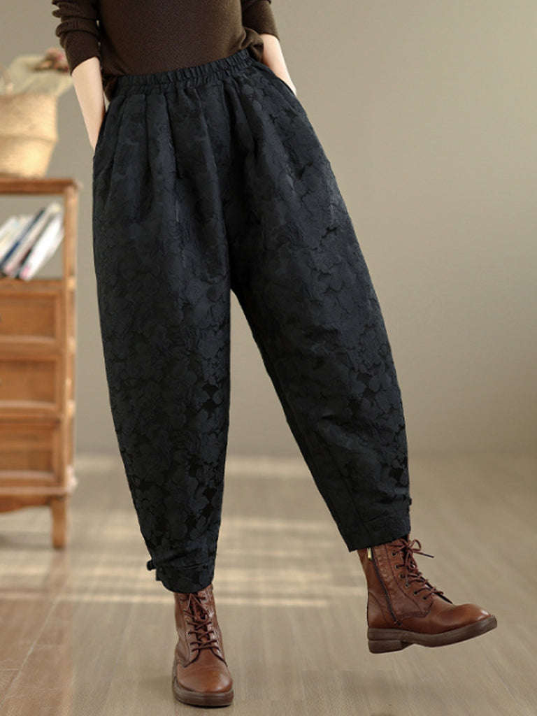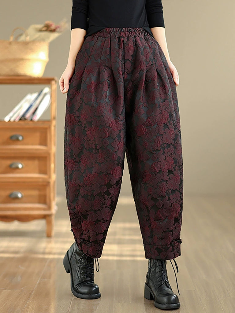 Pantaloni harem da donna con fodera in pile jacquard a fiori invernali