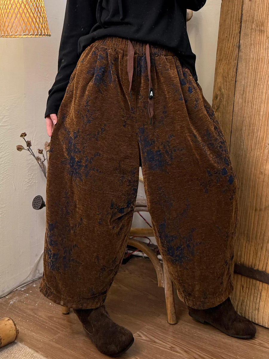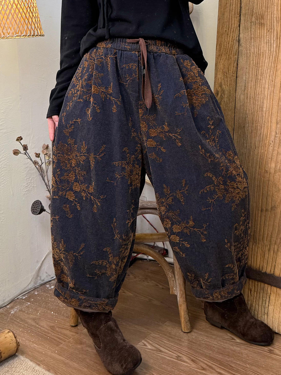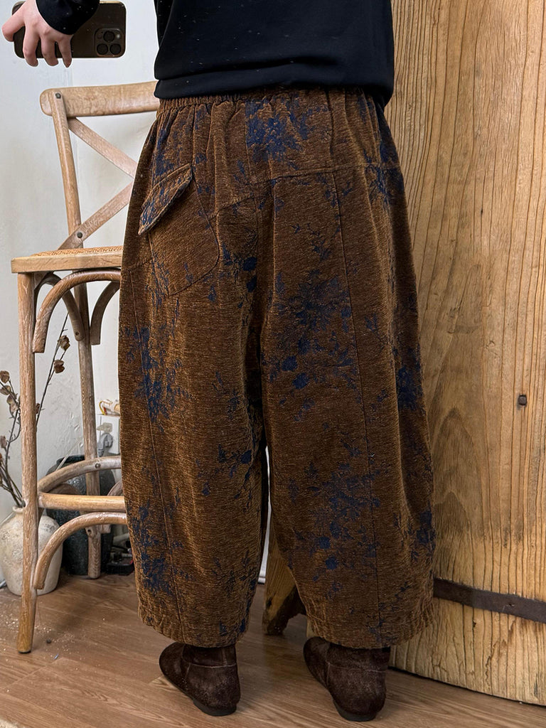 Pantaloni harem invernali da donna in jacquard floreale retrò