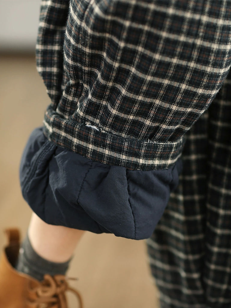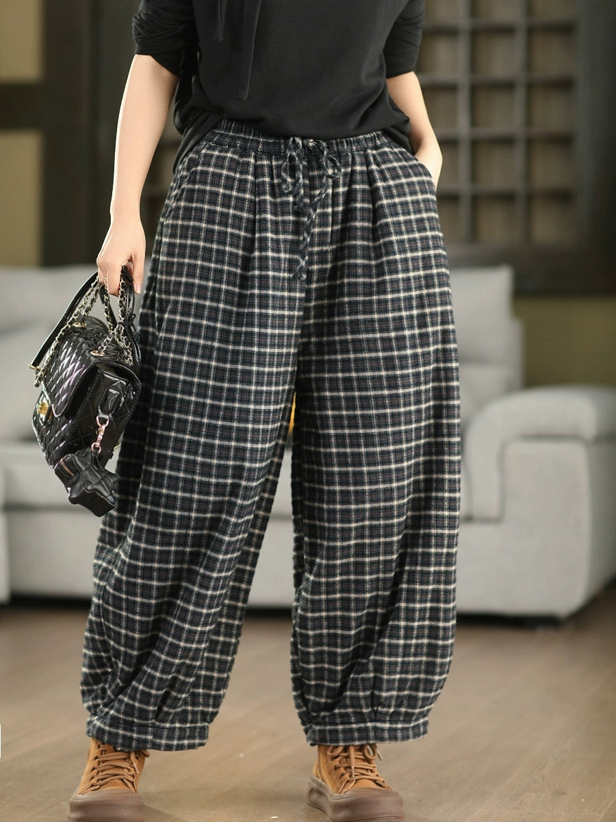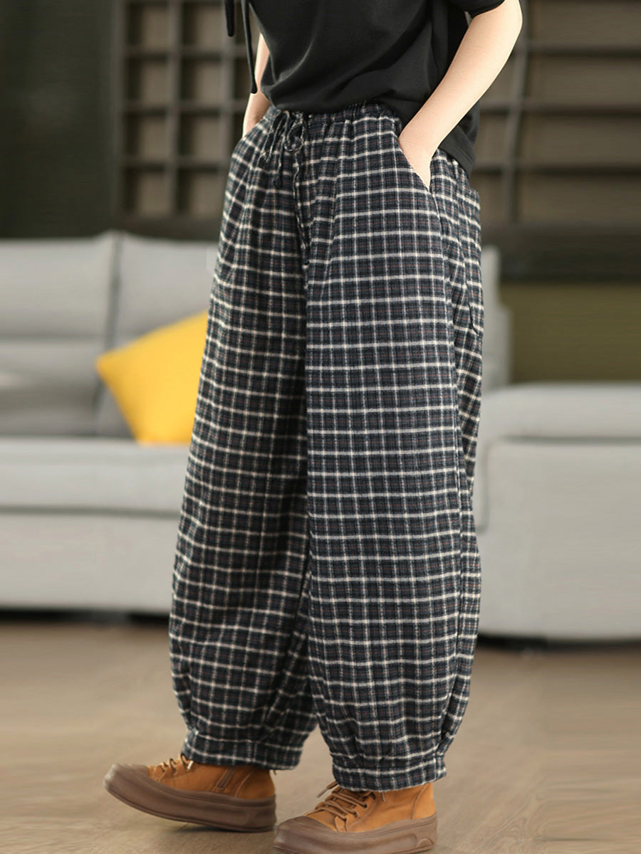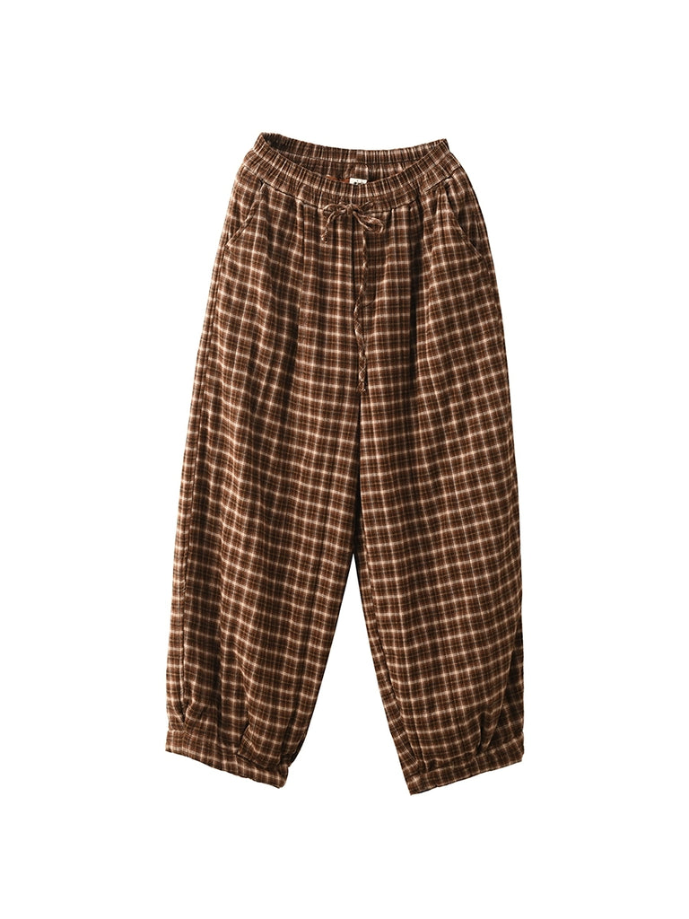 Pantaloni harem imbottiti in 100% cotone con motivo scozzese retrò invernale da donna