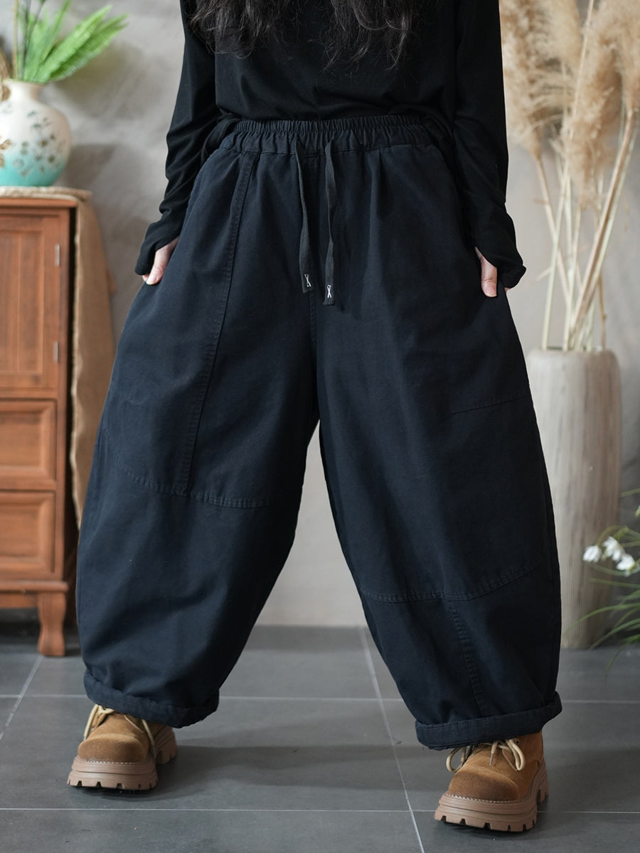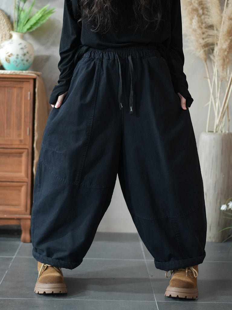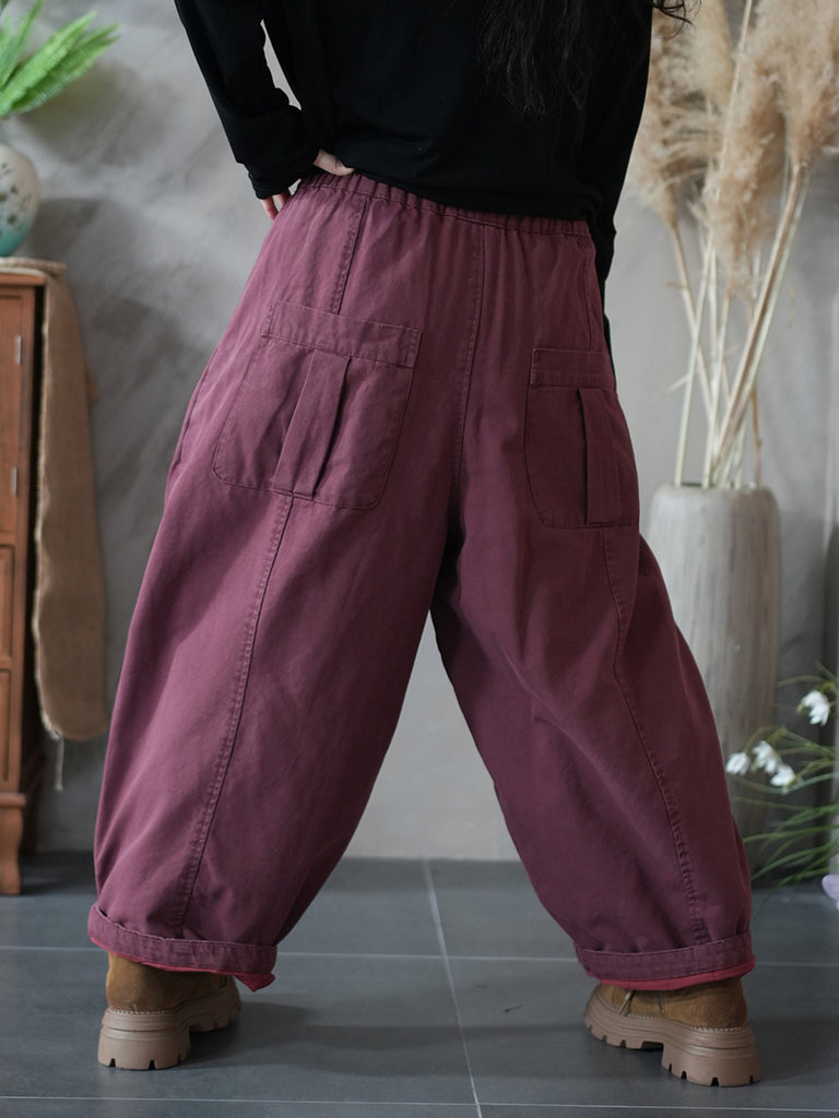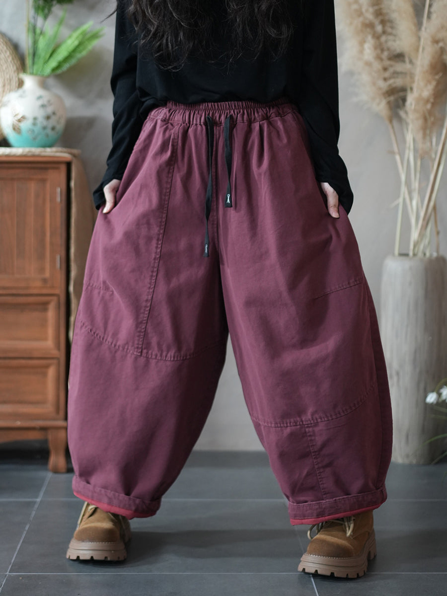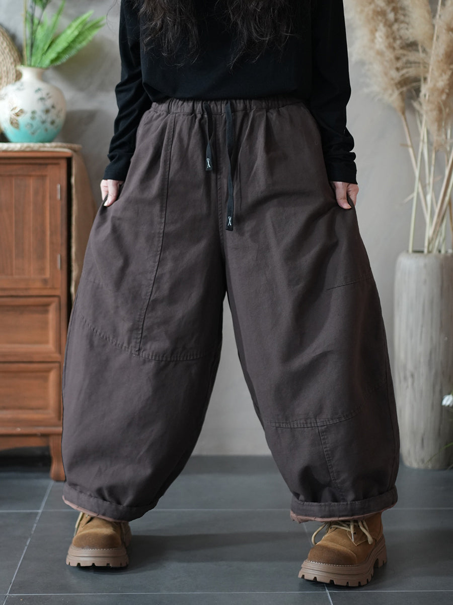 Pantaloni harem imbottiti invernali retrò da donna, di colore puro