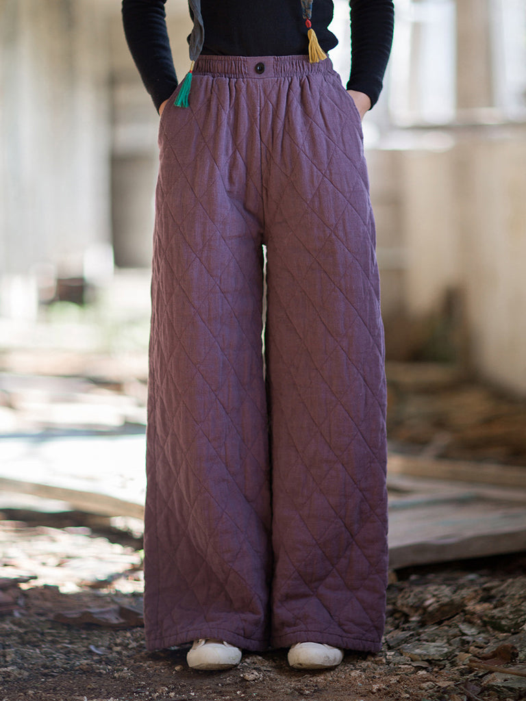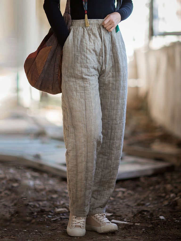 Pantaloni harem imbottiti in lino puro vintage invernale da donna