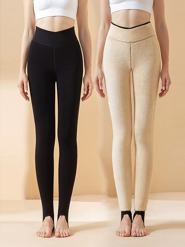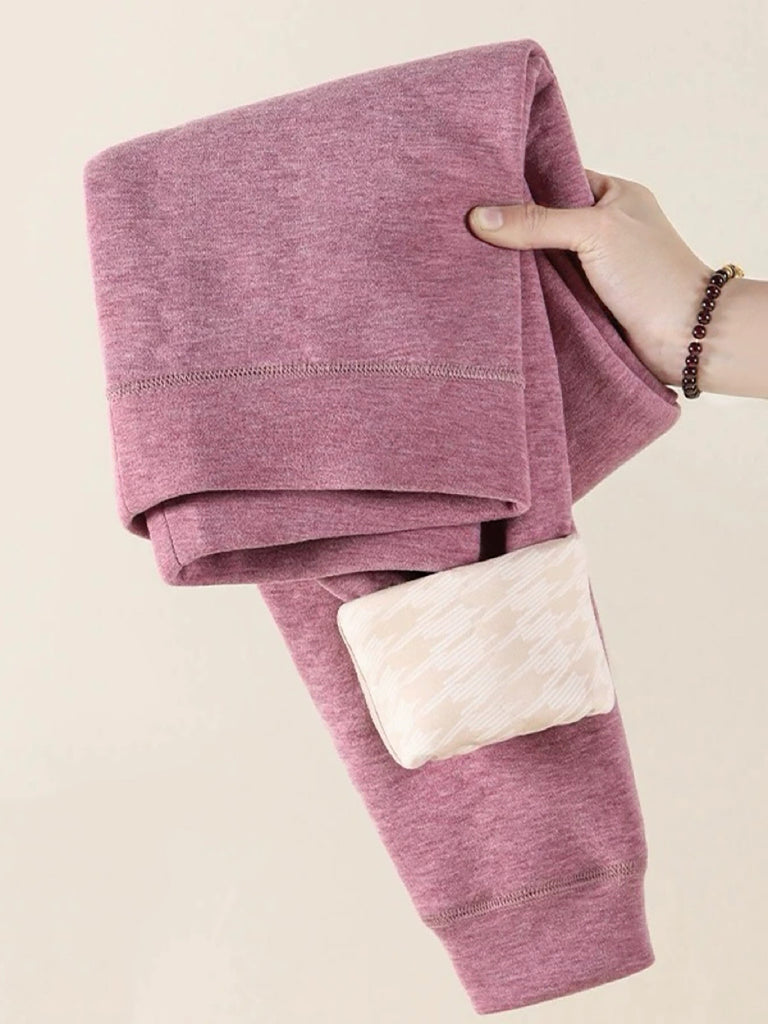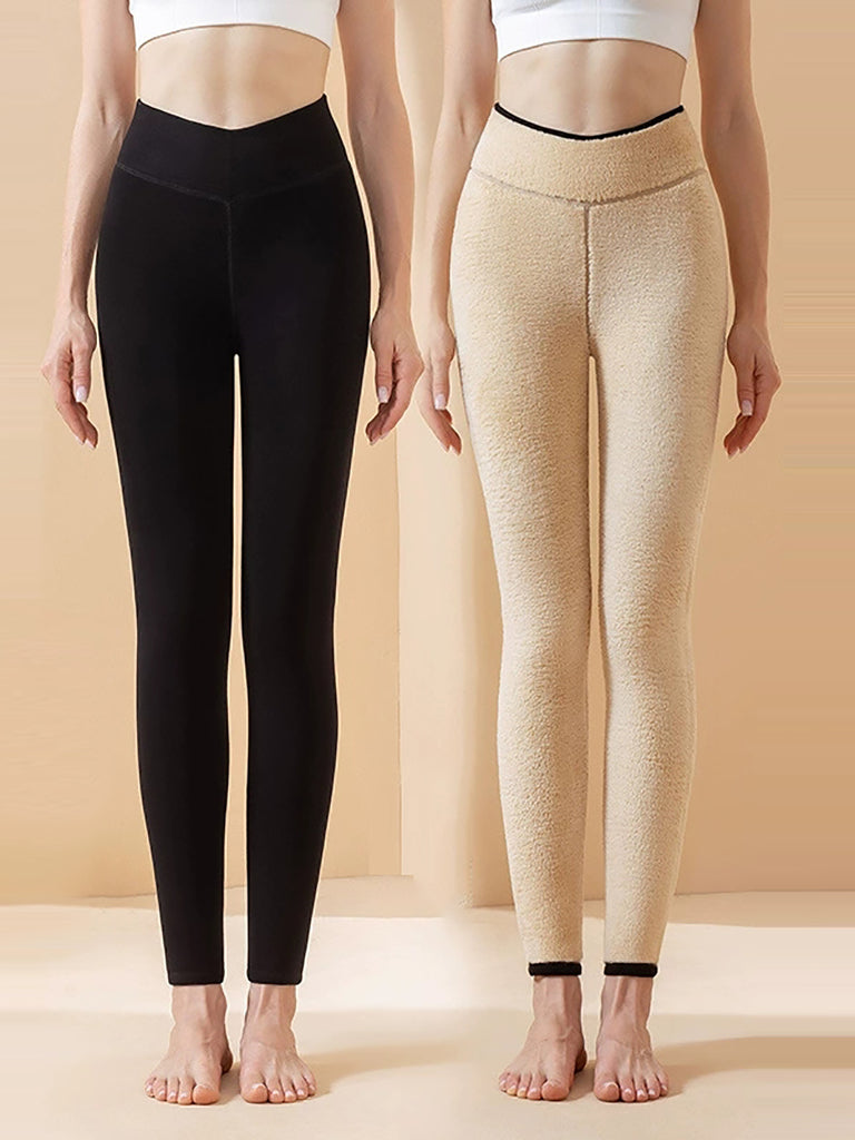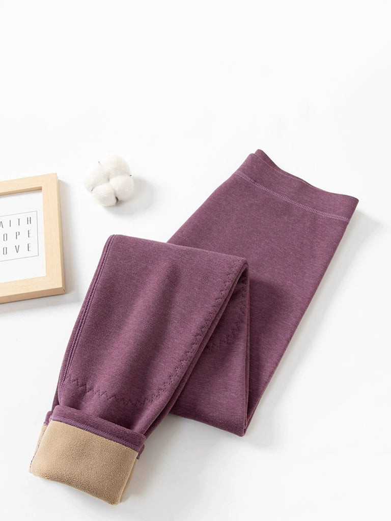Leggings invernali caldi e foderati in pile color puro