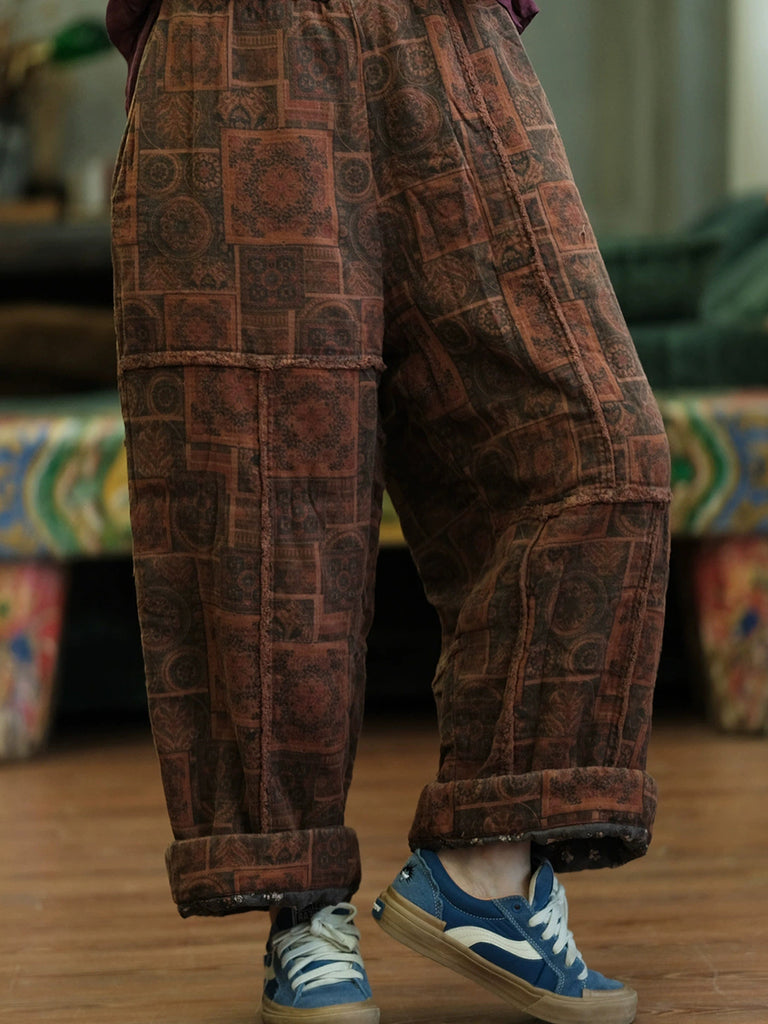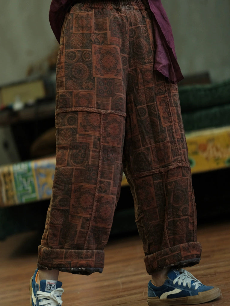 Pantaloni harem invernali da donna in jacquard floreale retrò