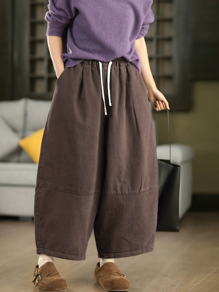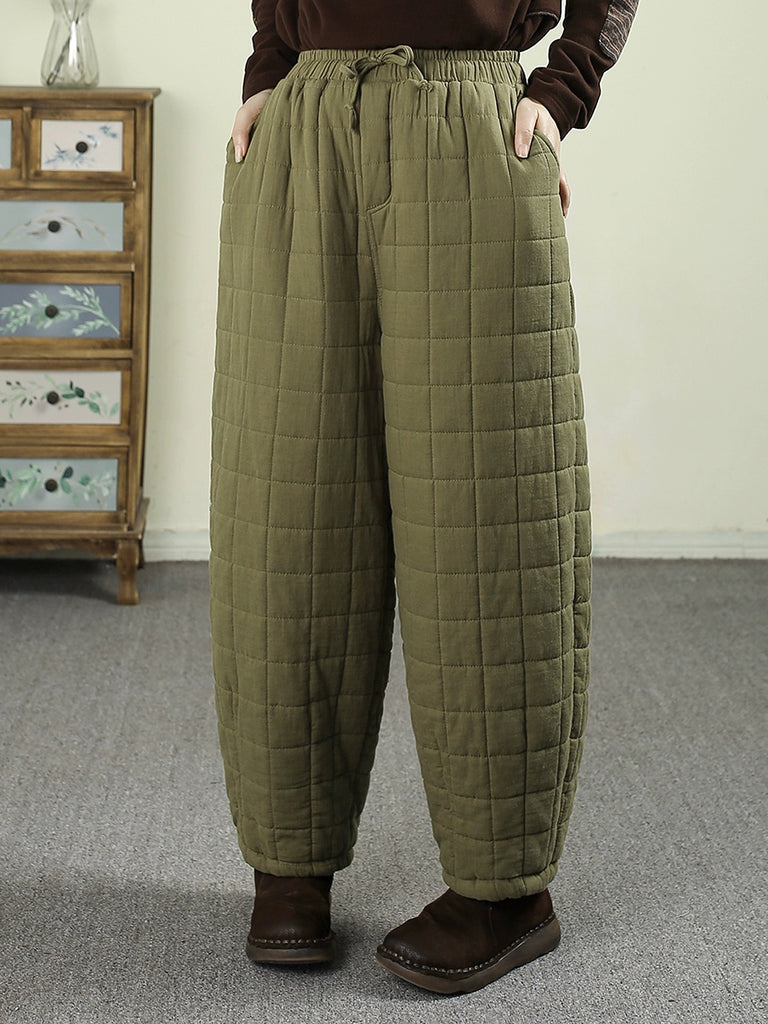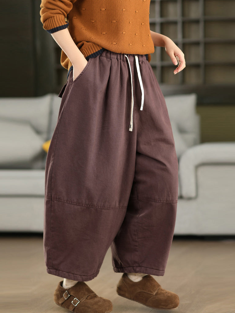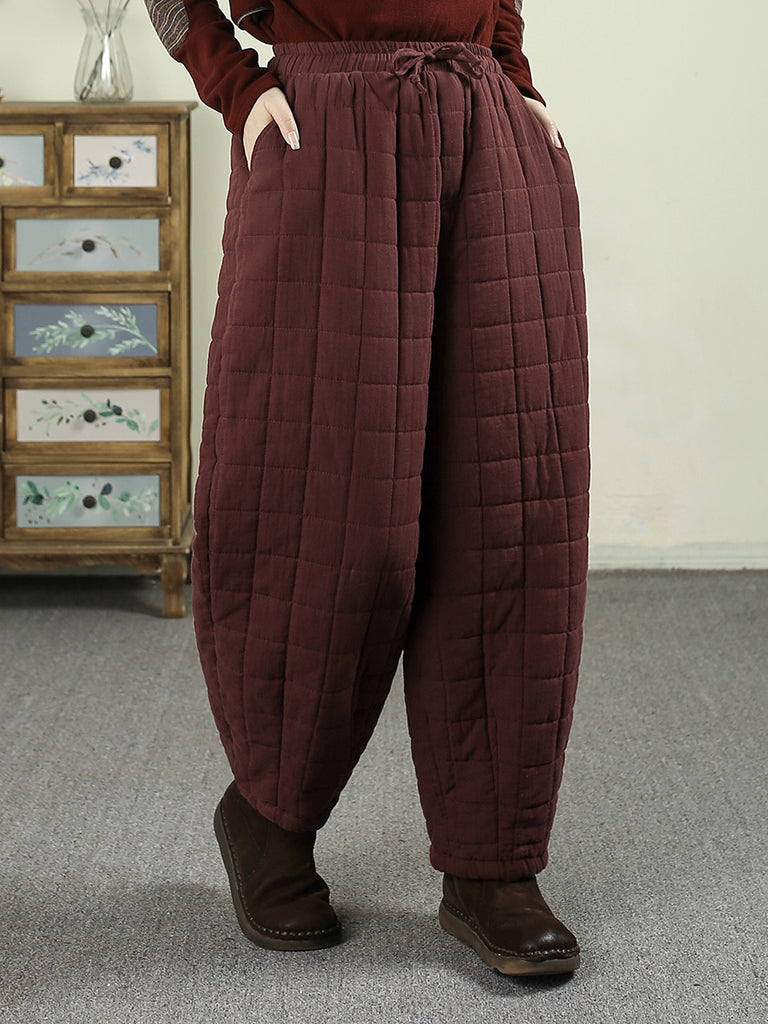 Pantaloni harem imbottiti invernali retrò da donna, di colore puro