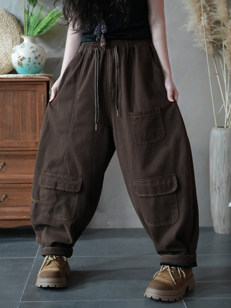 Pantaloni harem invernali da donna in cotone foderato in pile