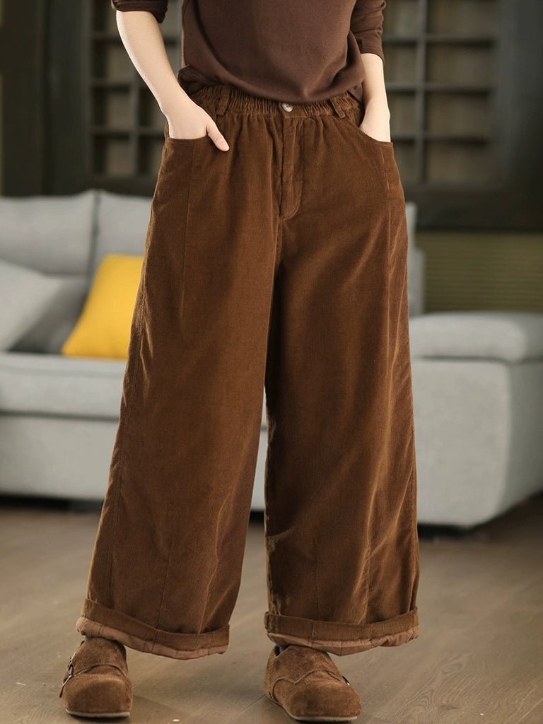 Pantaloni harem invernali da donna in velluto a coste con fodera in pile