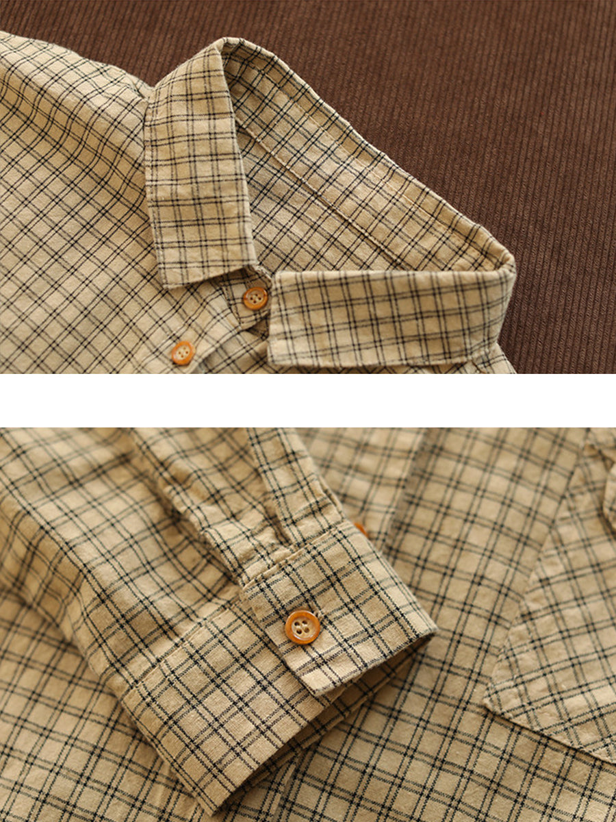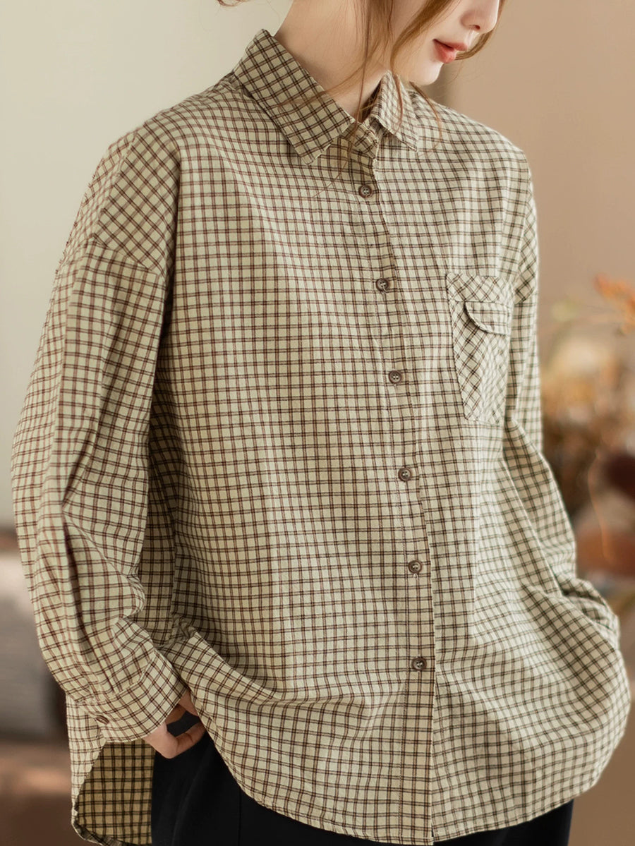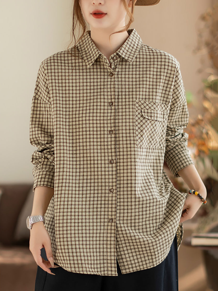 Camicia da donna con colletto rovesciato e motivo a traliccio artistico primaverile
