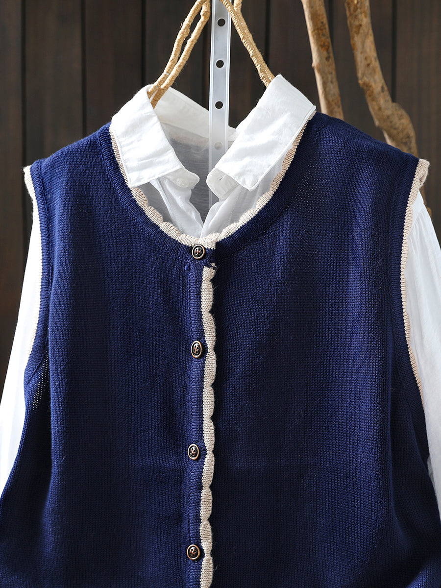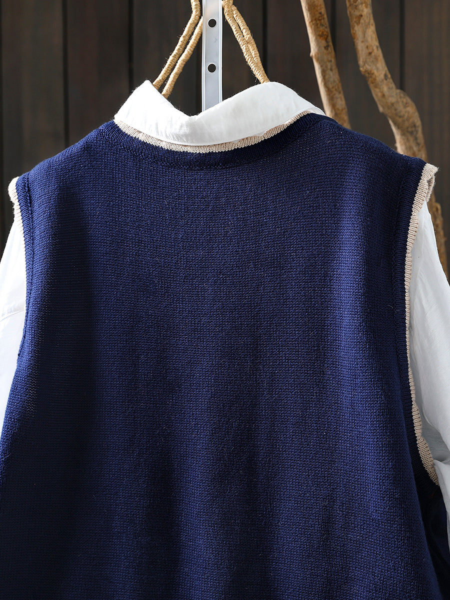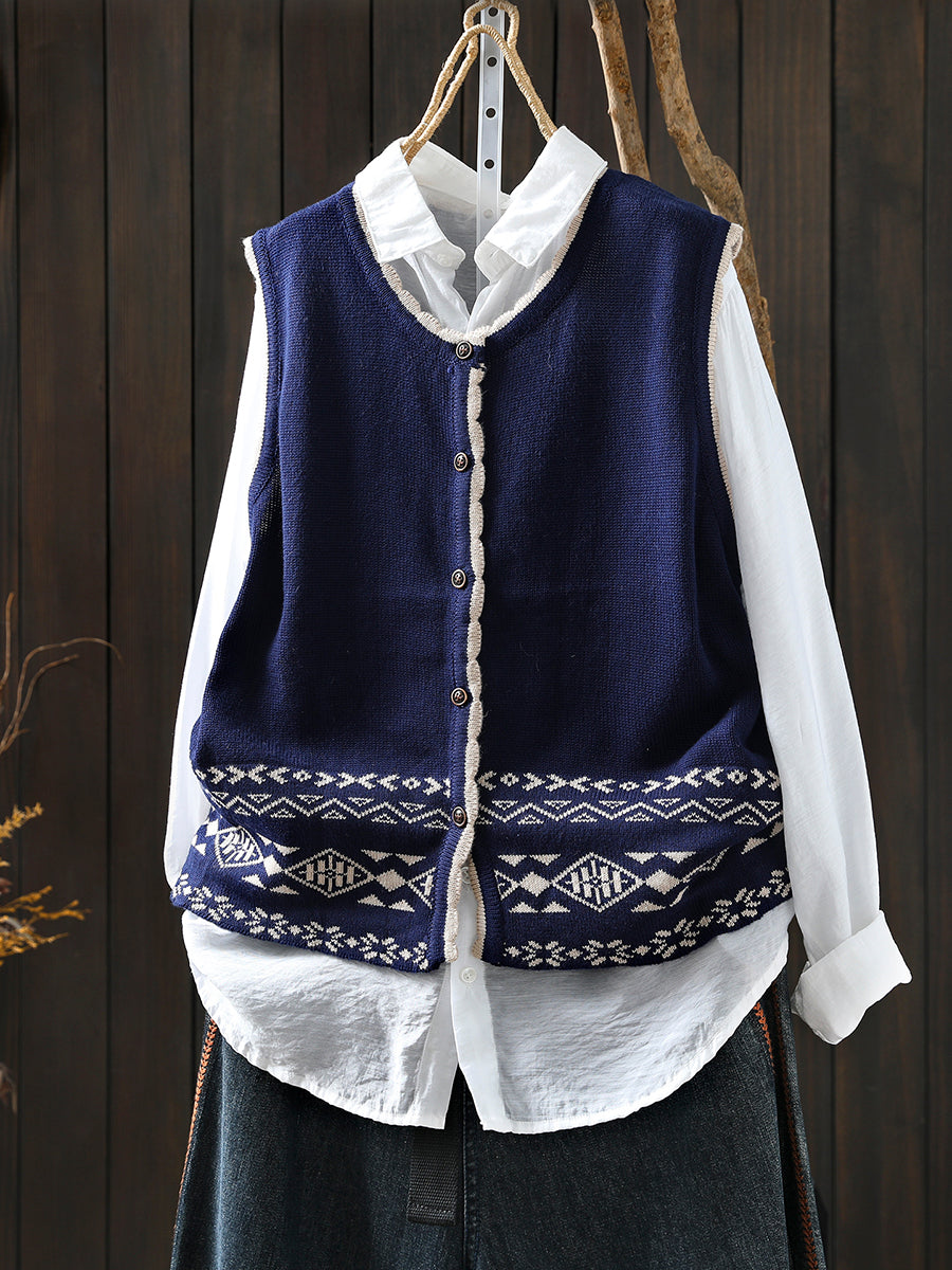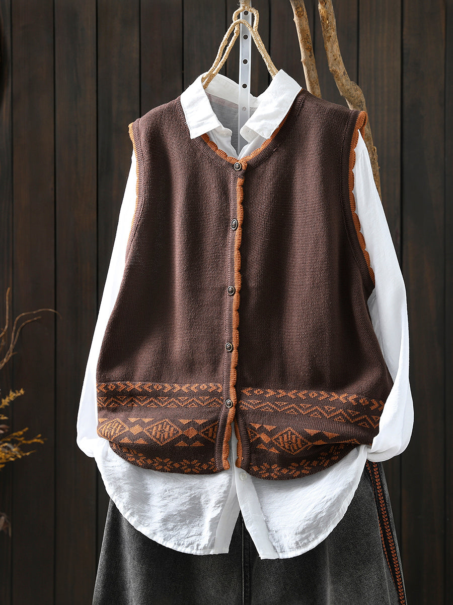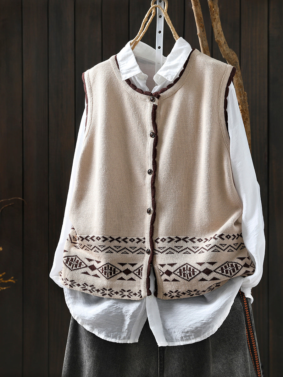 Gilet lavorato a maglia con scollo a V, stile artistico, da donna, autunno