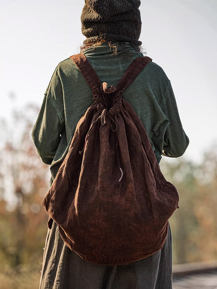 Zaino di grande capacità in lino tinto con coloranti vegetali, modello 1107 Vintage.