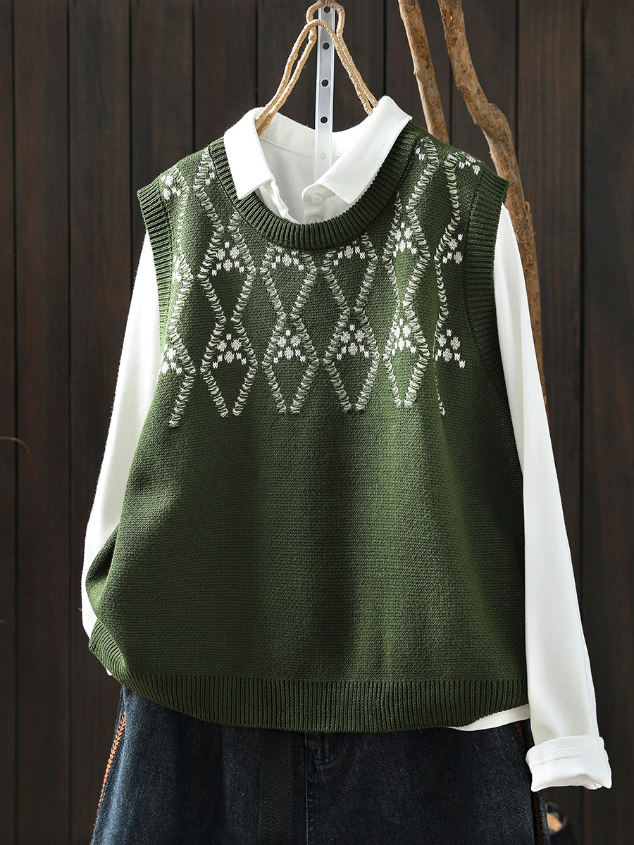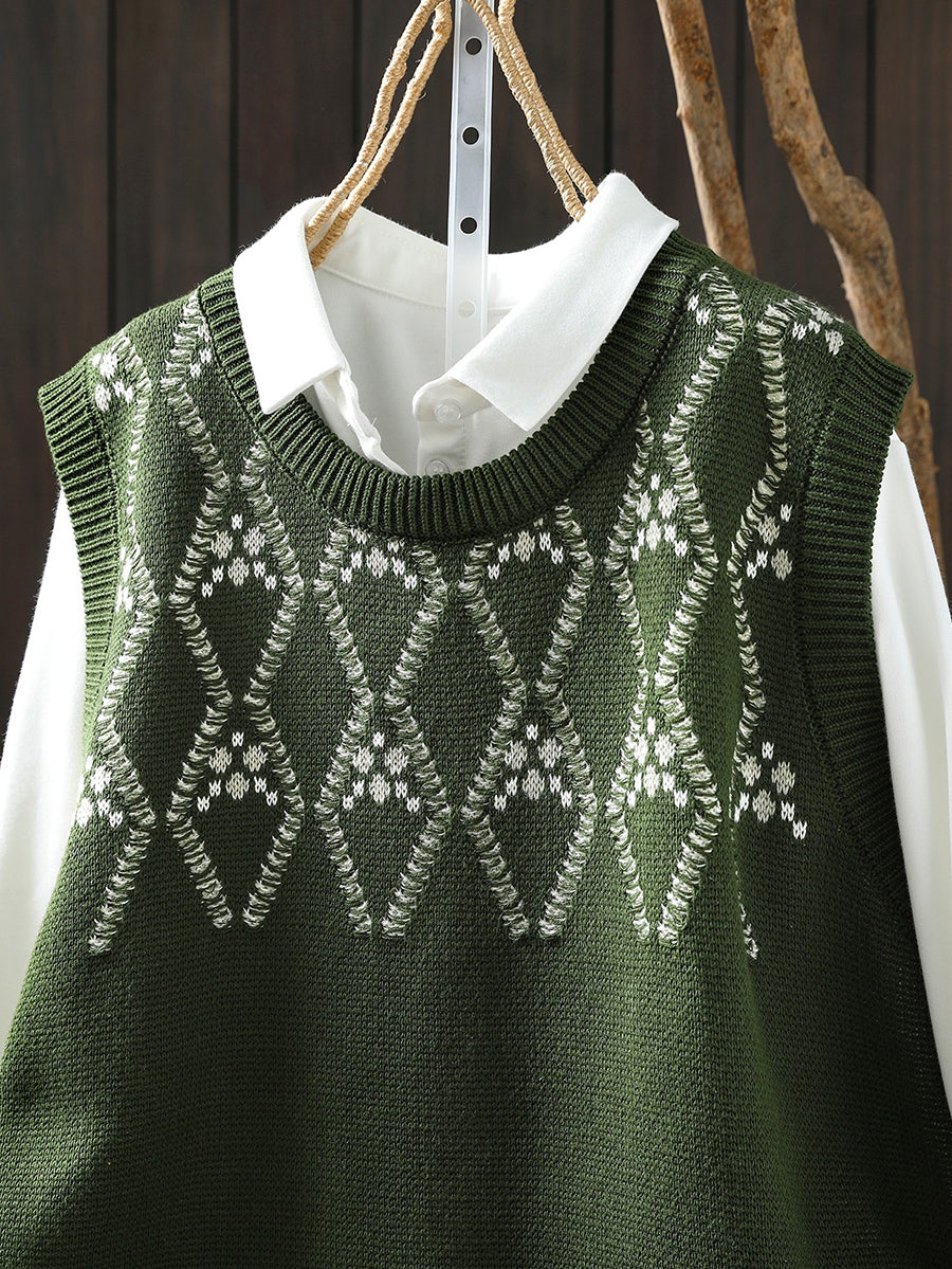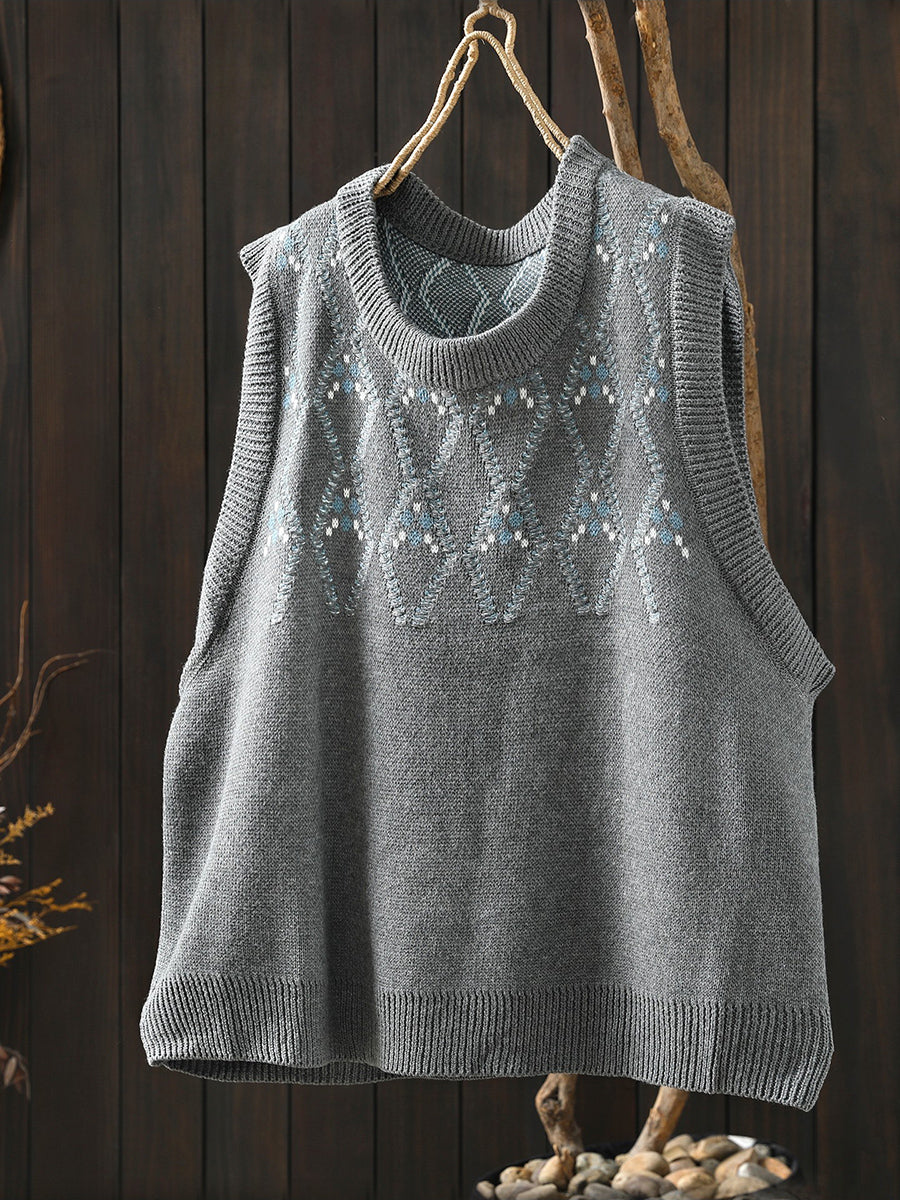Gilet lavorato a maglia con scollo a V e motivo romboidale artistico autunnale da donna