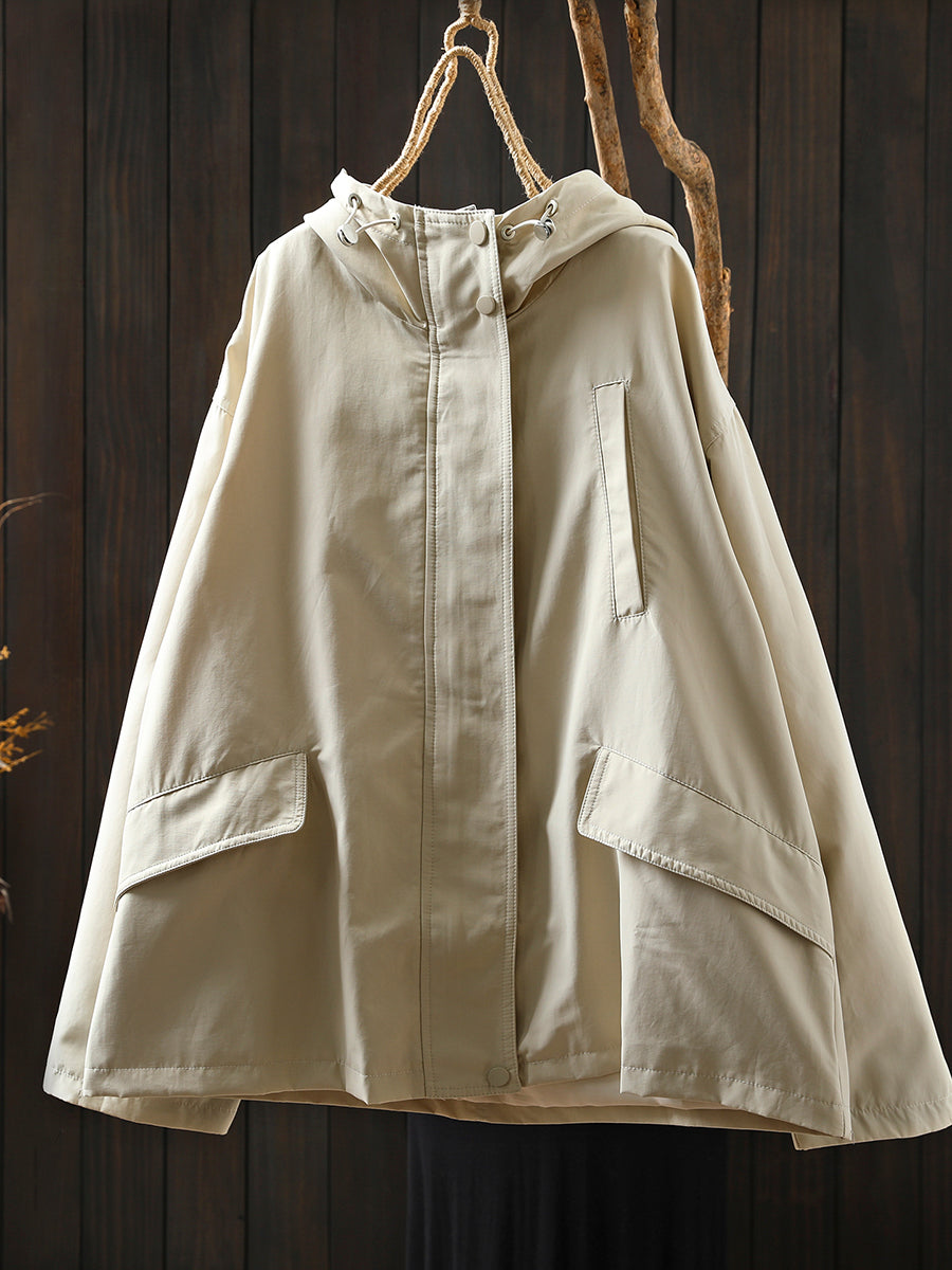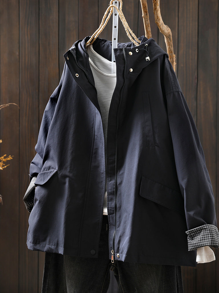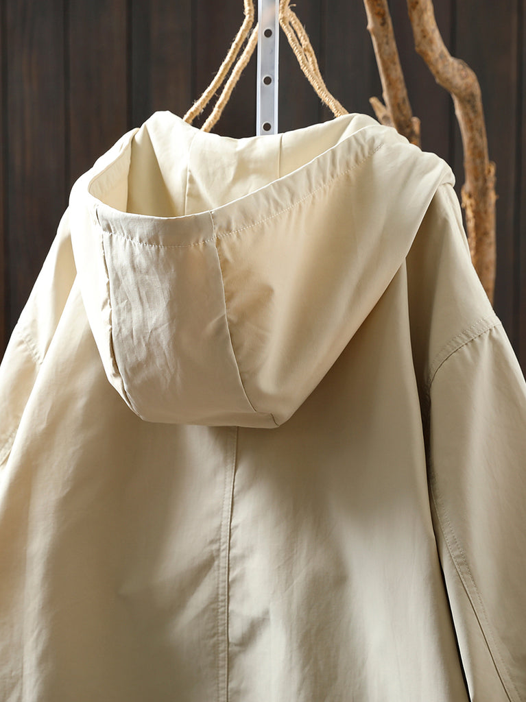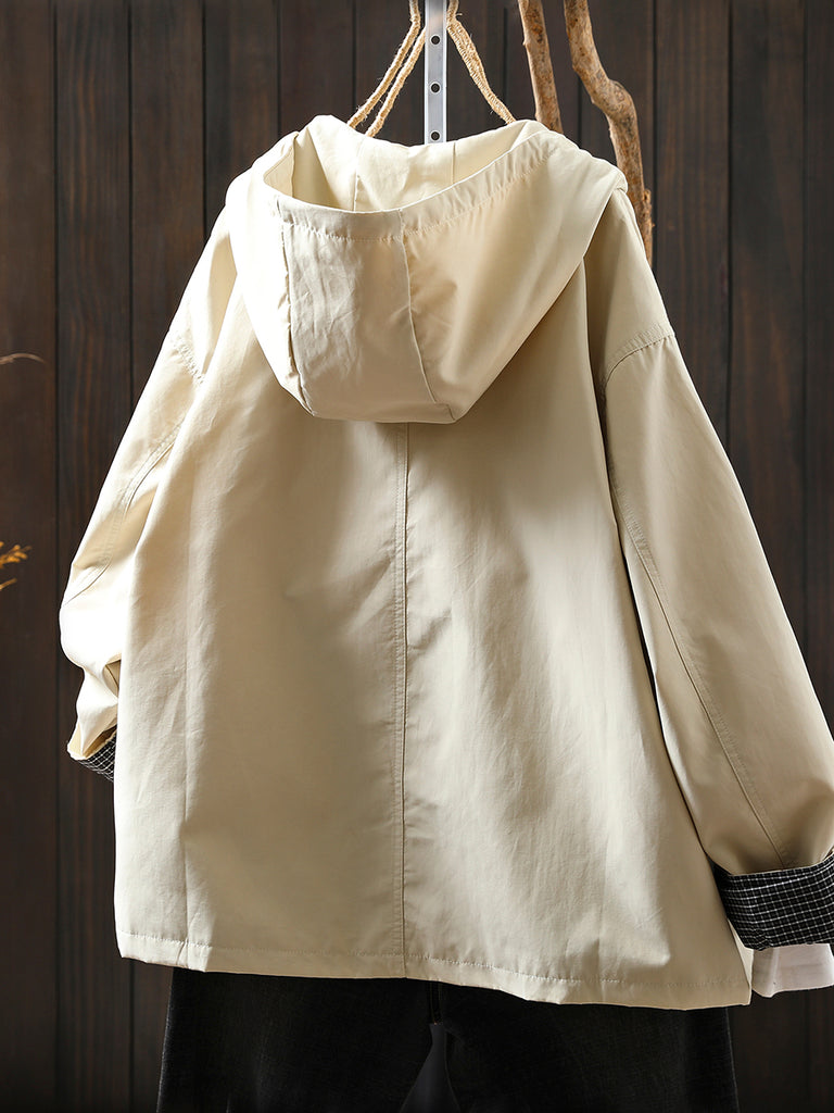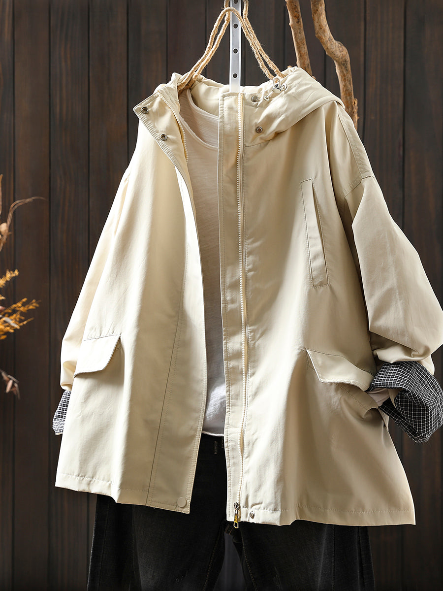Giacca antivento con cappuccio casual autunnale da donna, colore puro