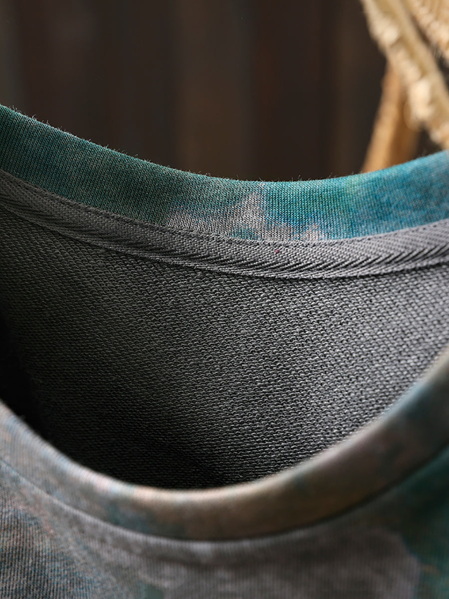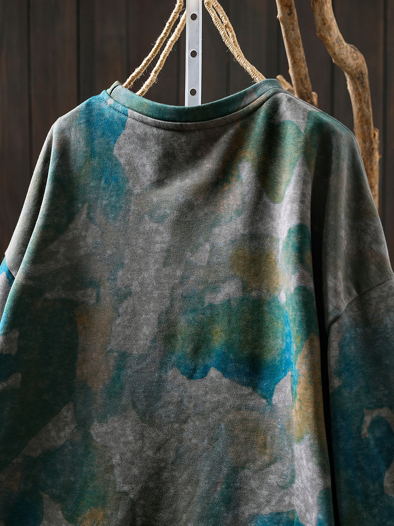 Camicetta da donna in cotone 100% con scollo a V e stampa tie-dye alla moda autunnale