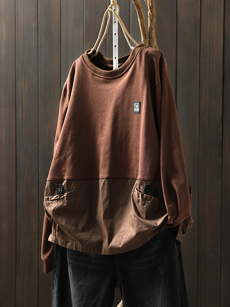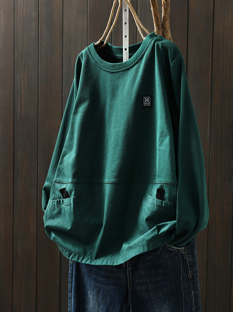 Camicia da donna autunnale in puro cotone con scollo a V e colori uniti