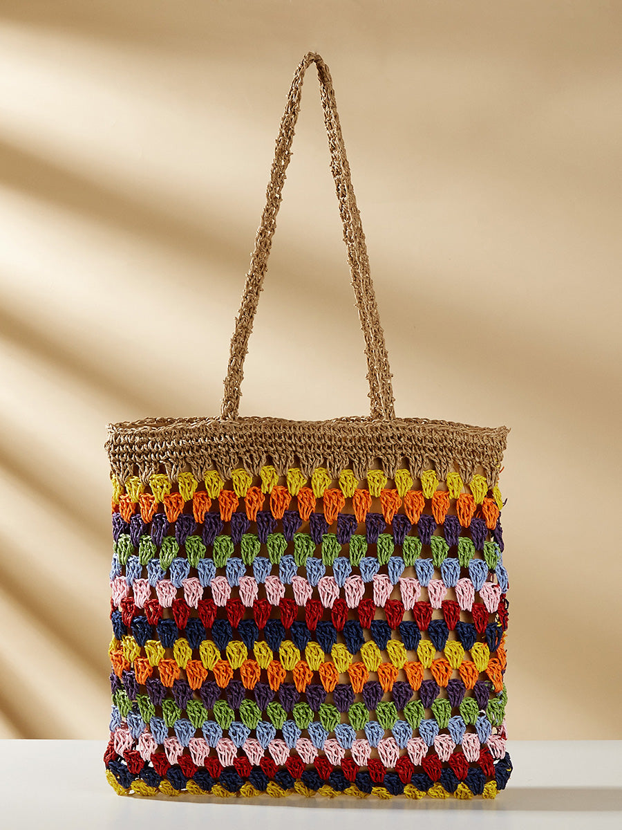 Borsa a tracolla etnica da donna in paglia intrecciata colorata