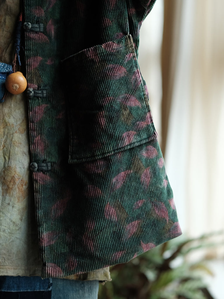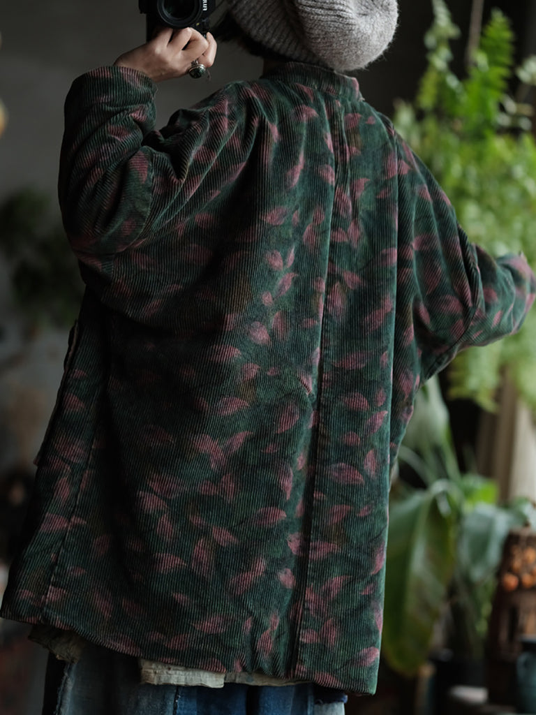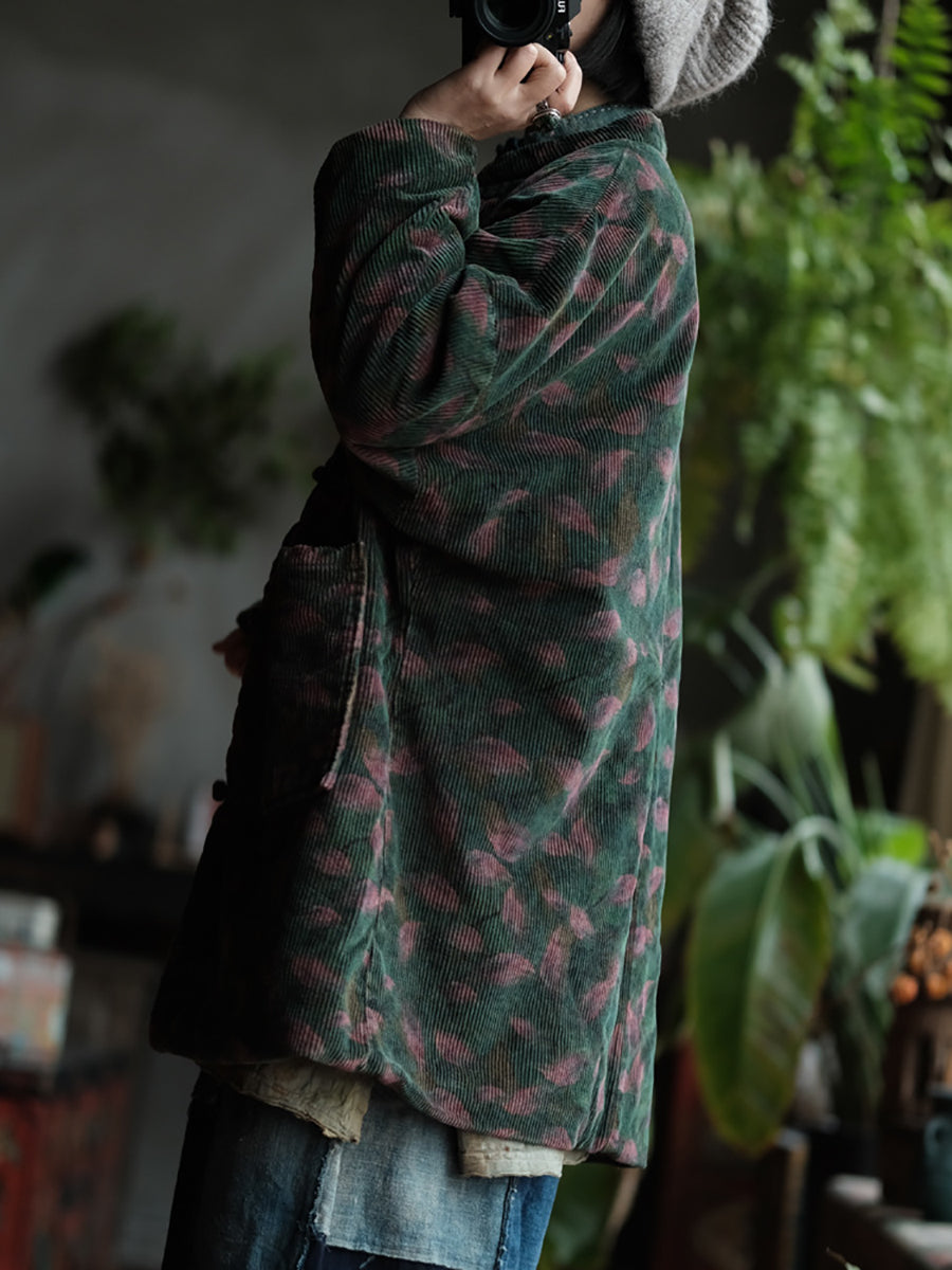 Cappotto imbottito largo in velluto a coste etnico da donna
