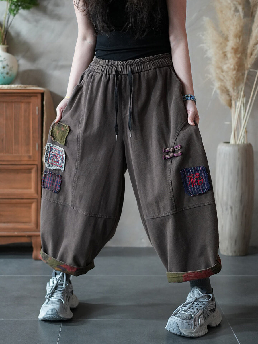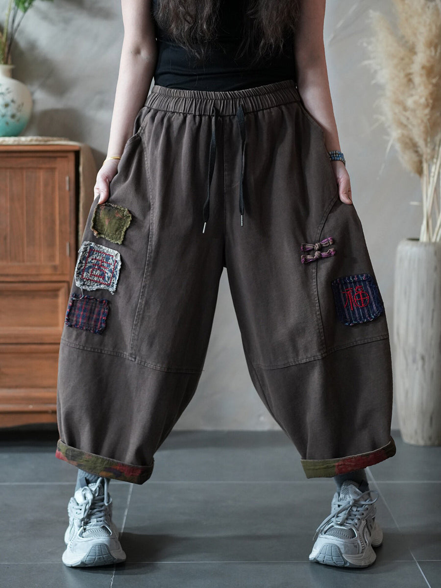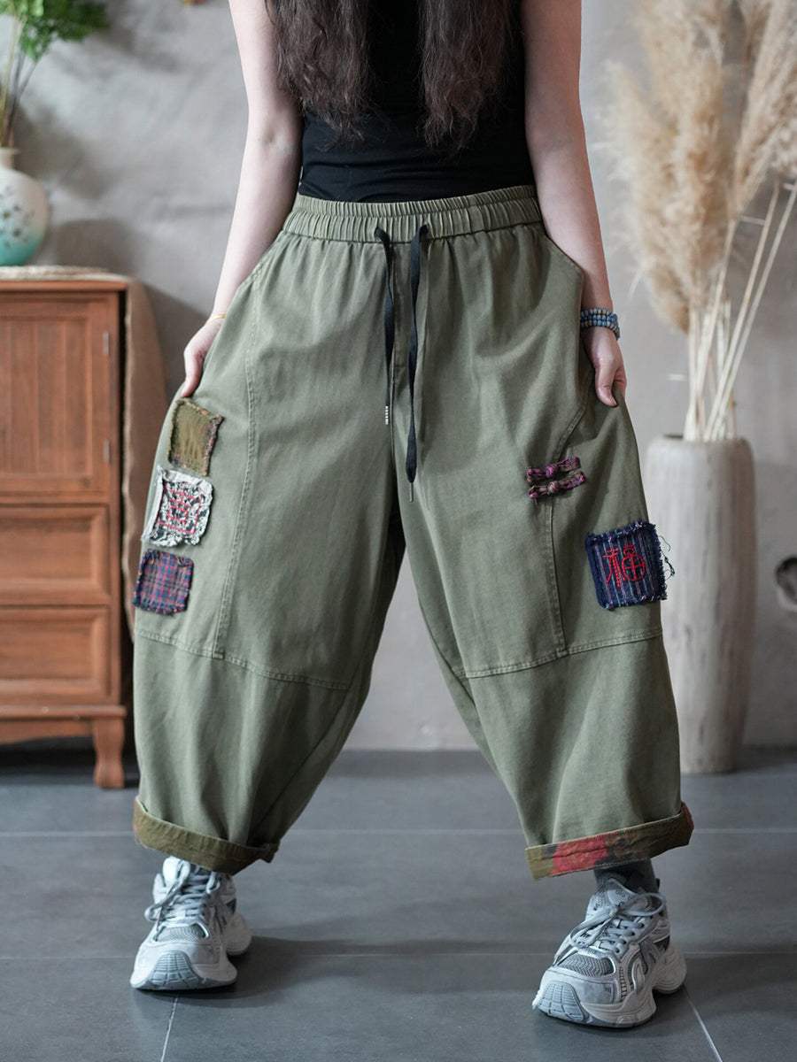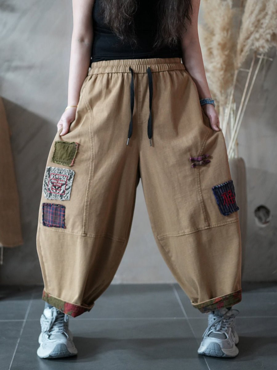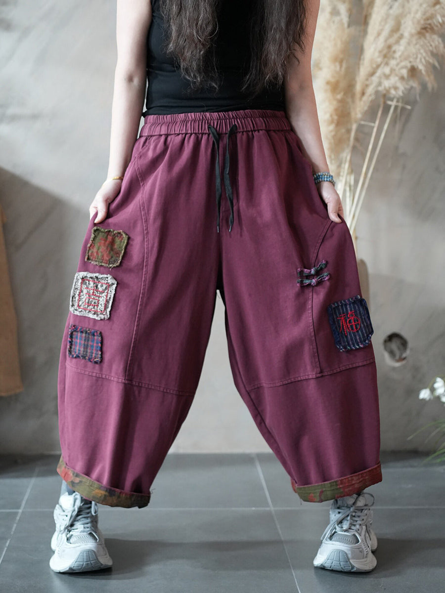 Pantaloni harem patchwork retrò primaverili da donna