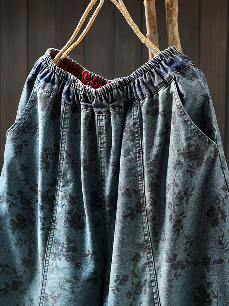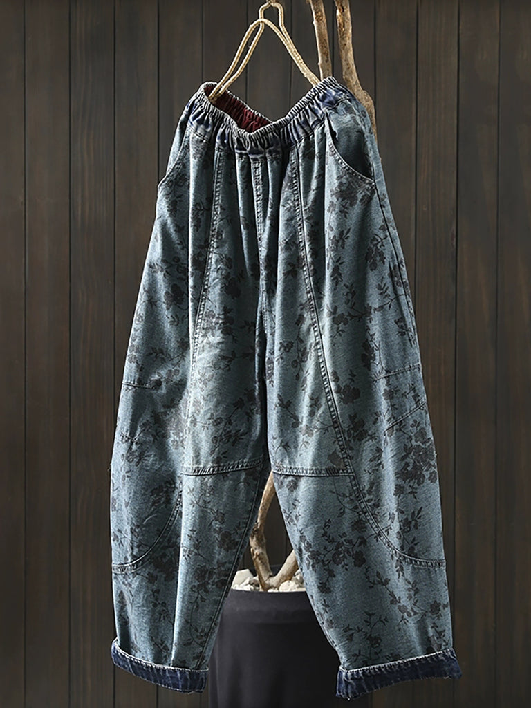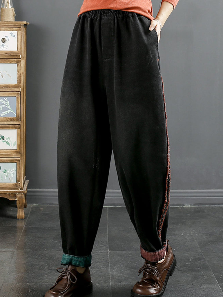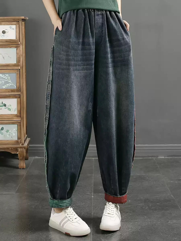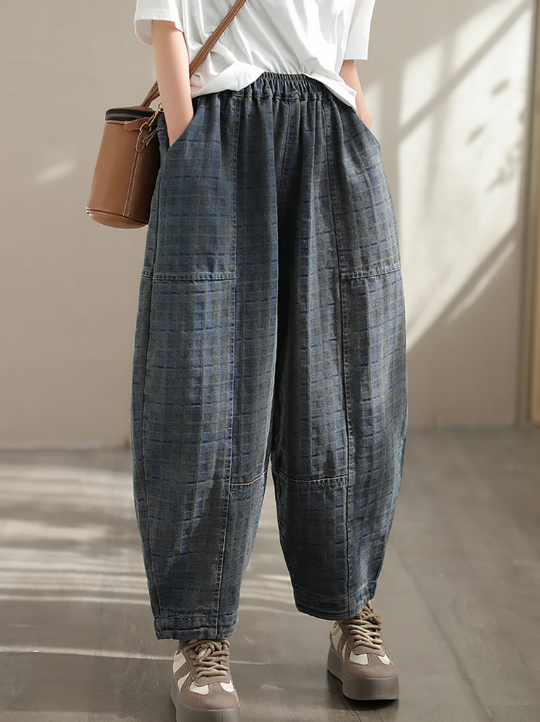 Pantaloni harem in denim a quadri retrò primaverili da donna