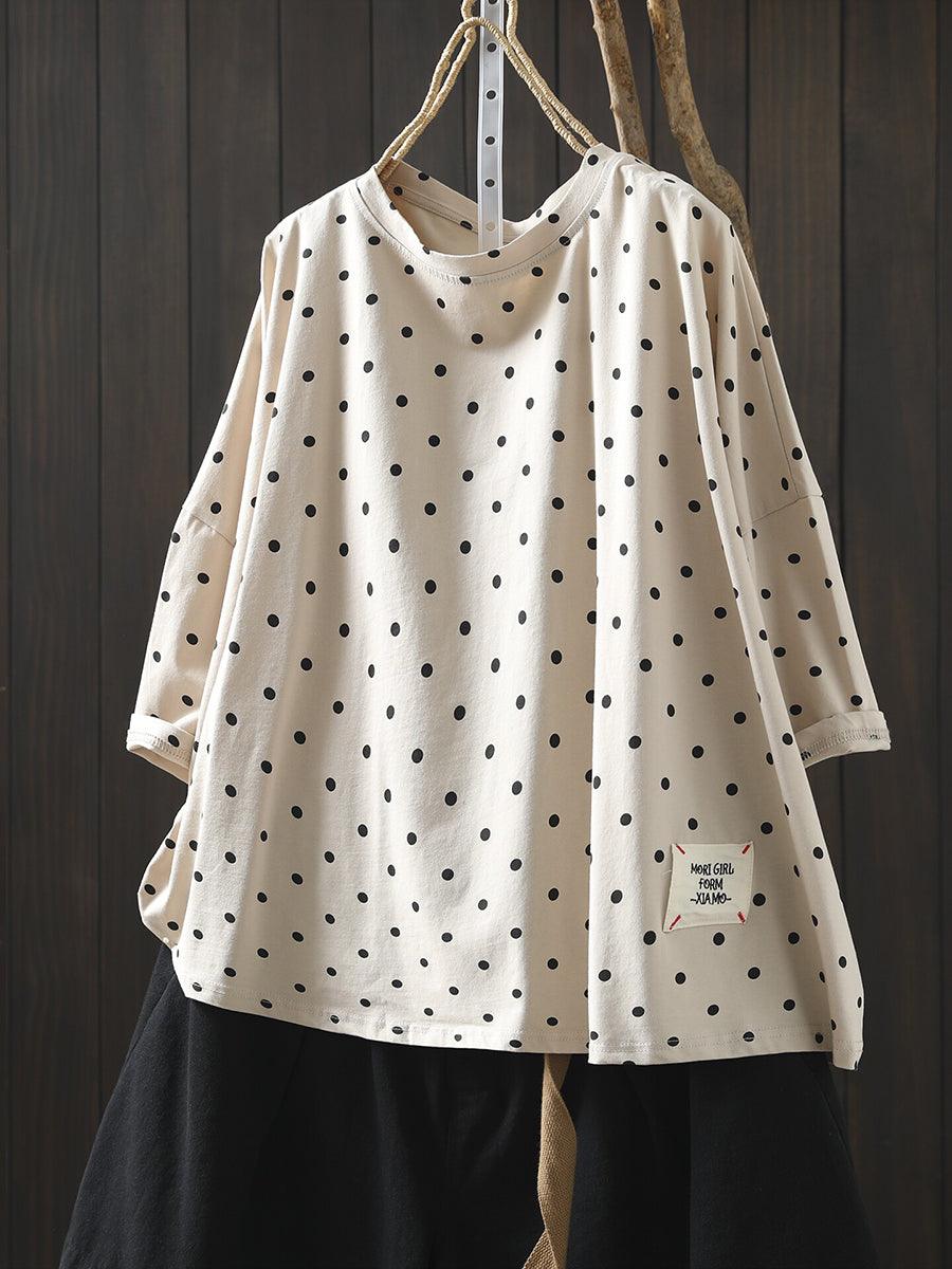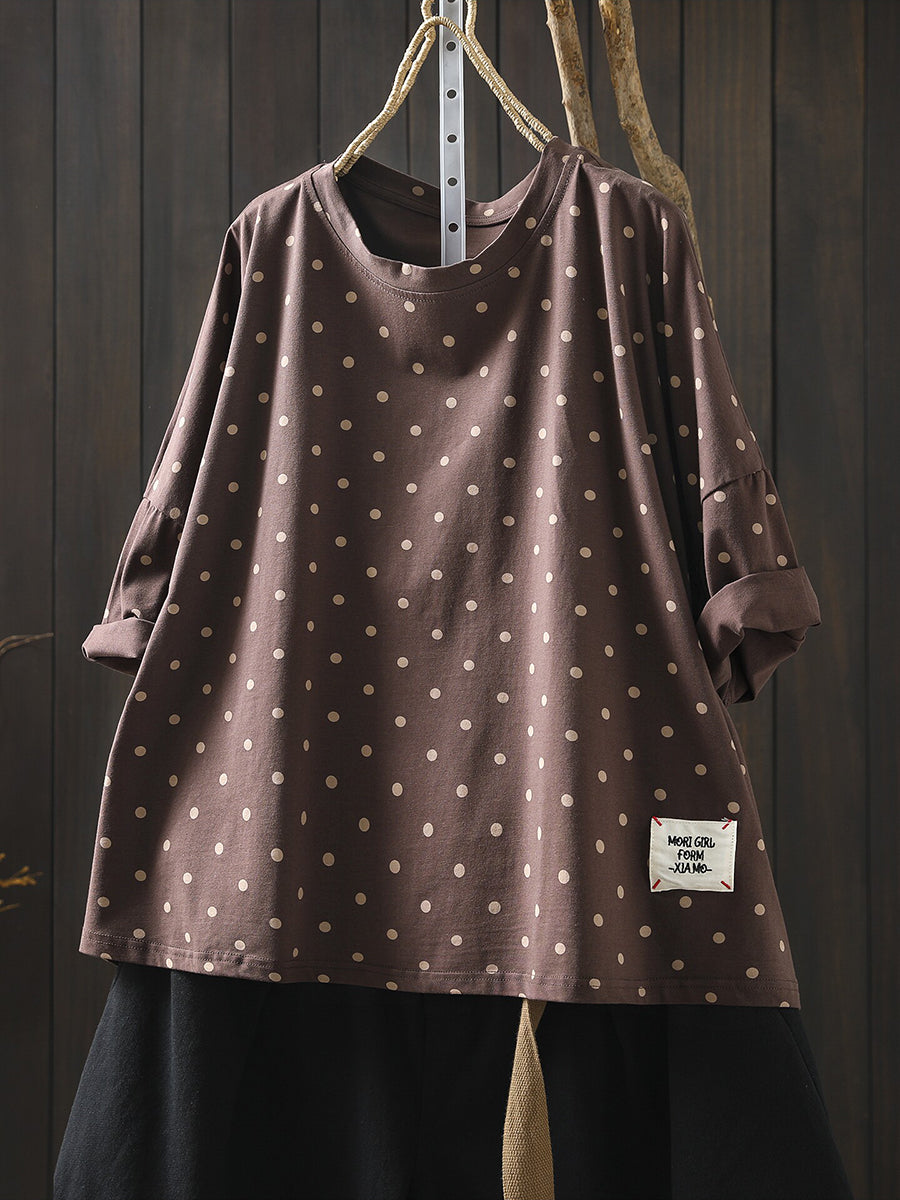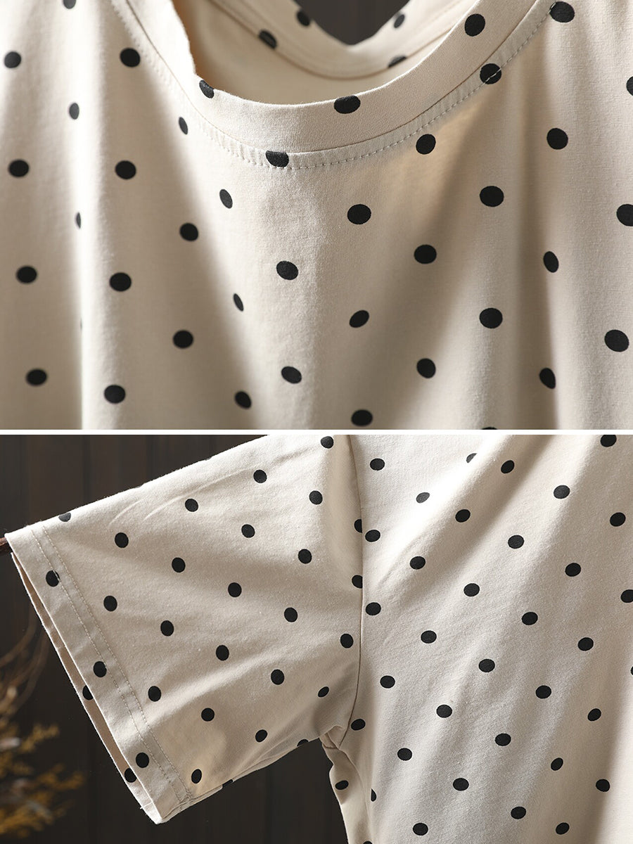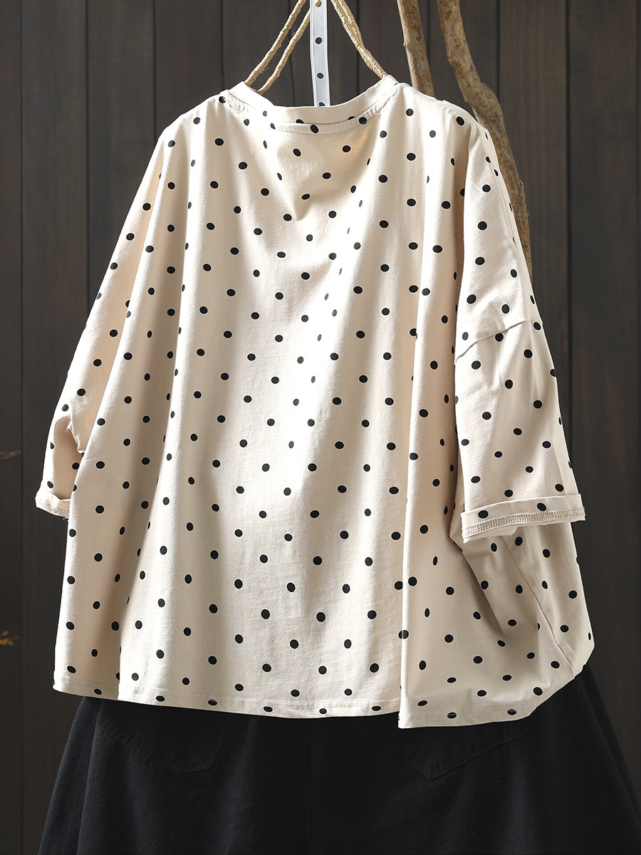 Blusa estiva casual da donna con scollo a V, 100% cotone, a pois