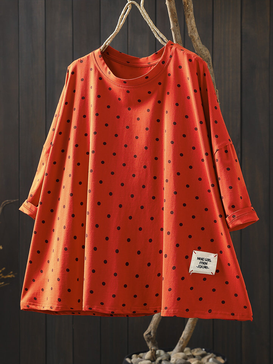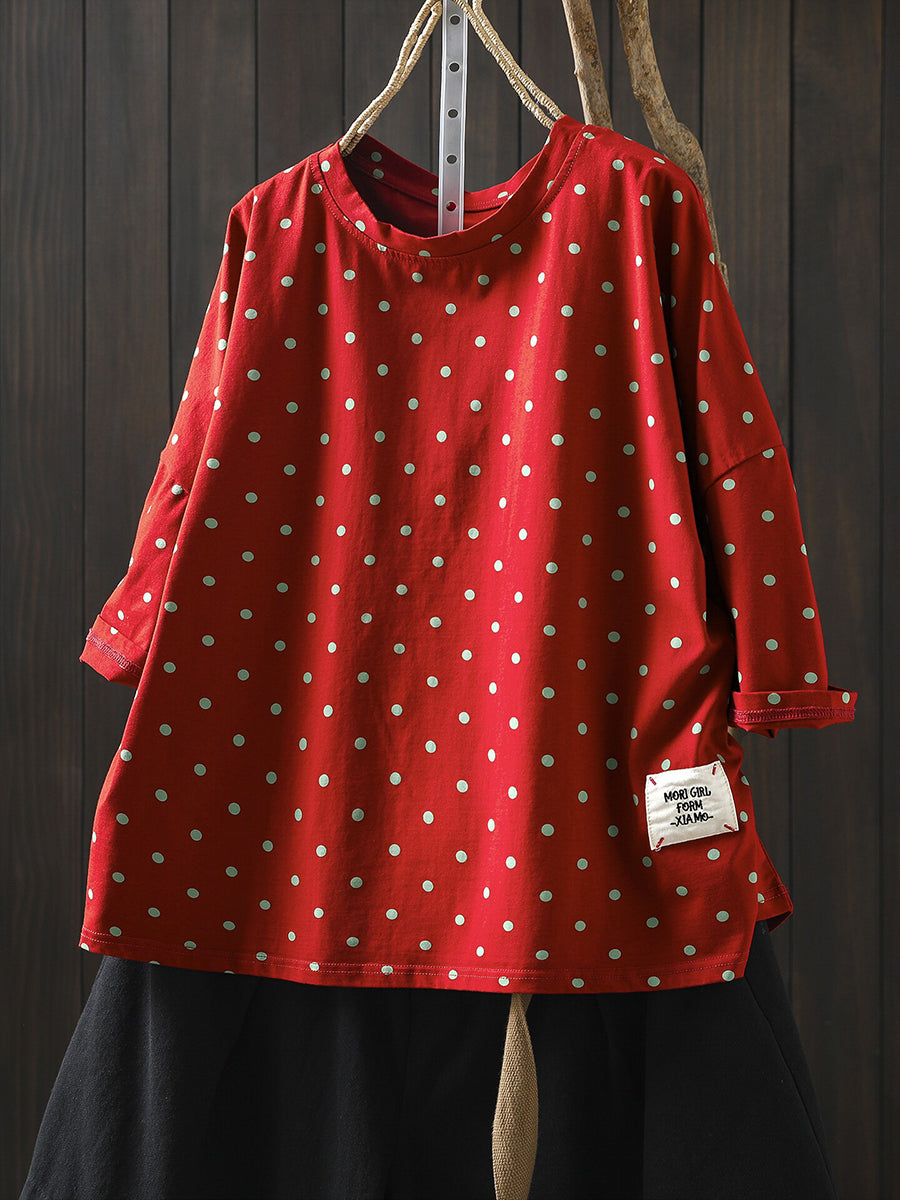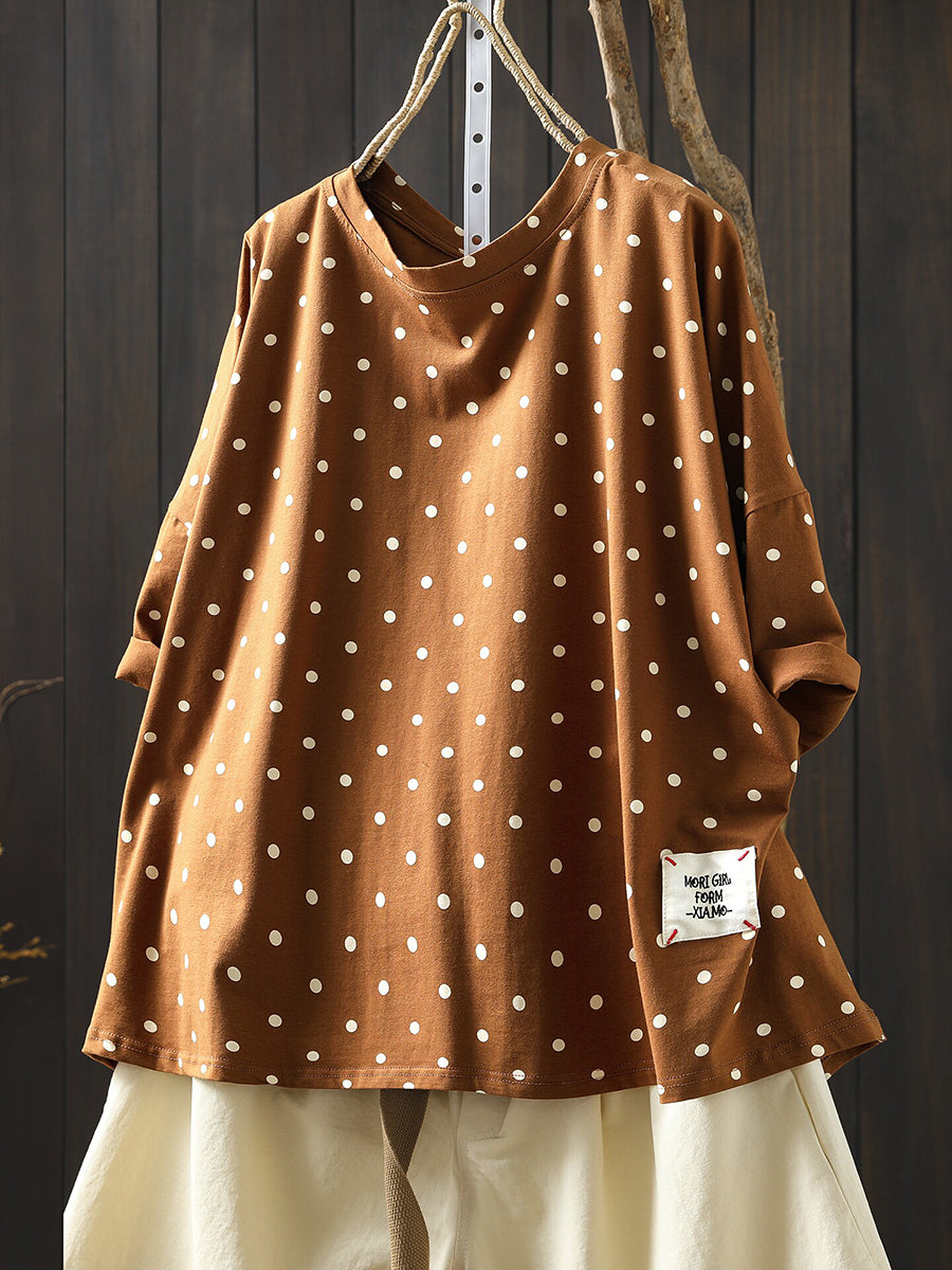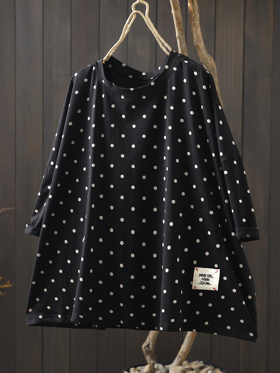Blusa estiva casual da donna con scollo a V, 100% cotone, a pois