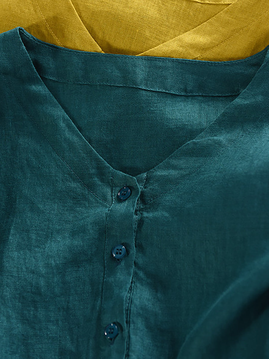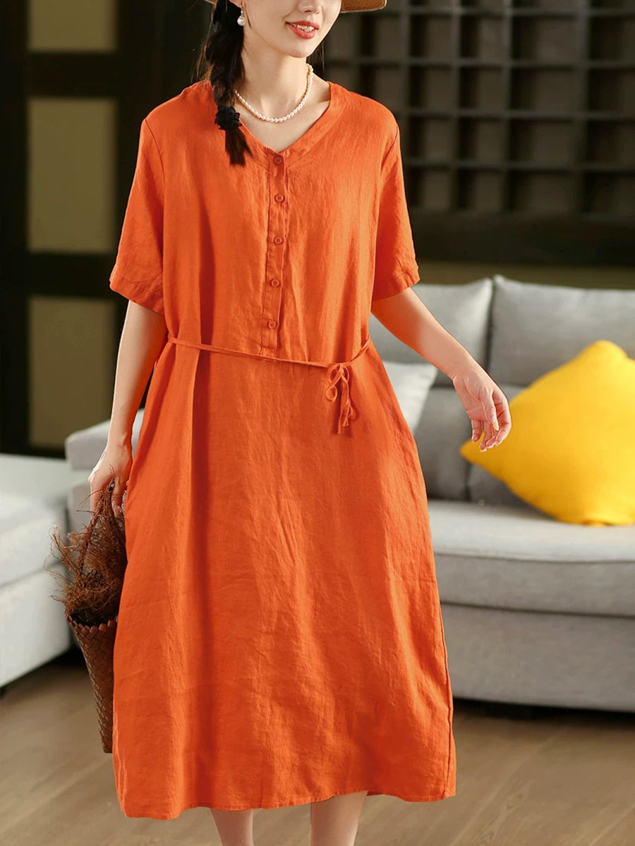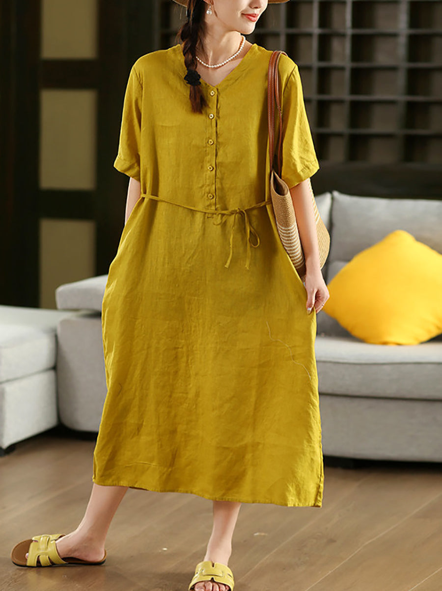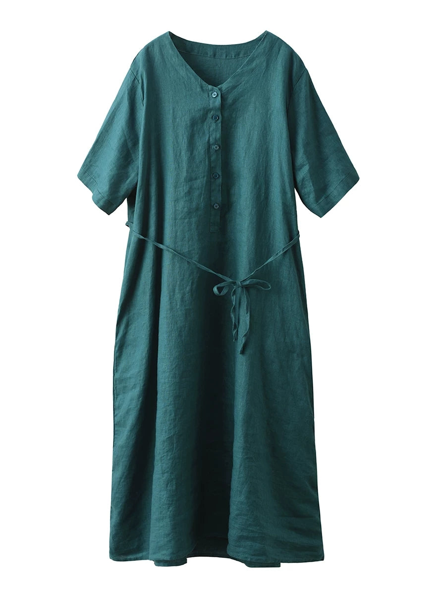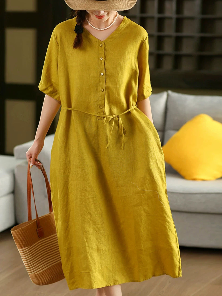 Abito estivo da donna in lino 100% con scollo a V e colori puri