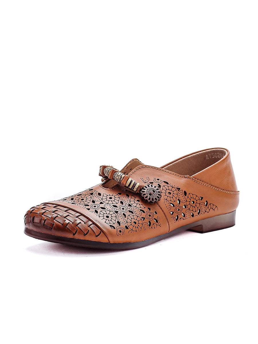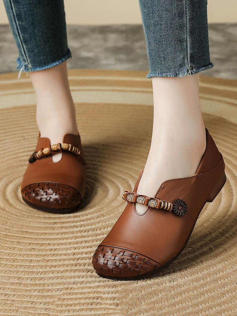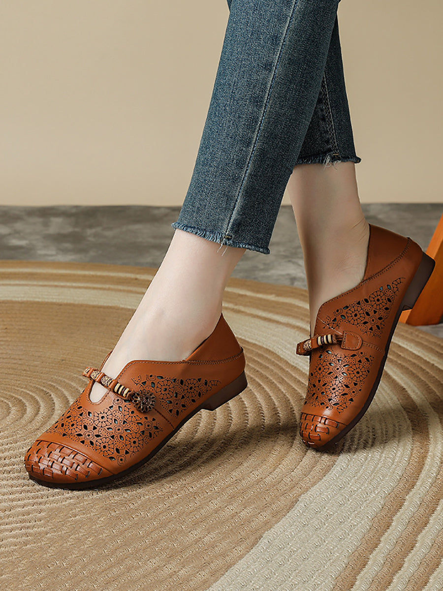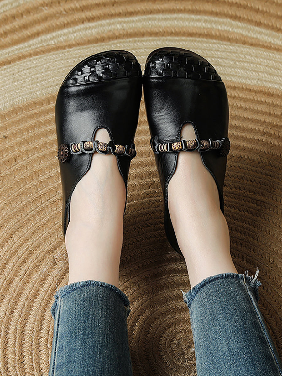 Scarpe da donna estive in stile retrò in vera pelle intrecciata.