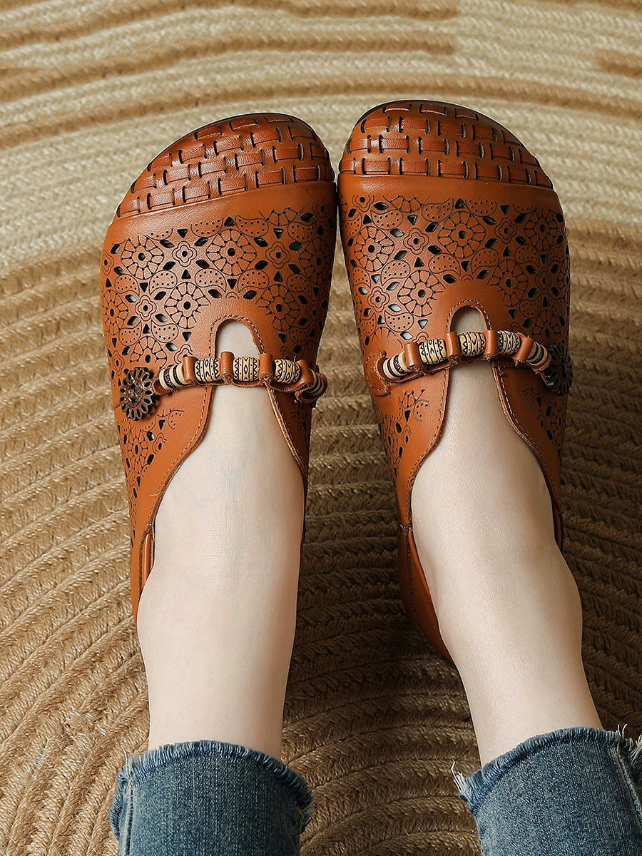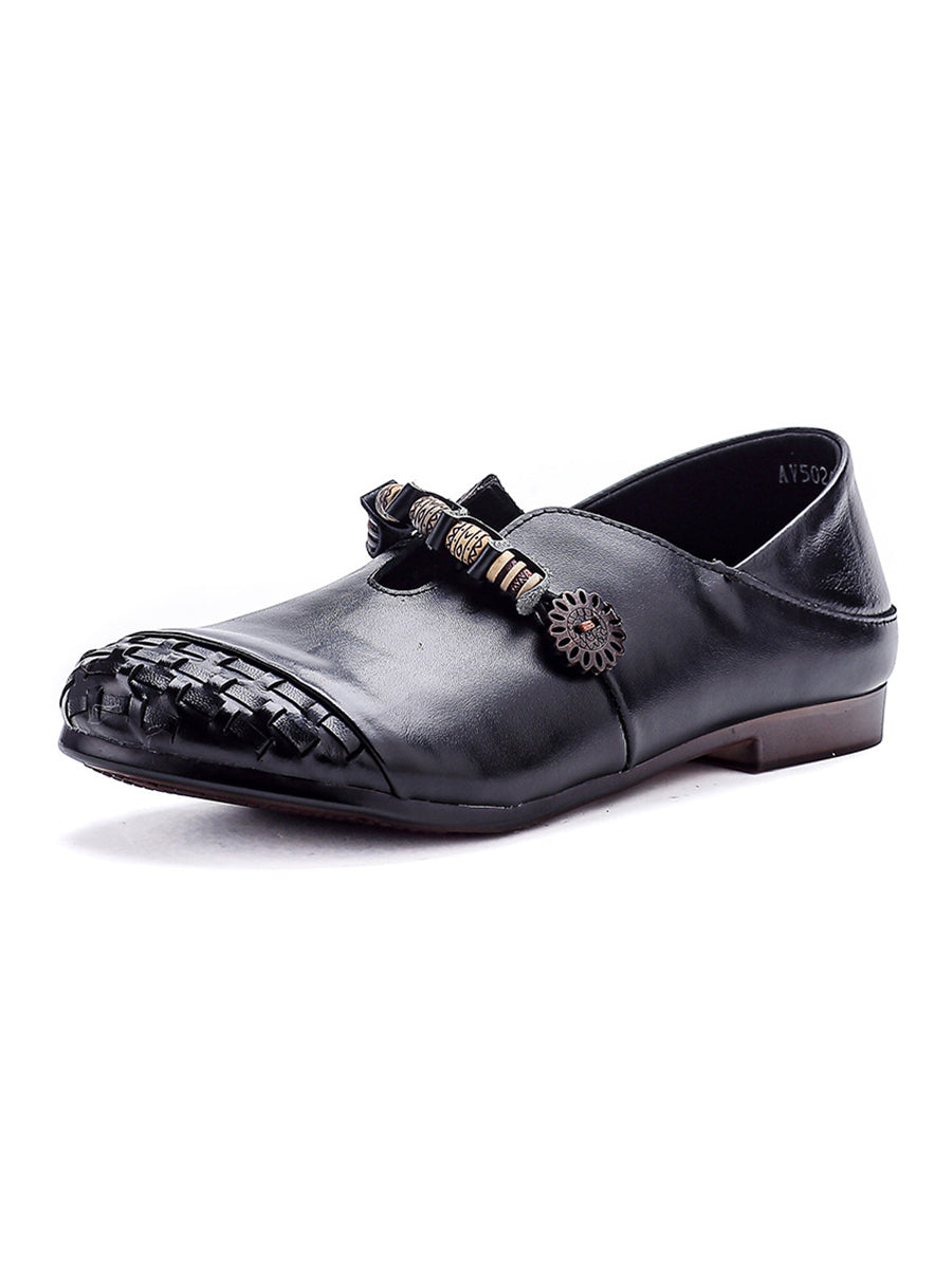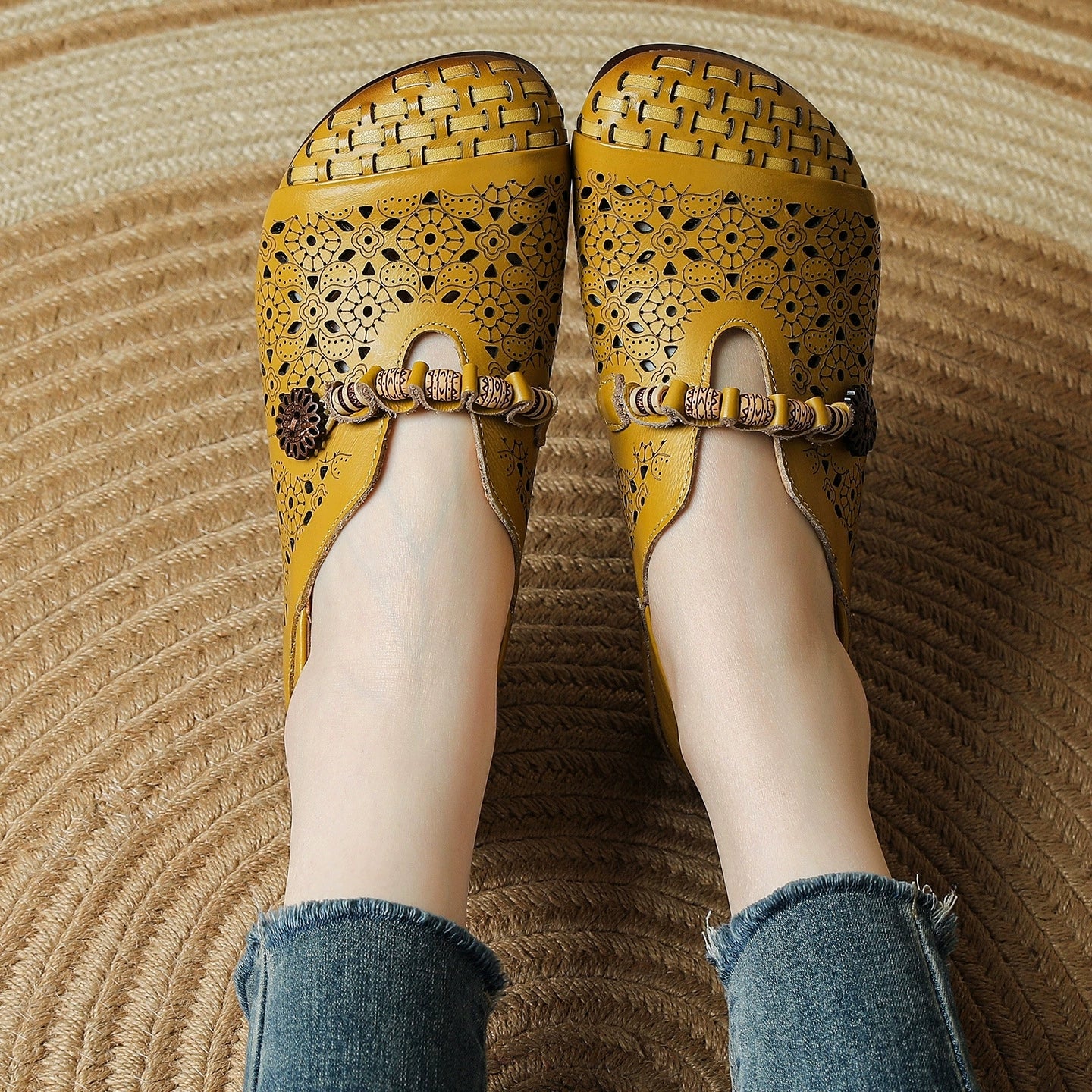 Scarpe da donna estive in stile retrò in vera pelle intrecciata.