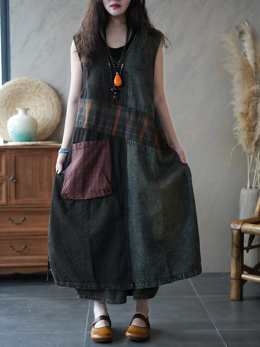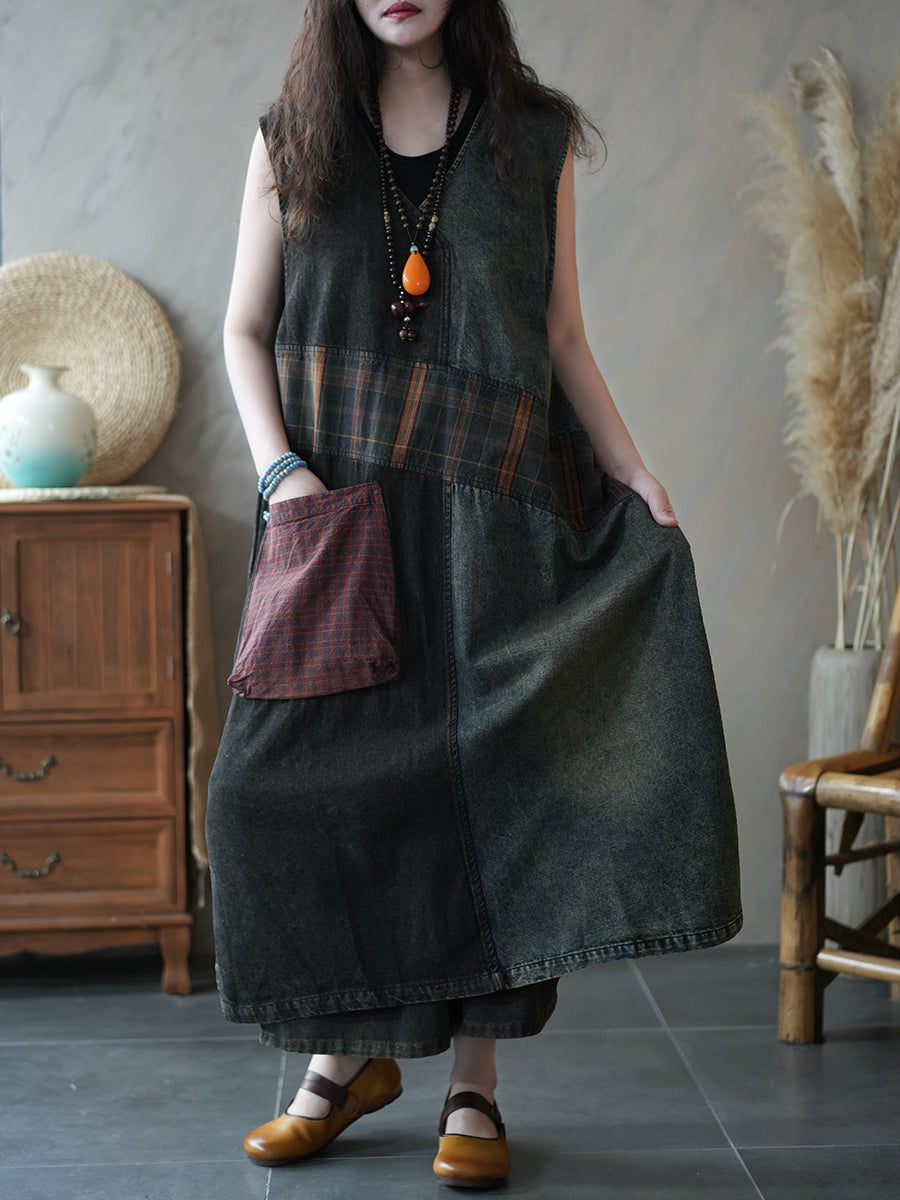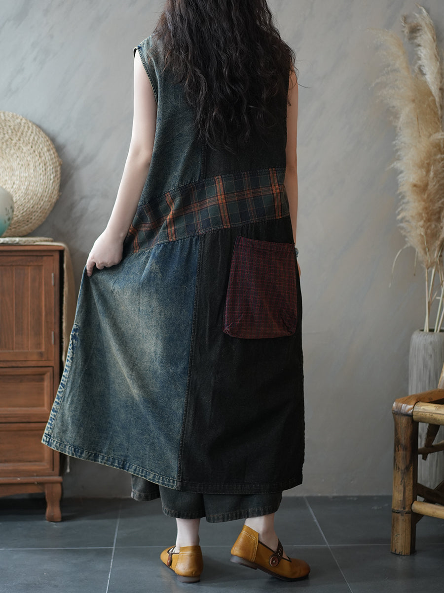 Gilet da donna estivo in denim stile vintage con lavorazione a trama,