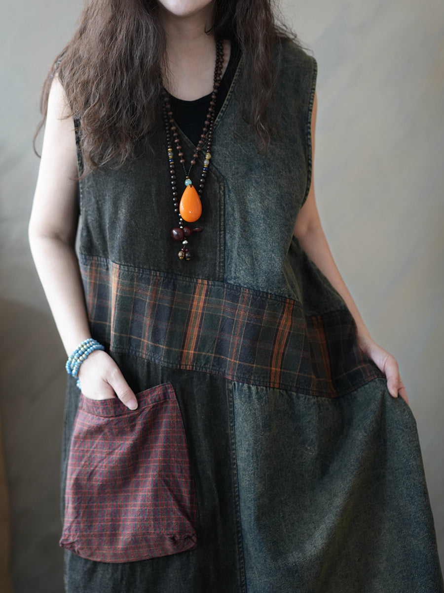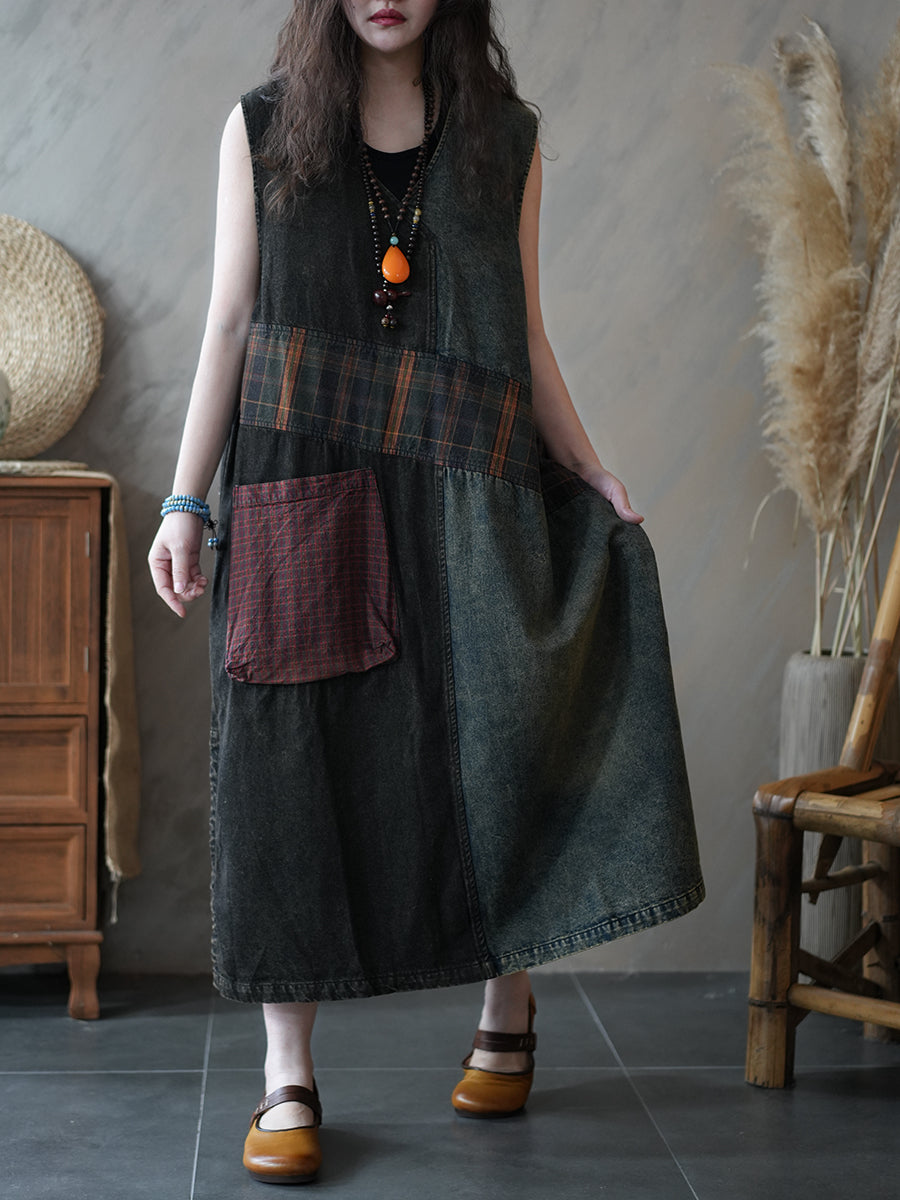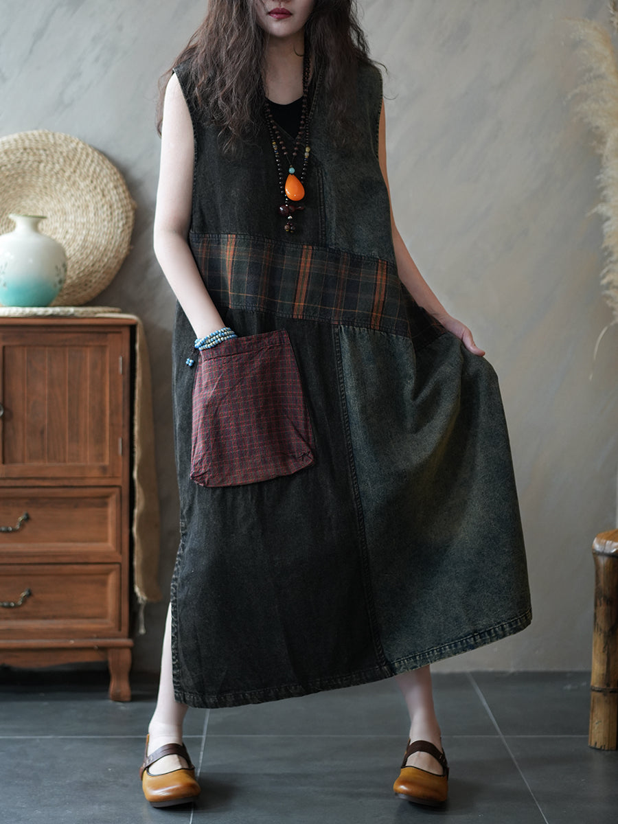 Gilet da donna estivo in denim stile vintage con lavorazione a trama,