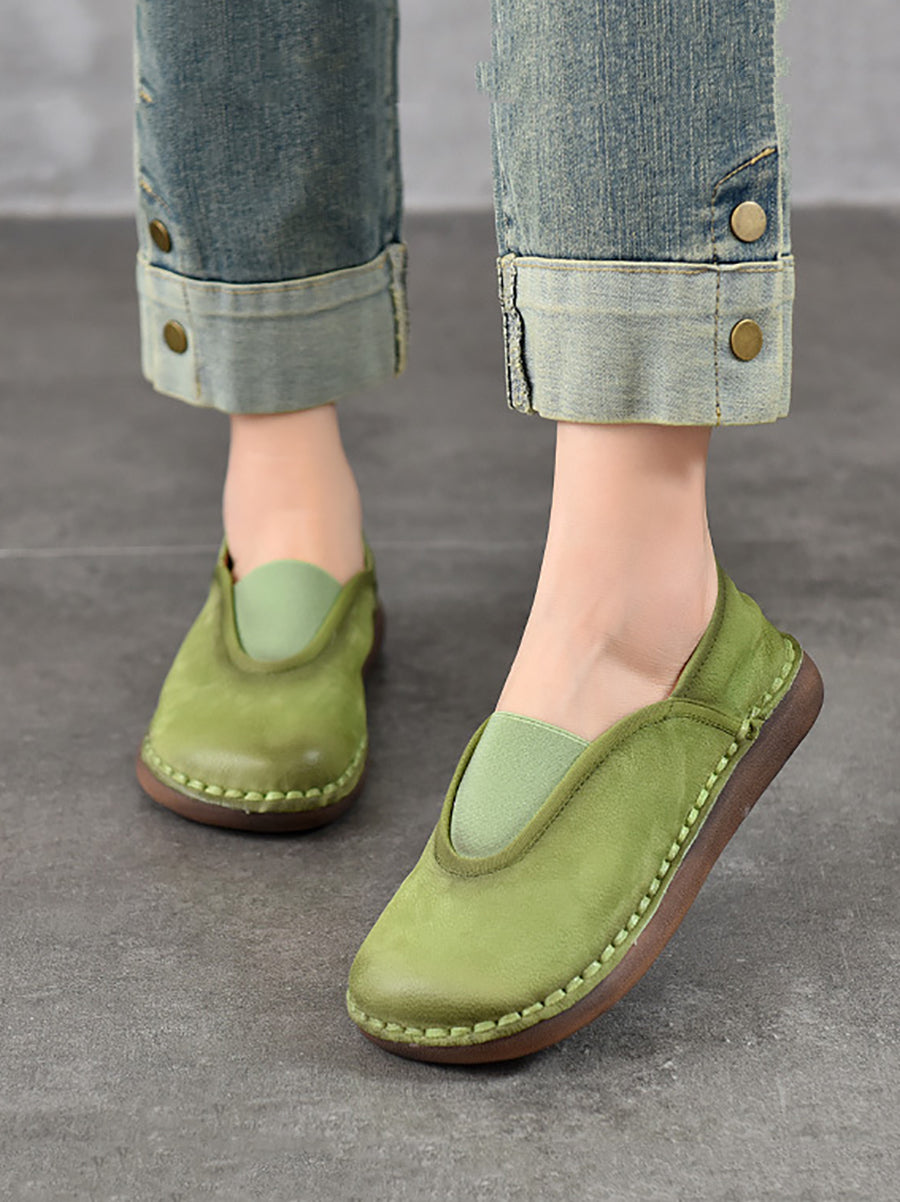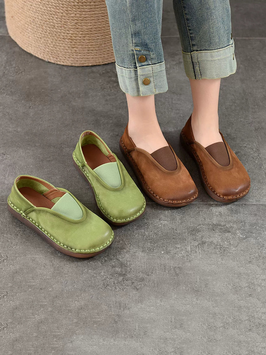 Scarpe basse vintage da donna in vera pelle con giunzioni