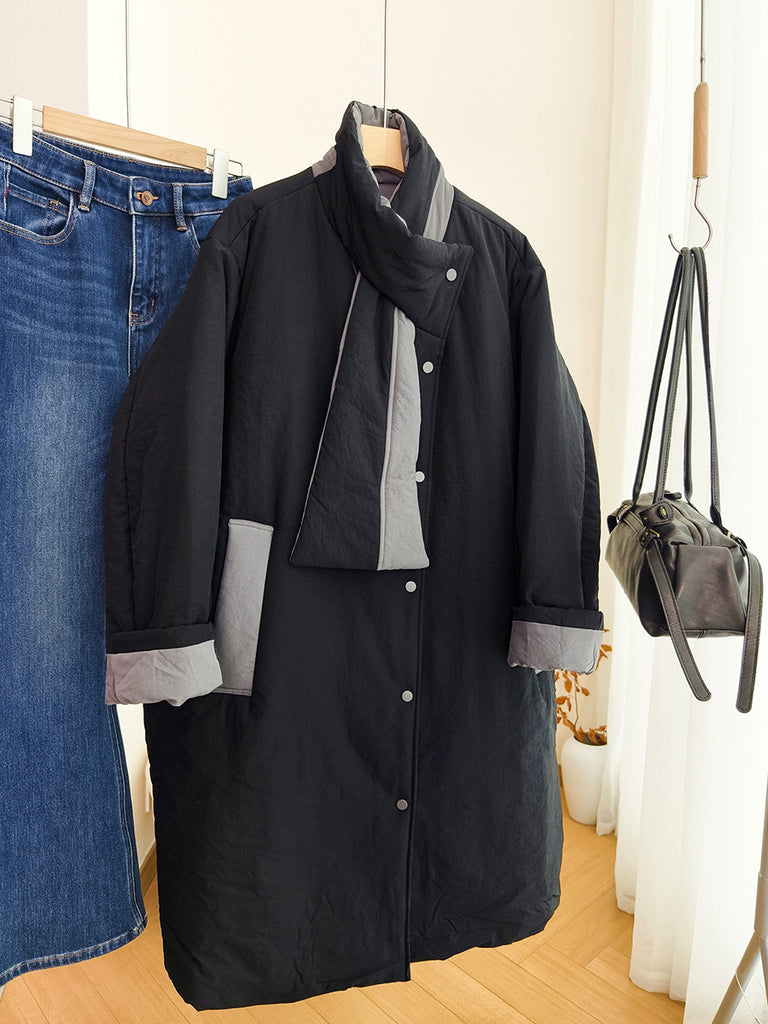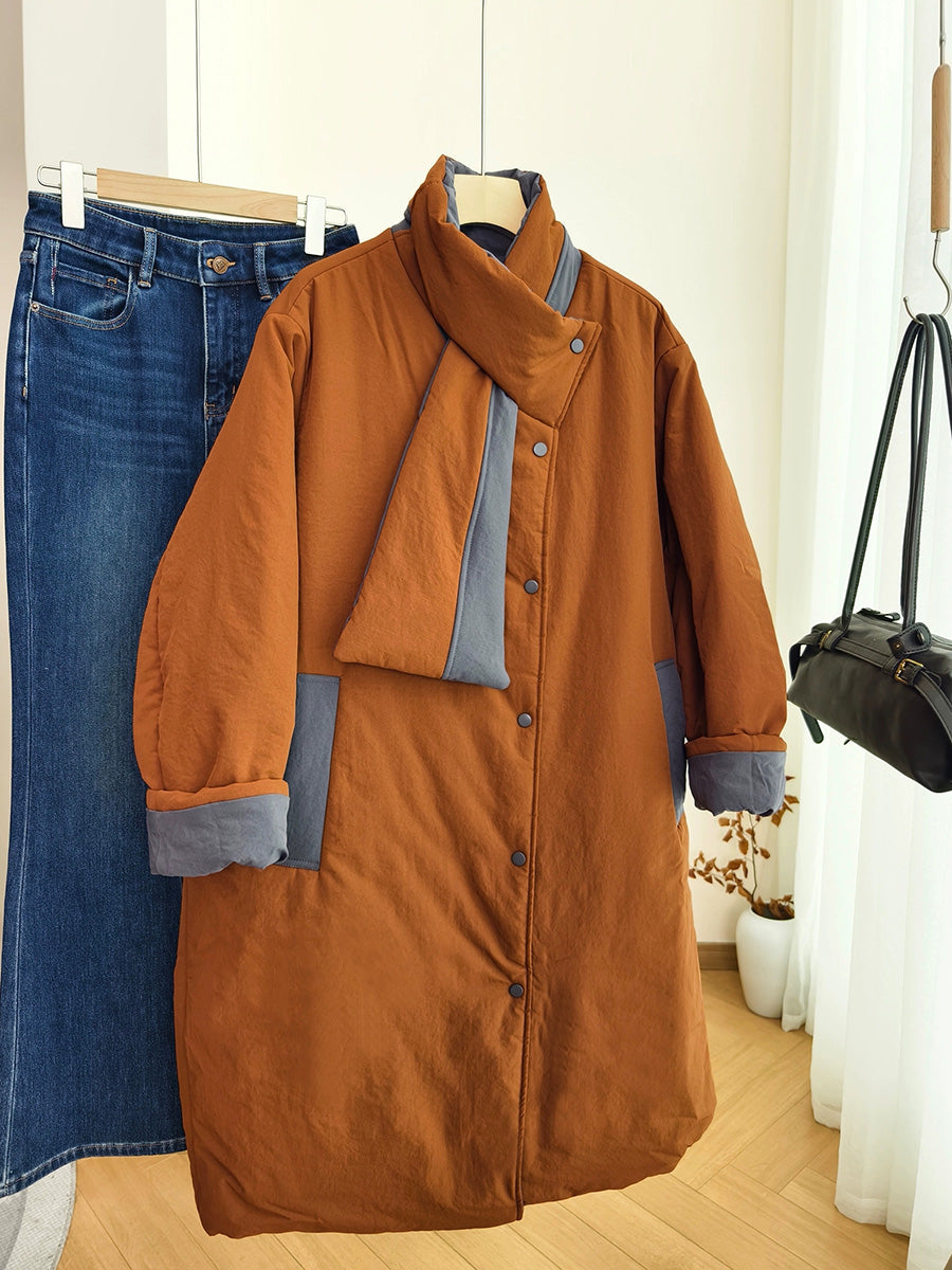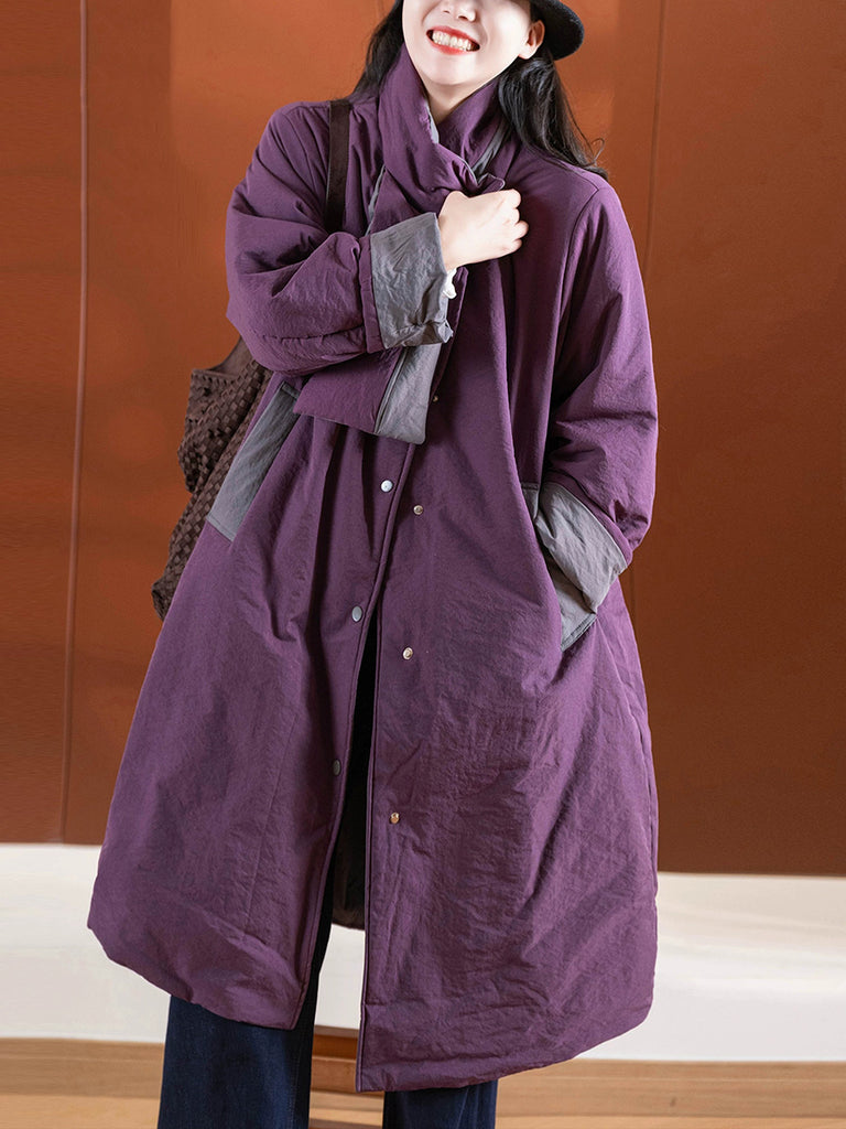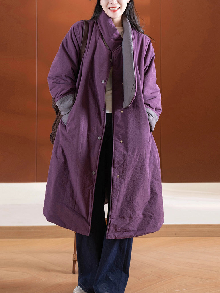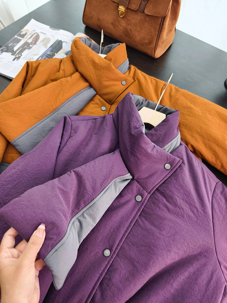 Cappotto imbottito invernale da donna con colletto rovesciato, colore puro