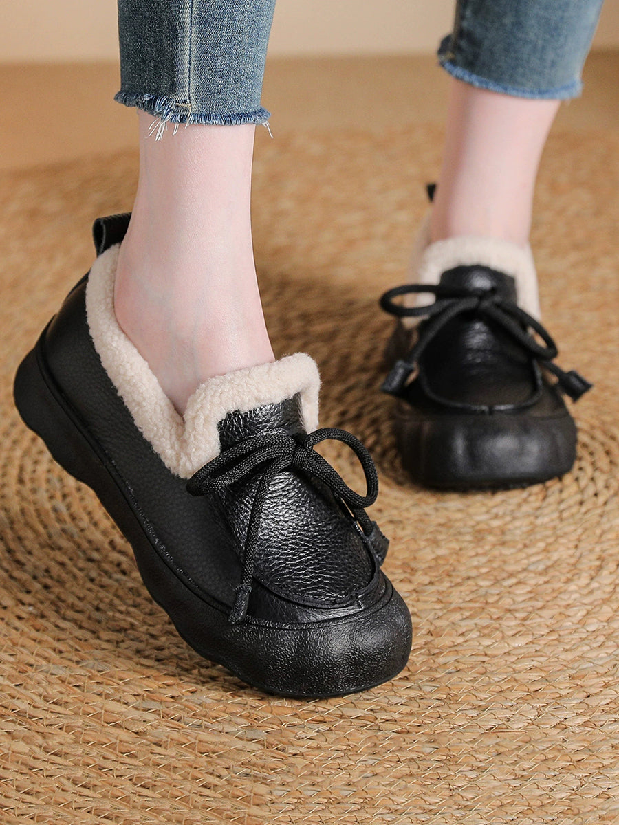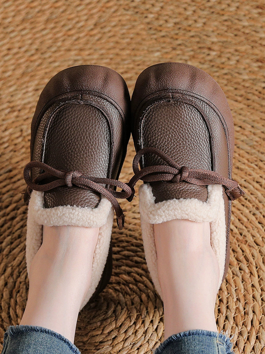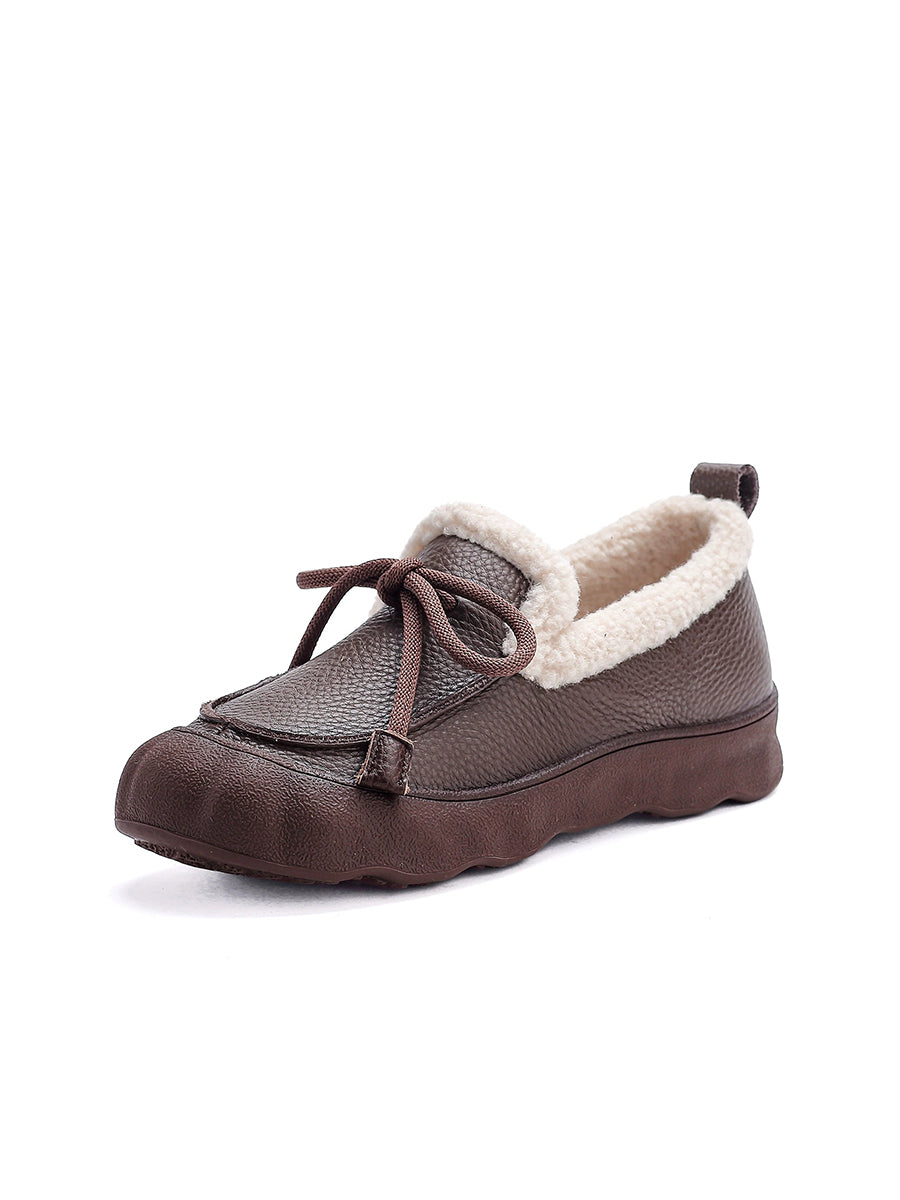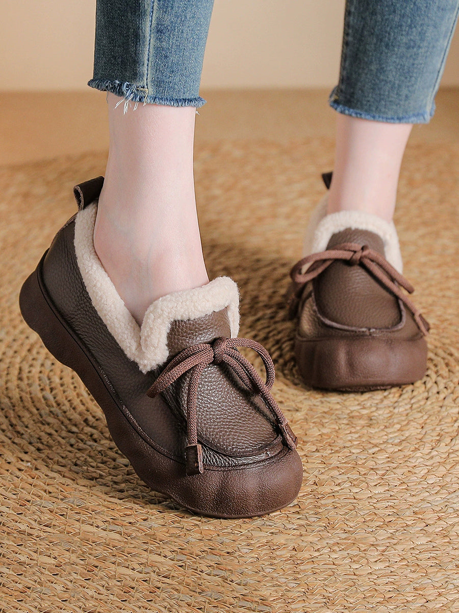 Scarpe invernali da donna in pelle vintage foderate in pile