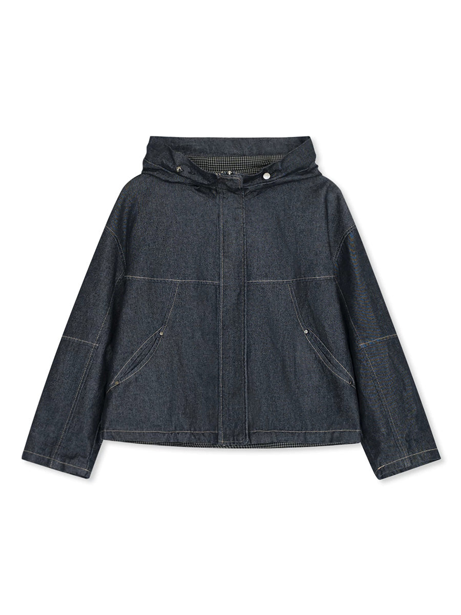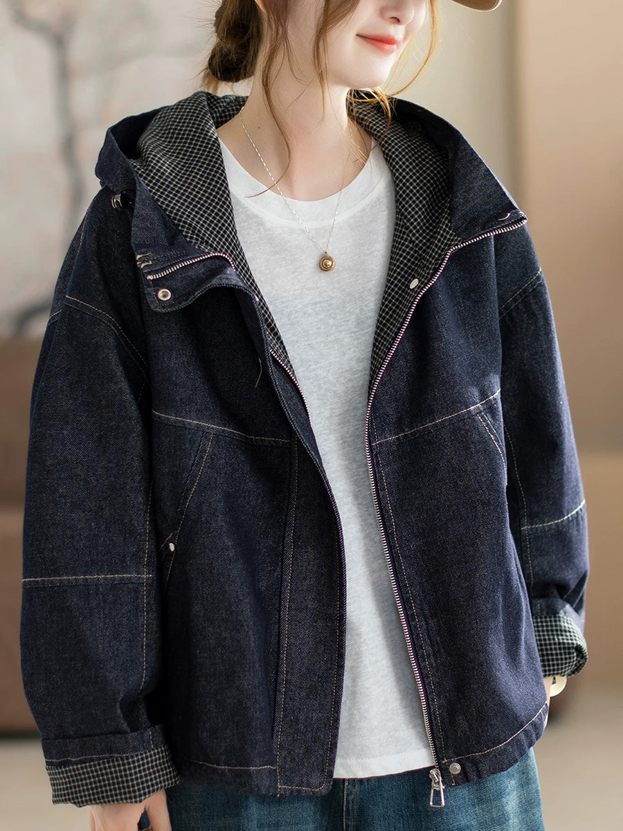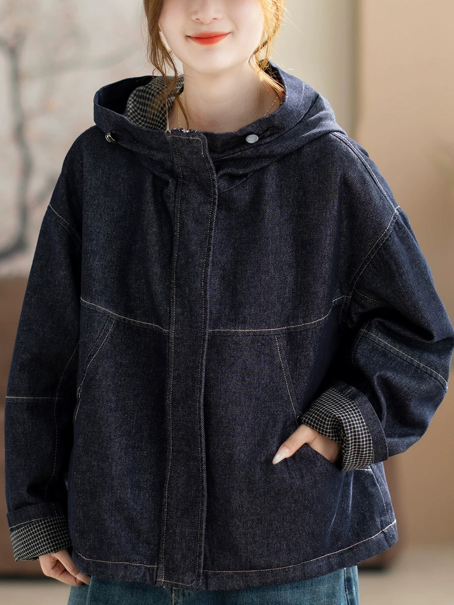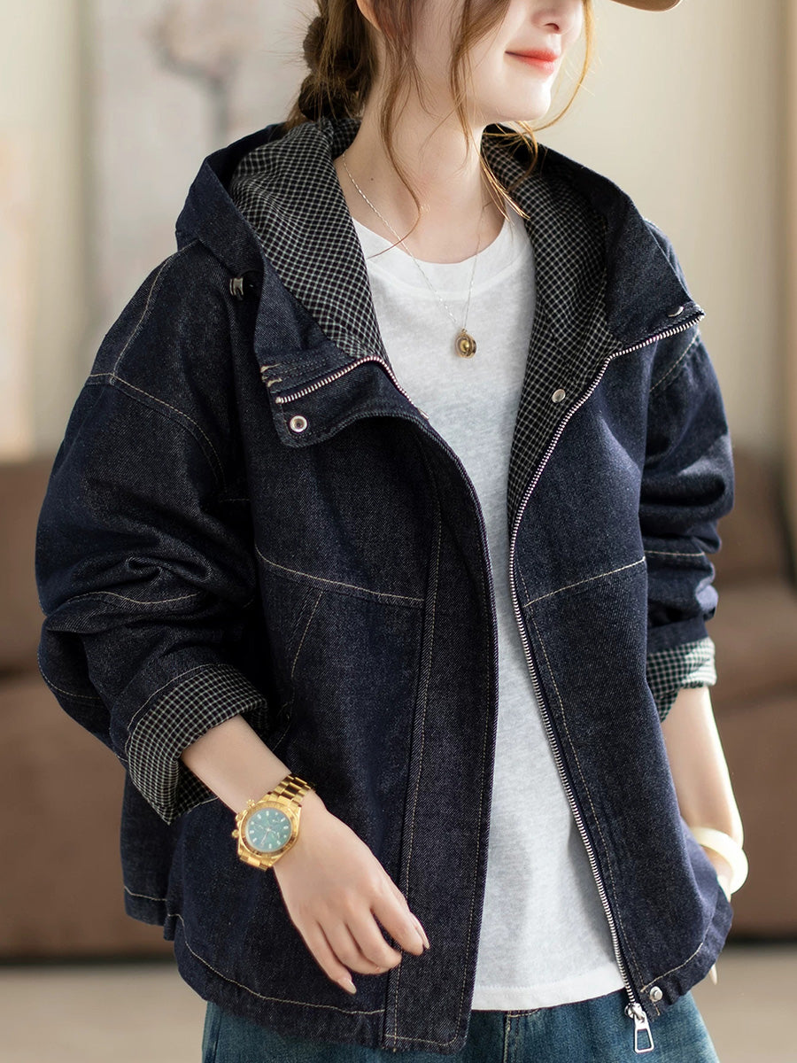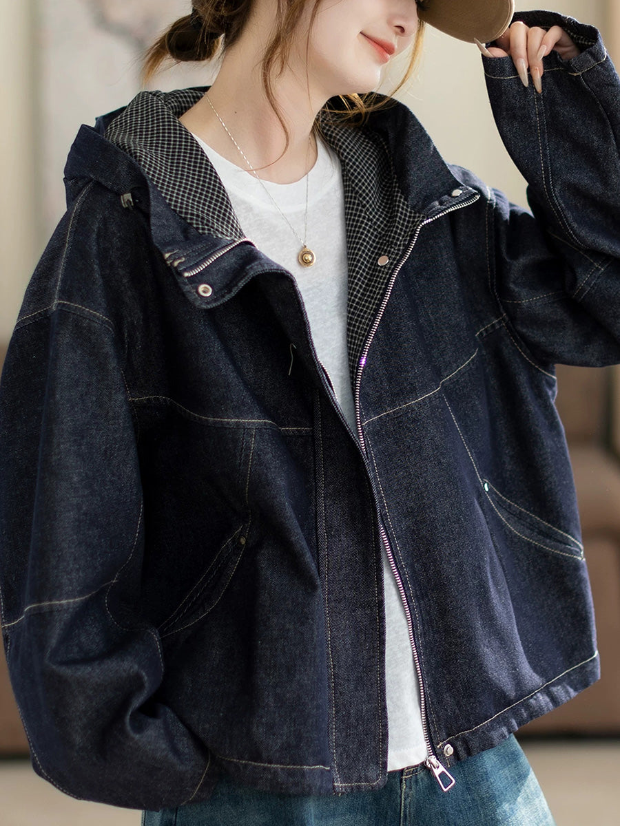 Dames lente retro effen denim capuchonjas