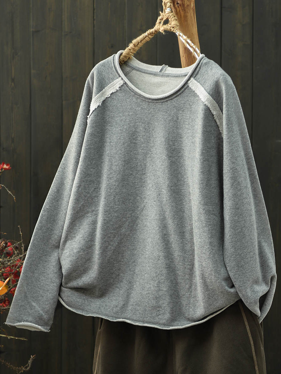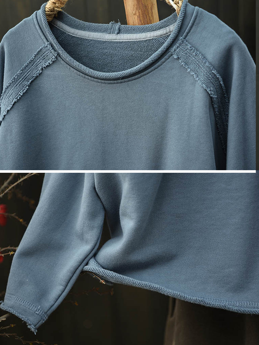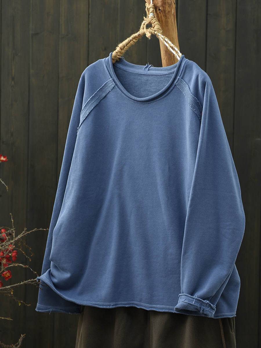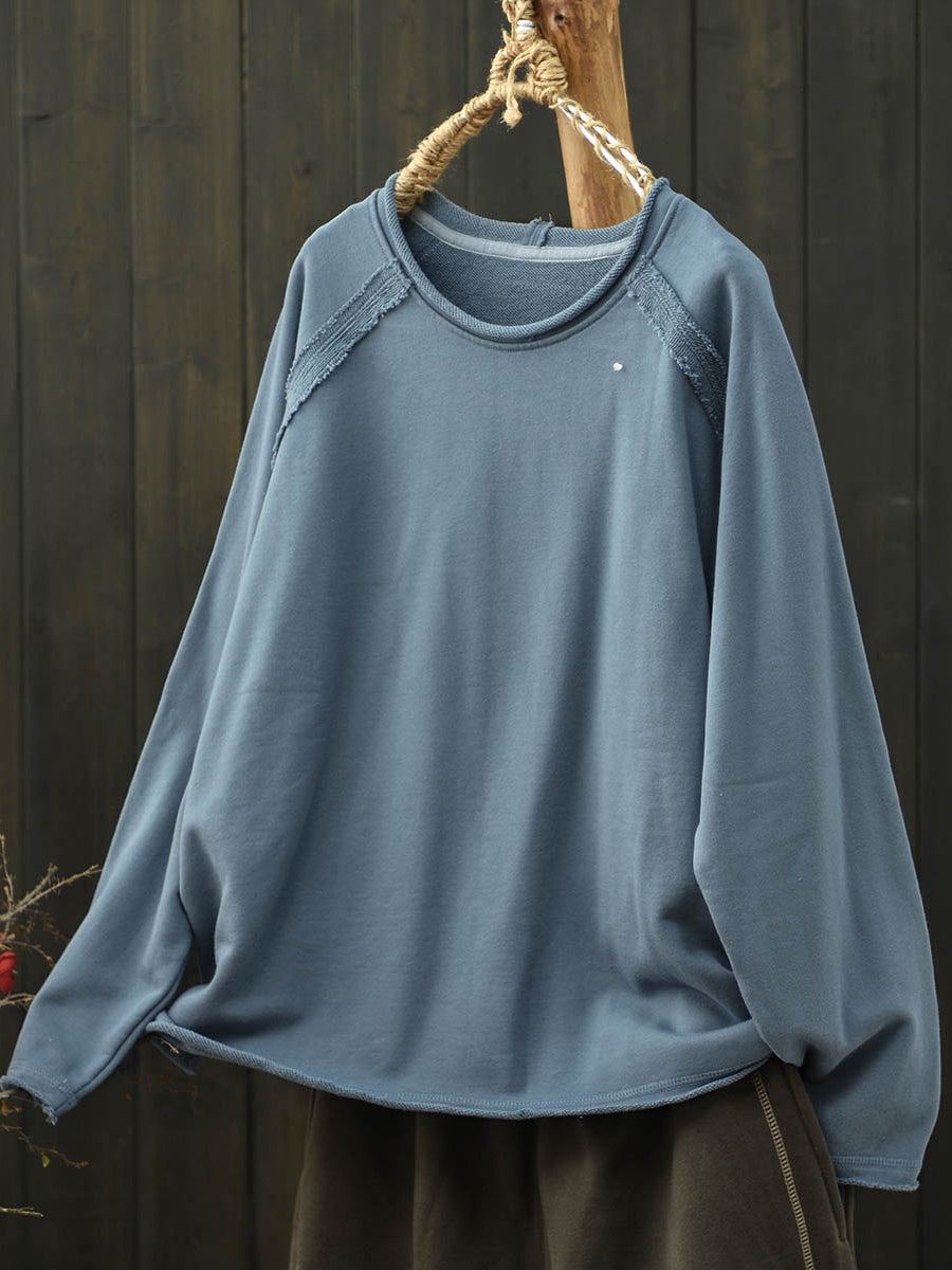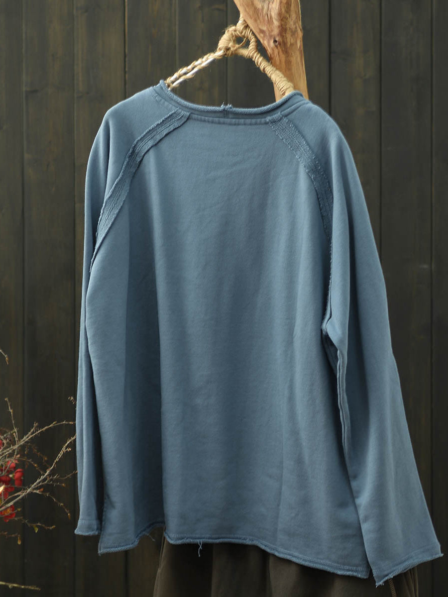 Damesblouse in artistieke herfststijl met effen kleuren en ronde hals, gemaakt van katoen.