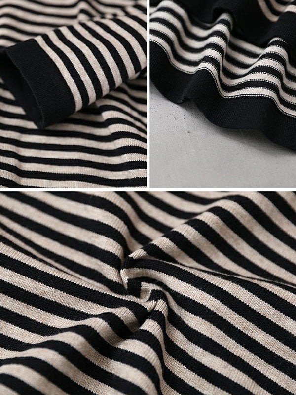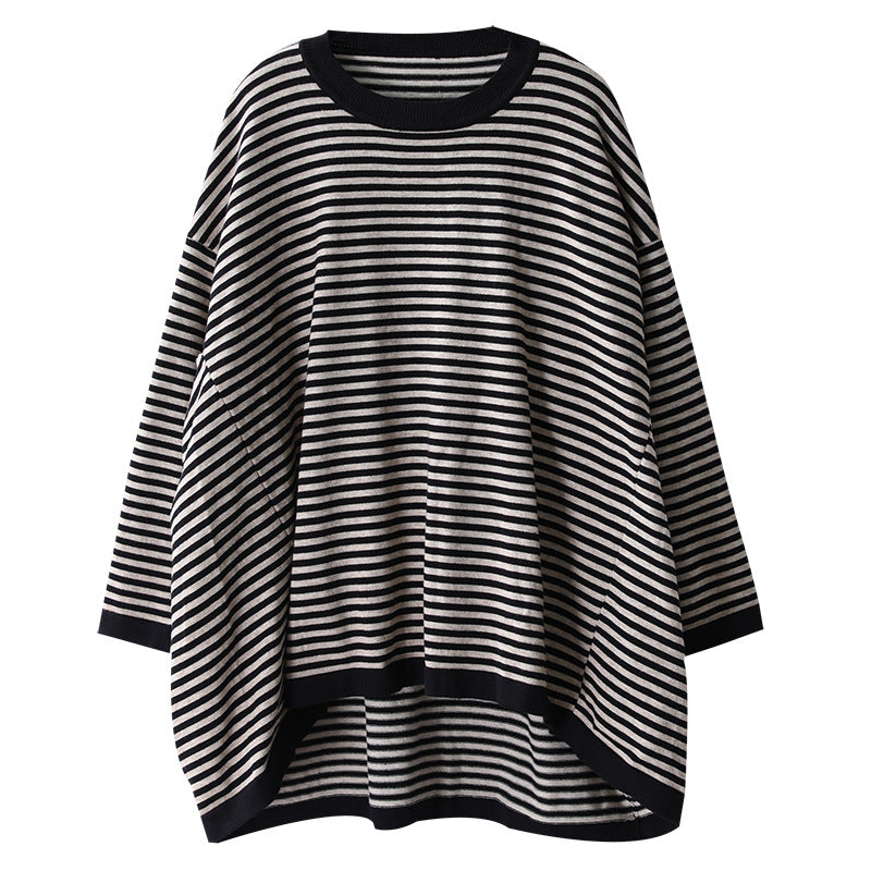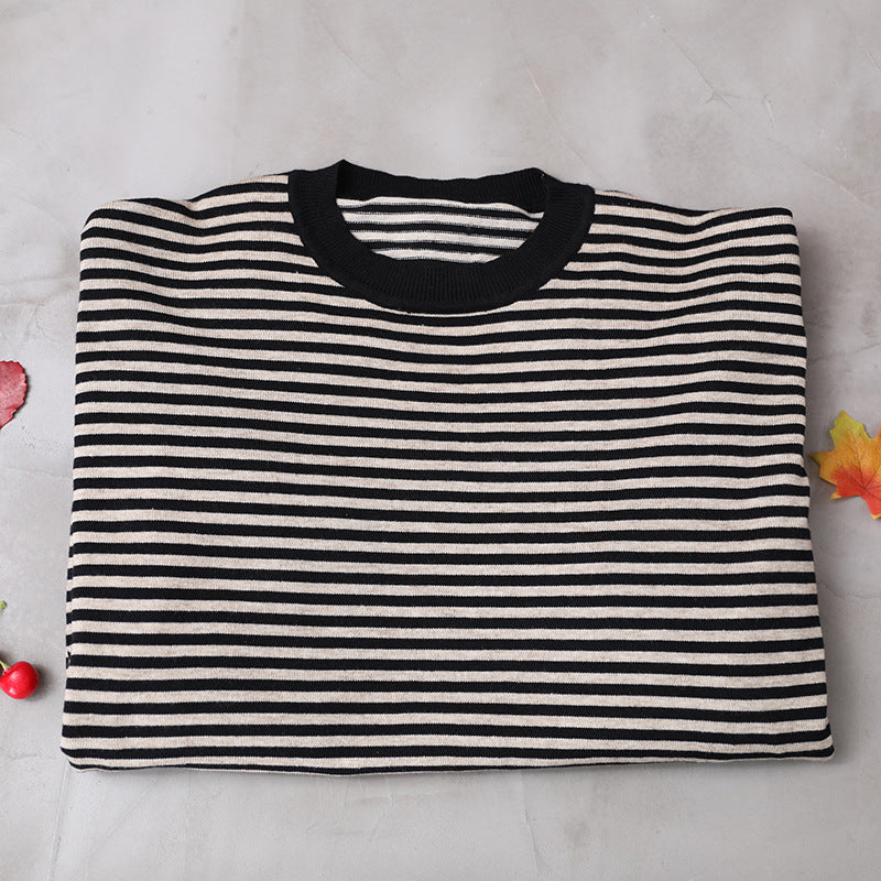 Buykud Ultra-losse klassieke gestreepte ronde hals trui