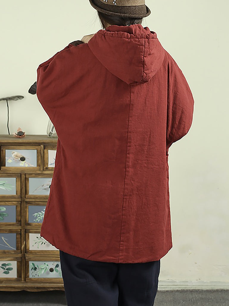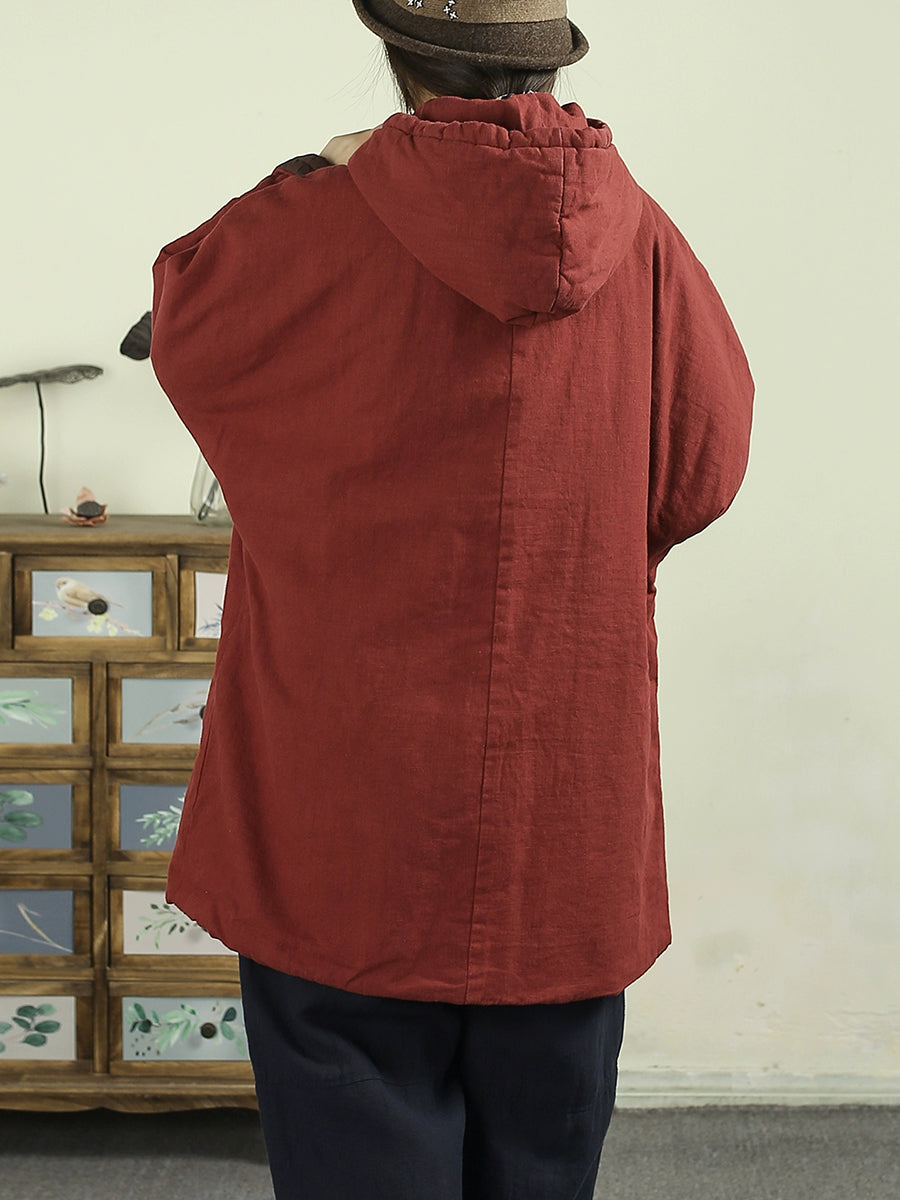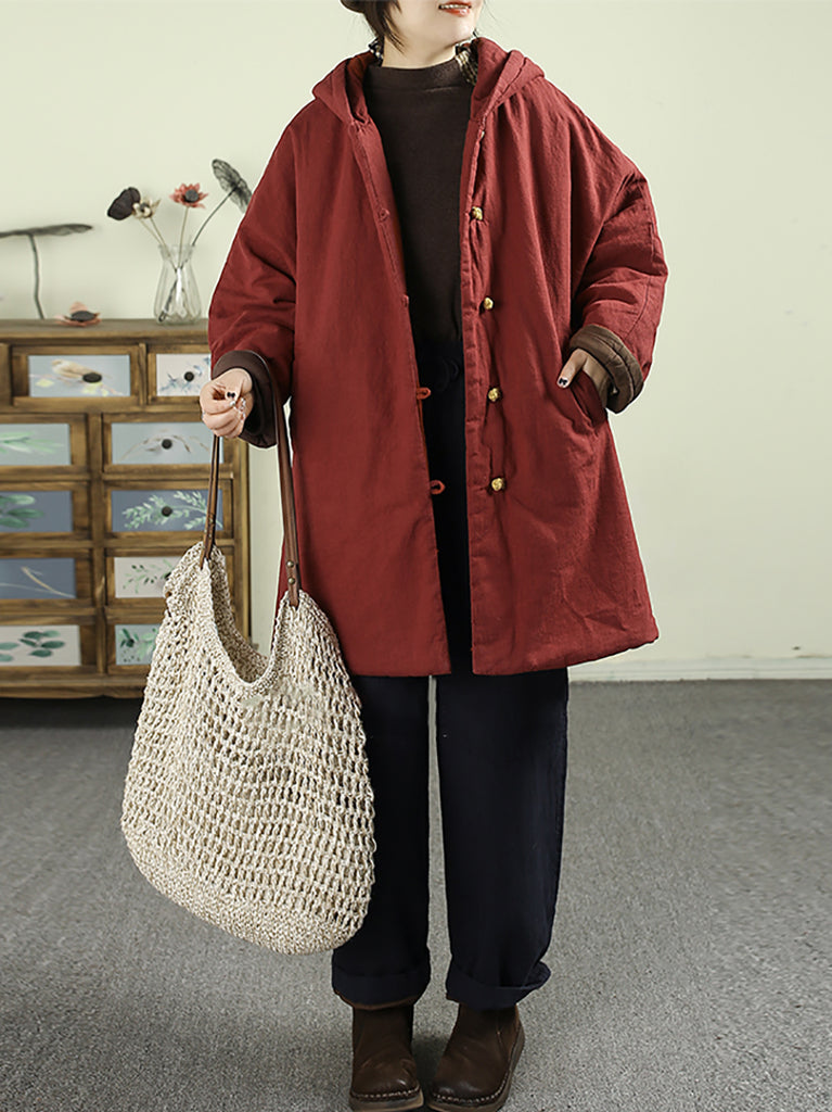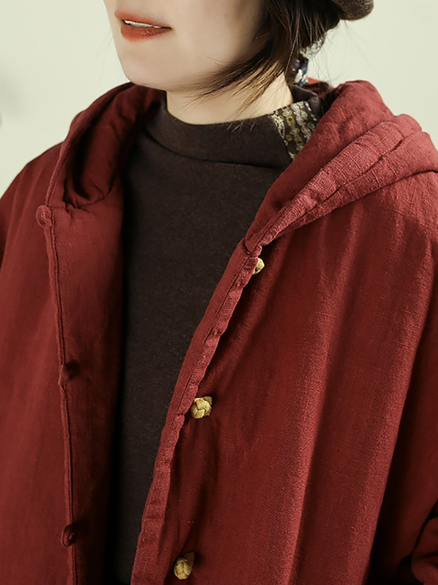 Dames winter retro jas met capuchon, effen kleur, 100% linnen.