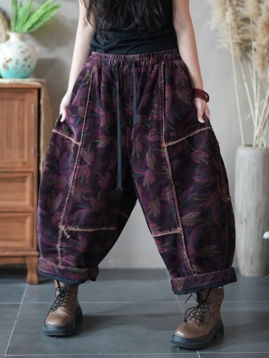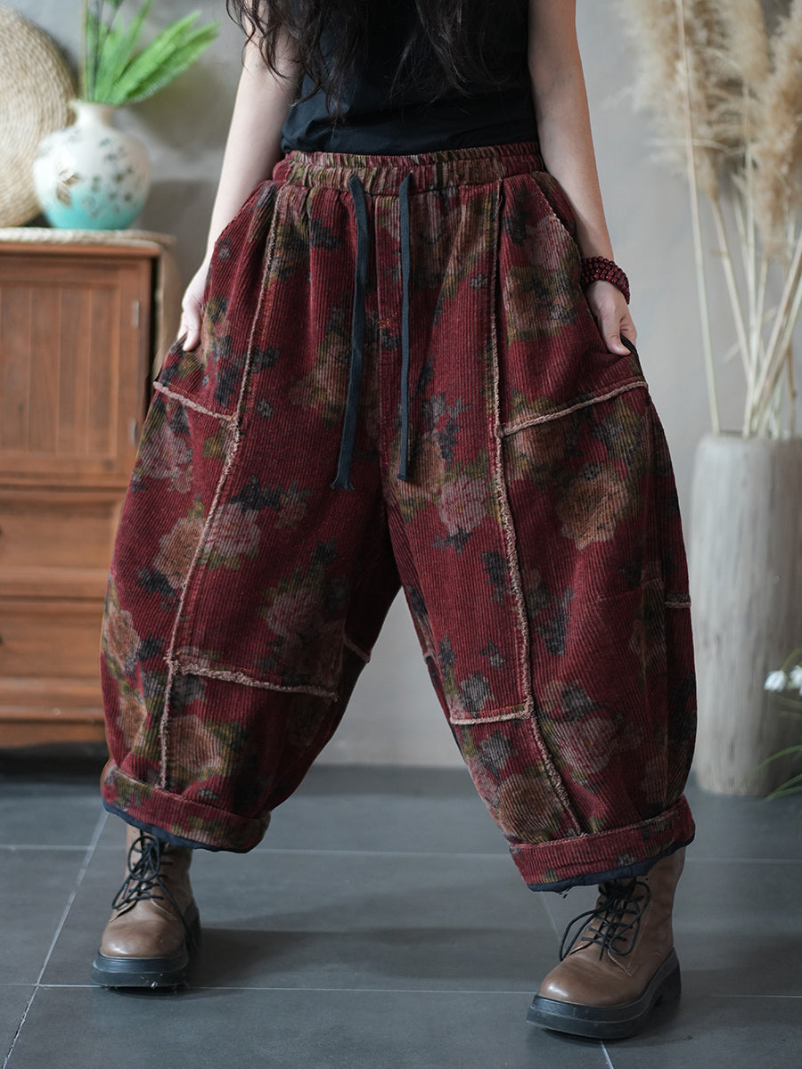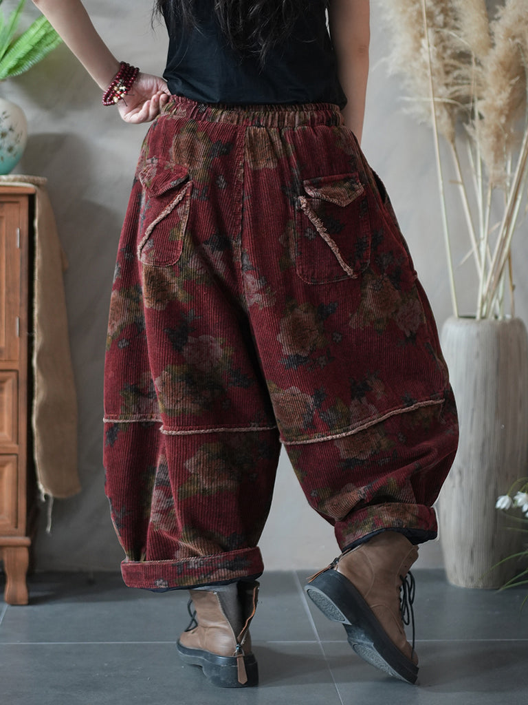Dames Winter Retro Corduroy Bloemen Gesplitste Harembroek