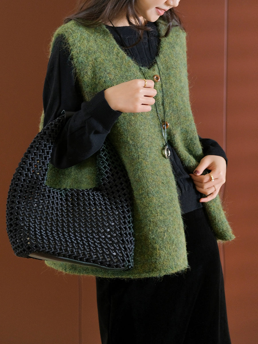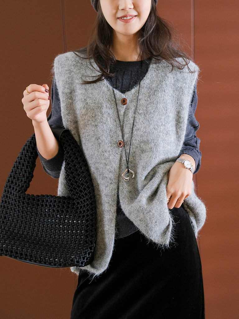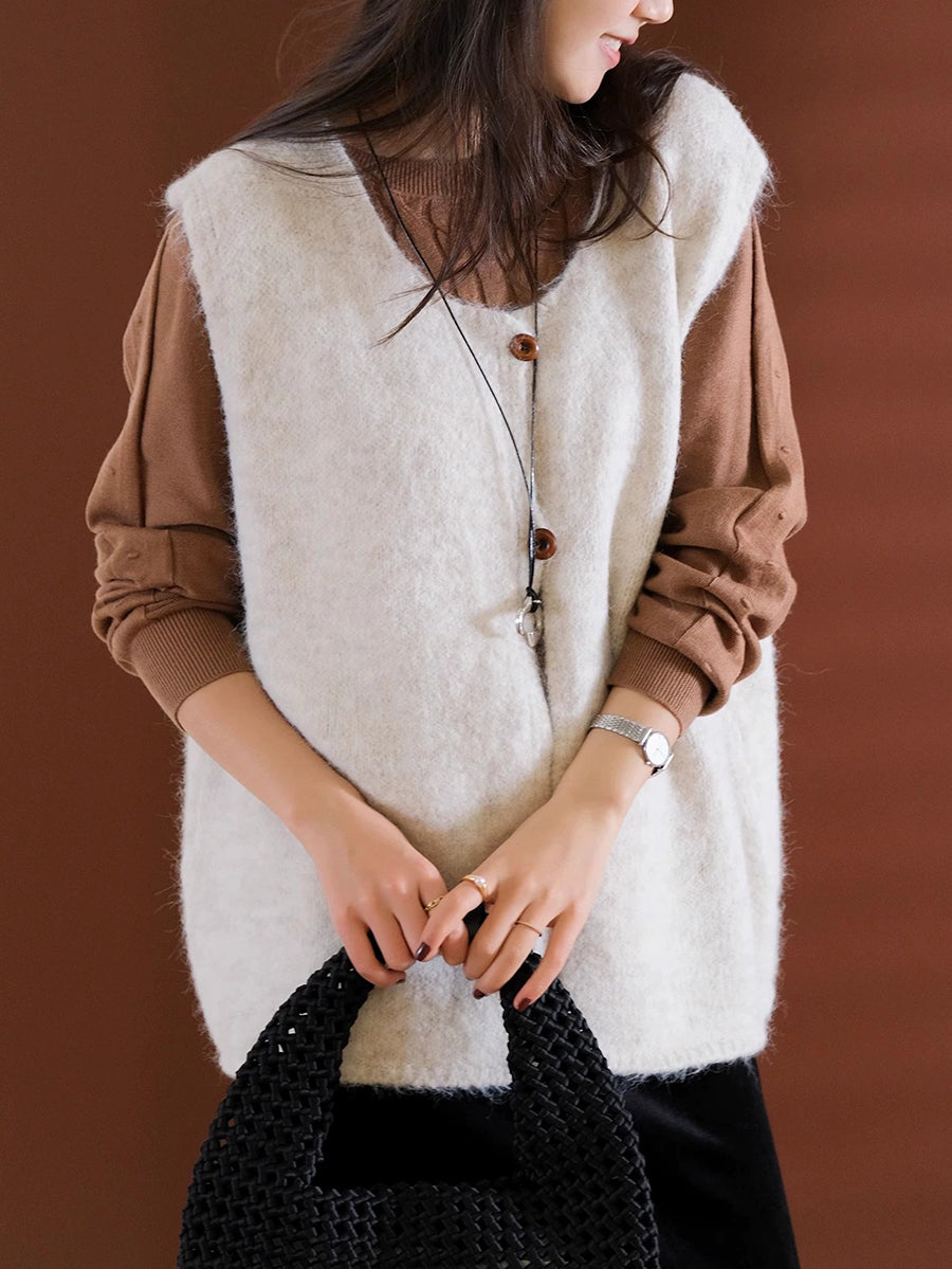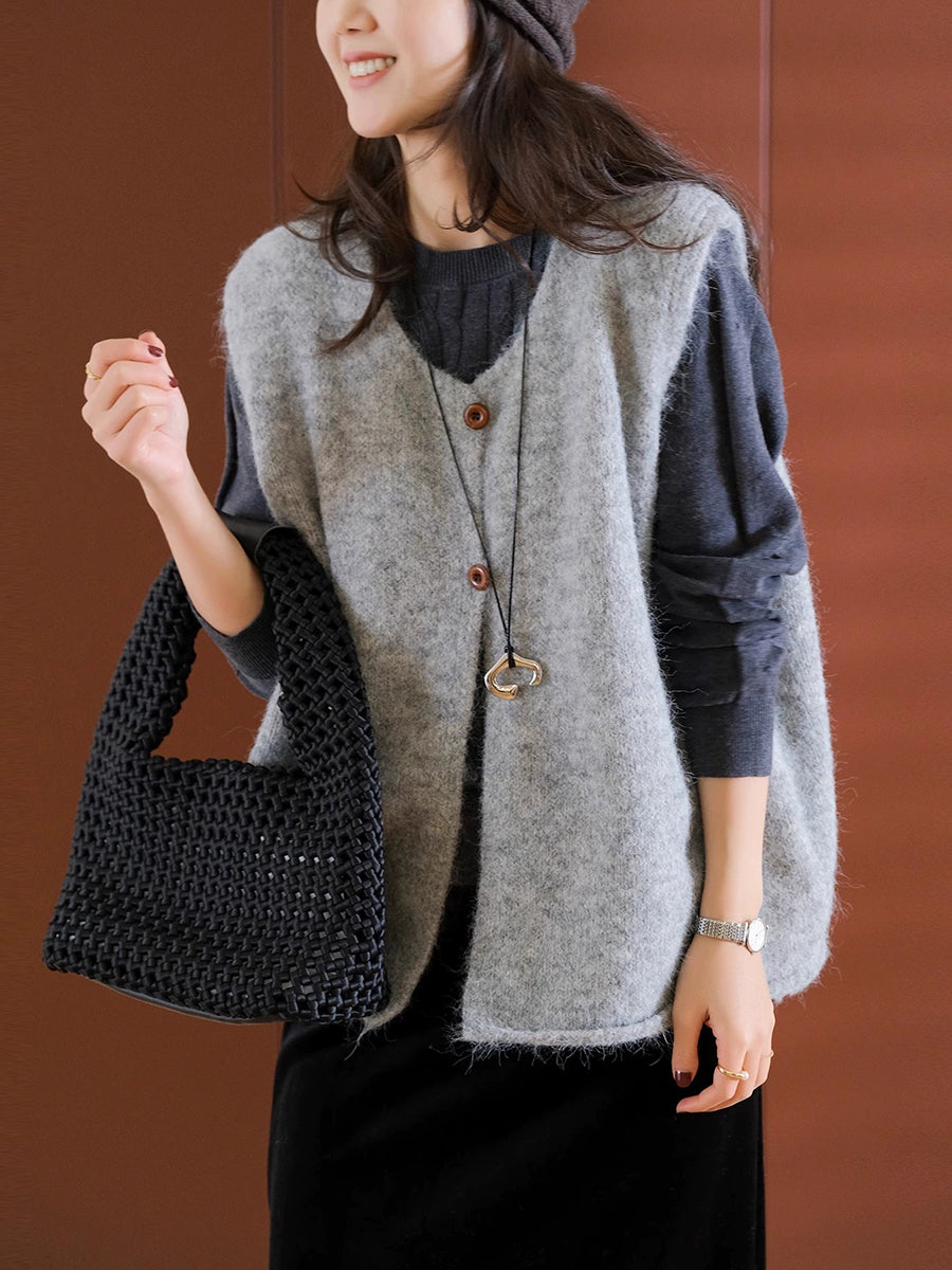 Dames Winter Casual Pure Color V-hals Wollen Vest