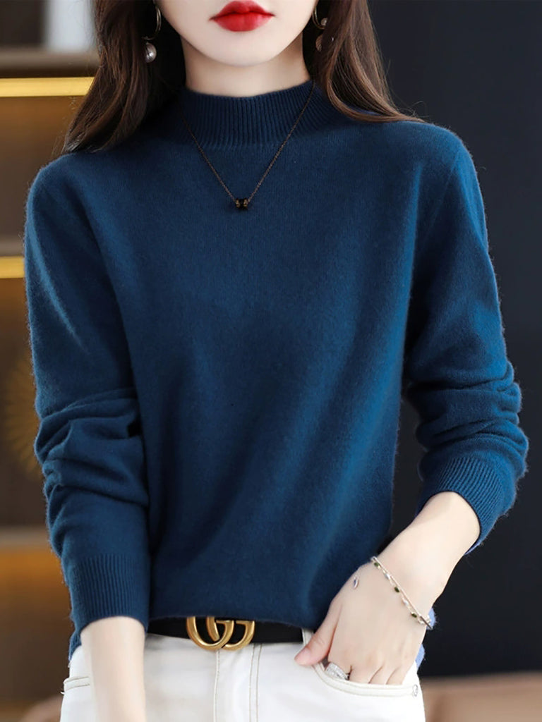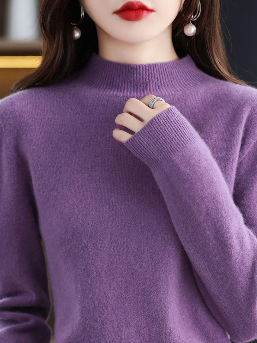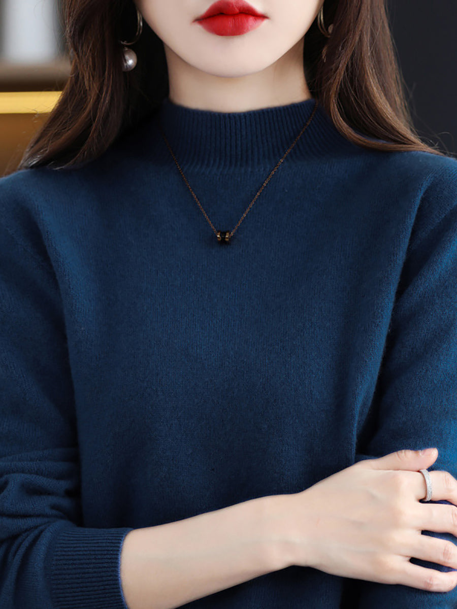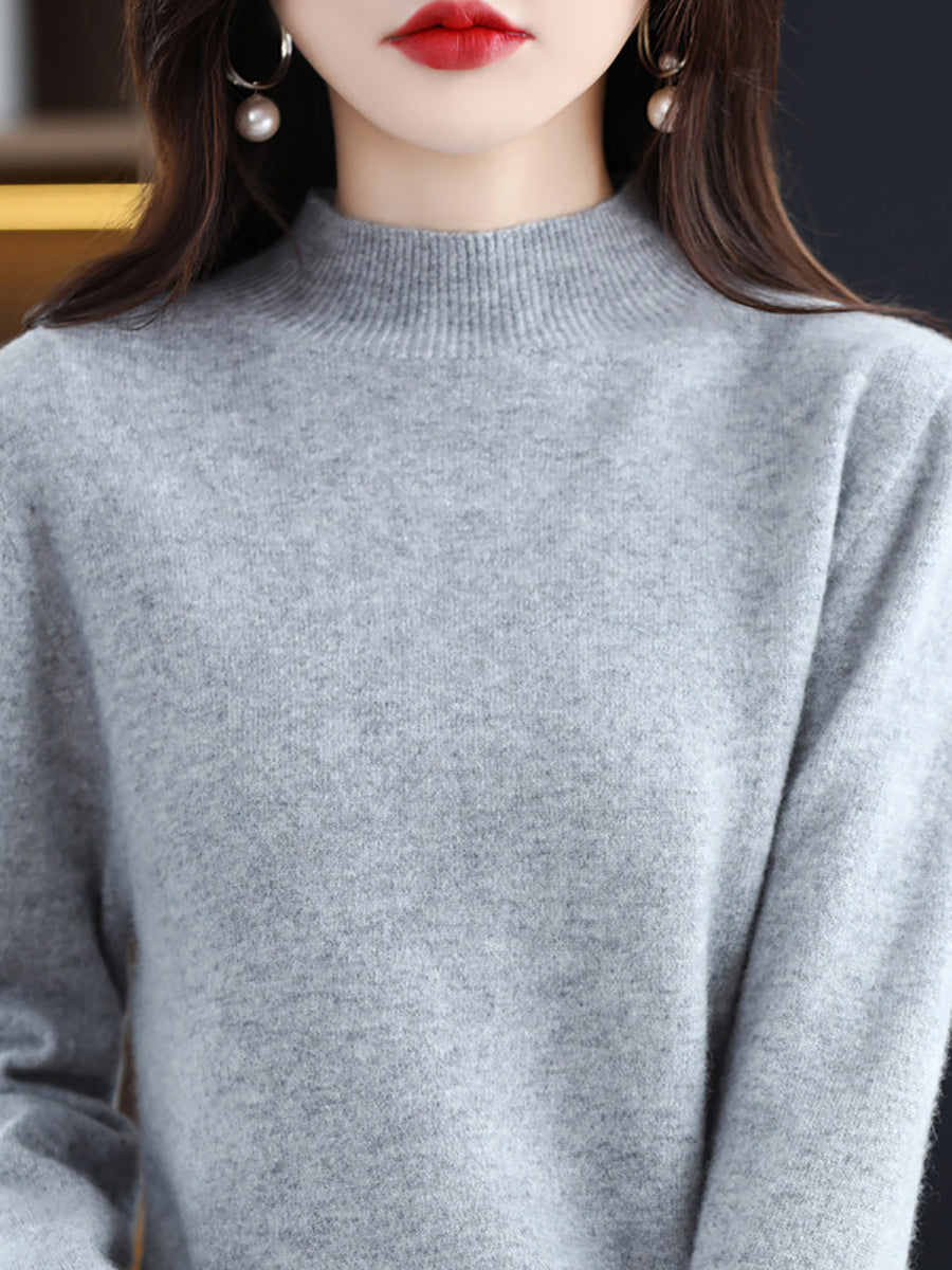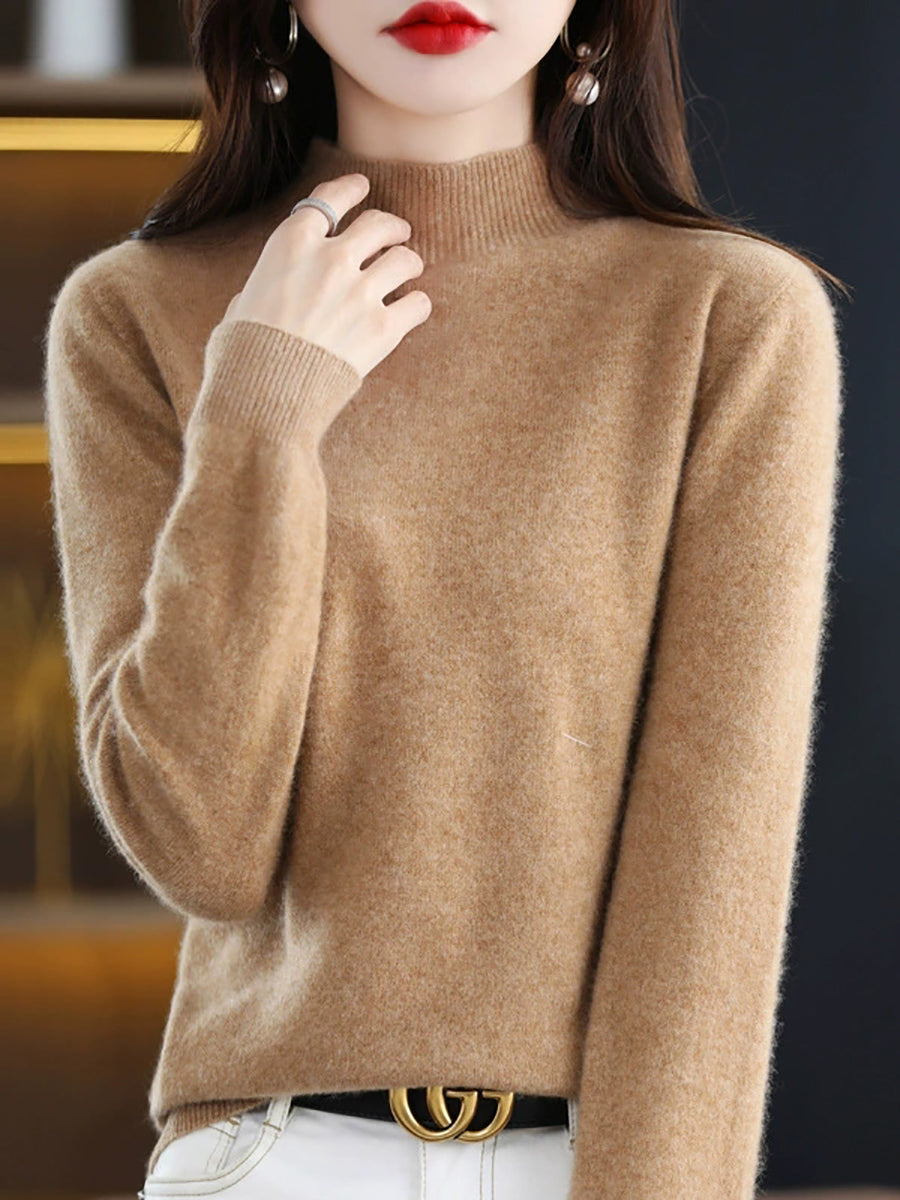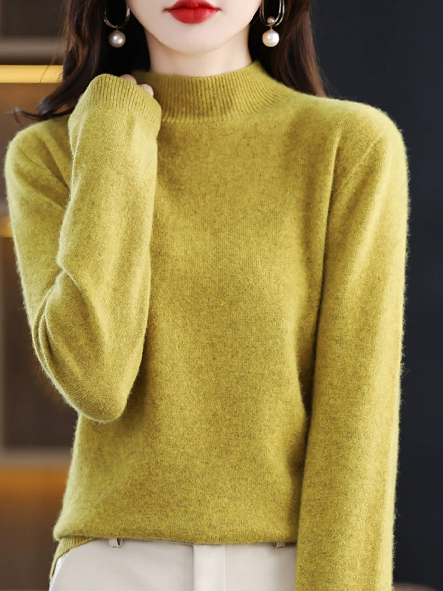 Dames winter gebreide wollen trui met halve coltrui