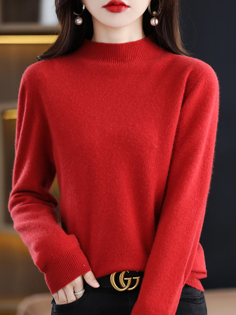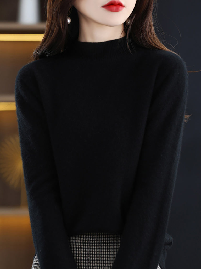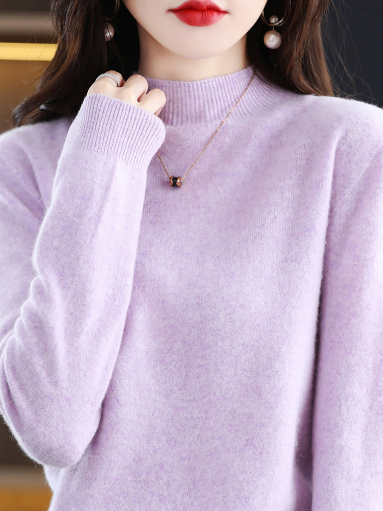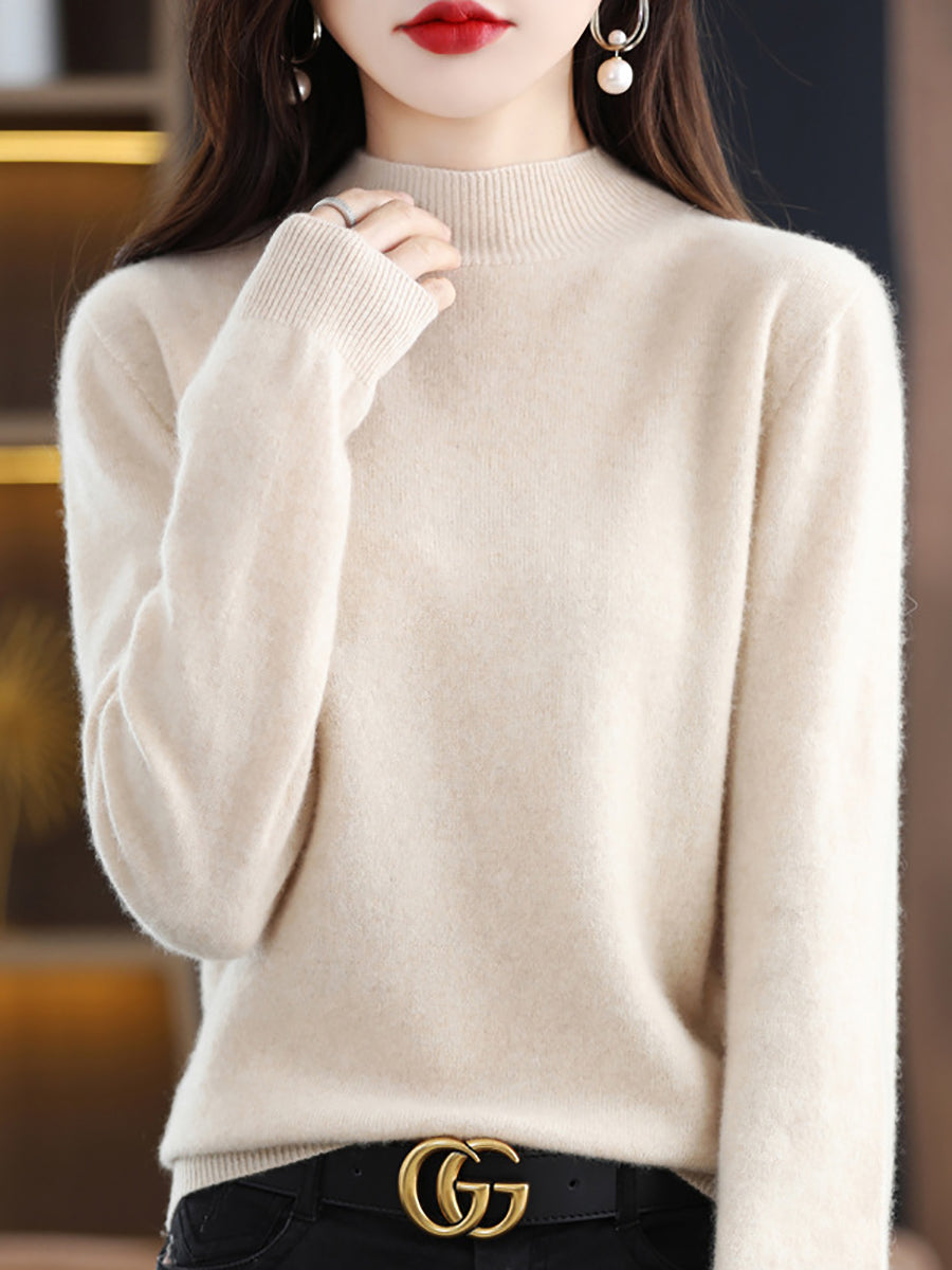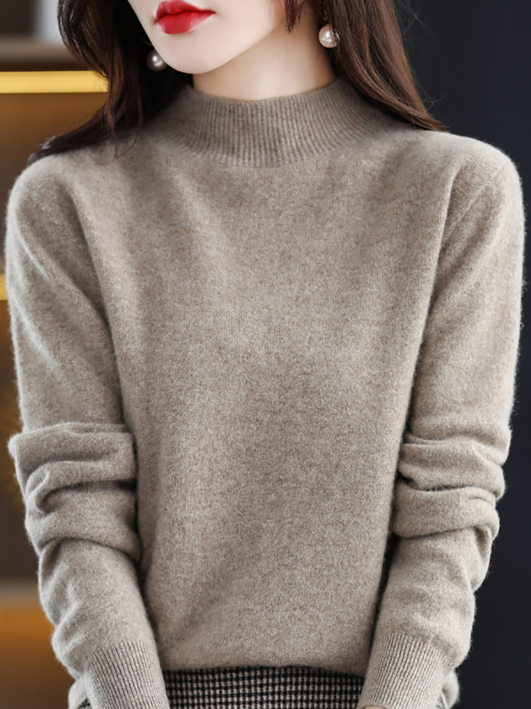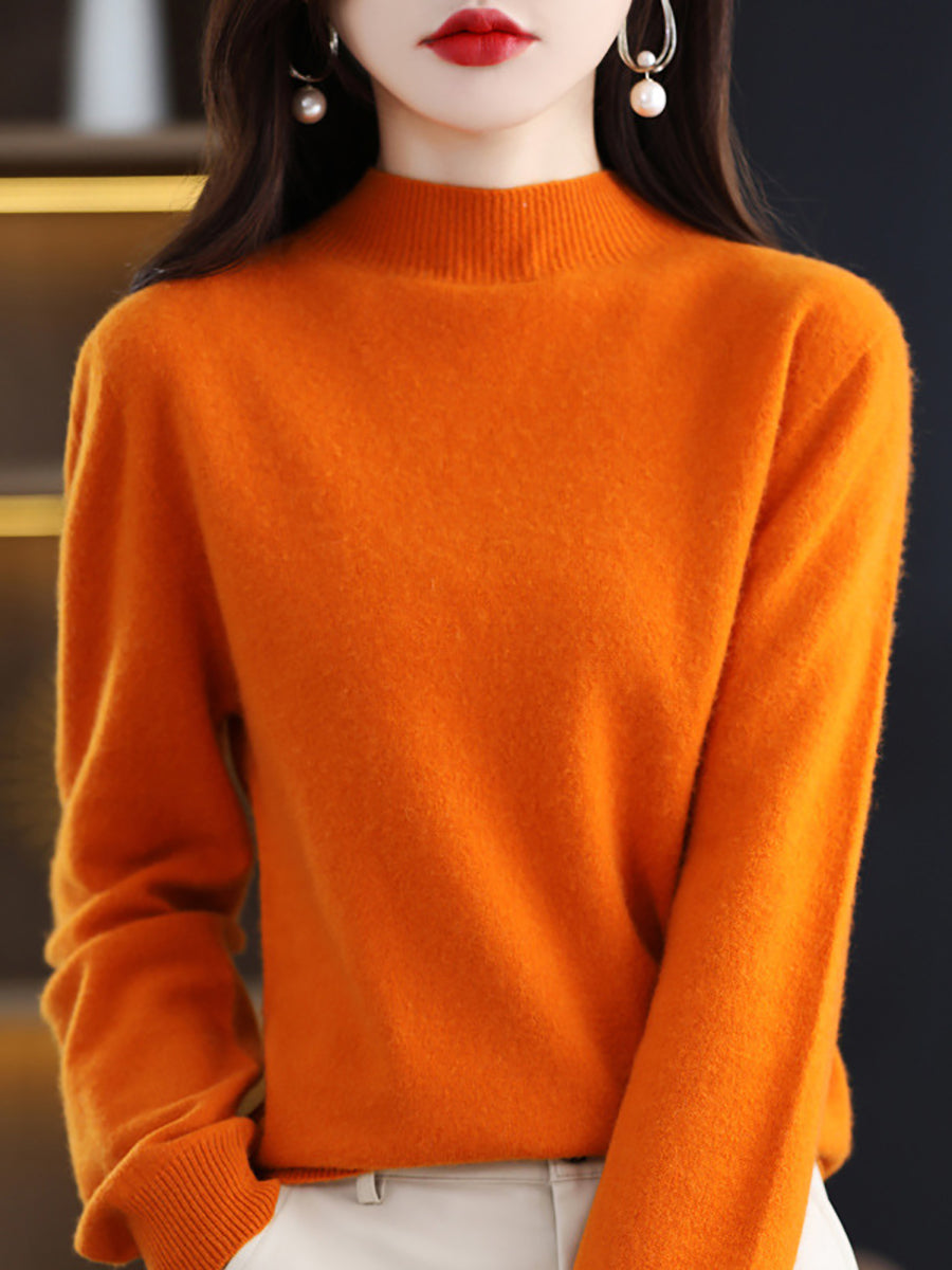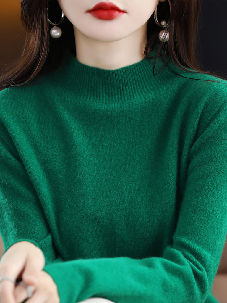 Dames winter gebreide wollen trui met halve coltrui