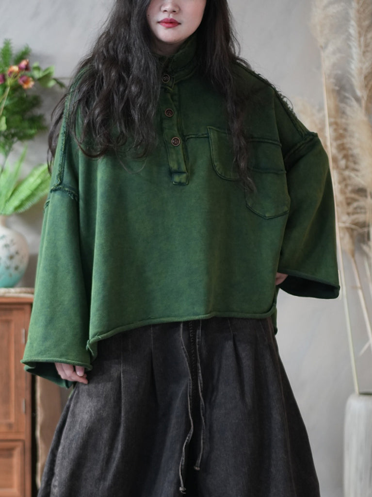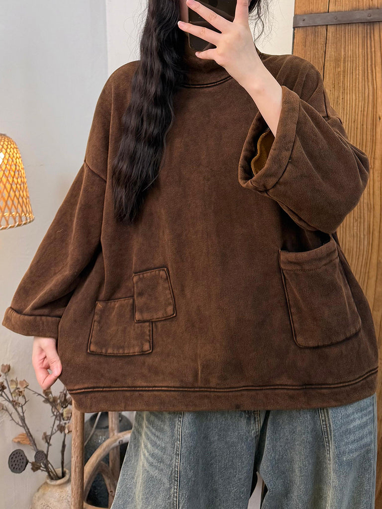 Dames vintage herfst blouse met opstaande kraag en fleecevoering