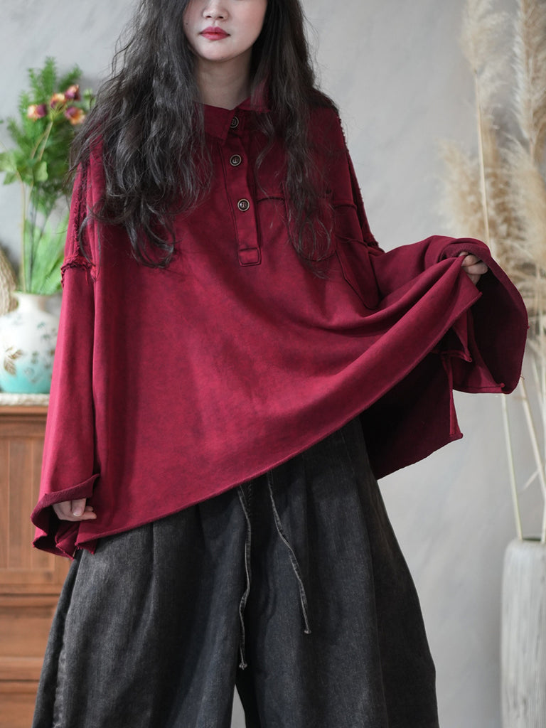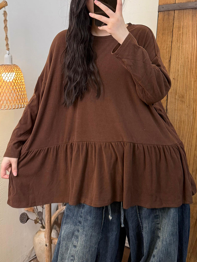 Dames vintage herfst pure kleur o-hals katoenen blouse