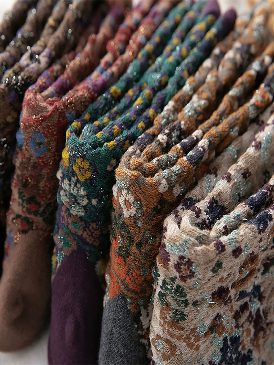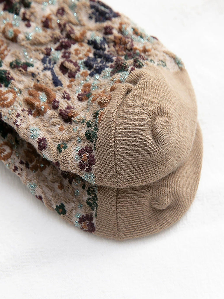 5 paar dames wintersokken met bloemenprint en middelhoge hak