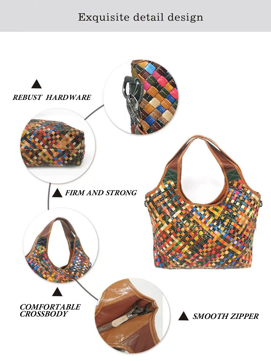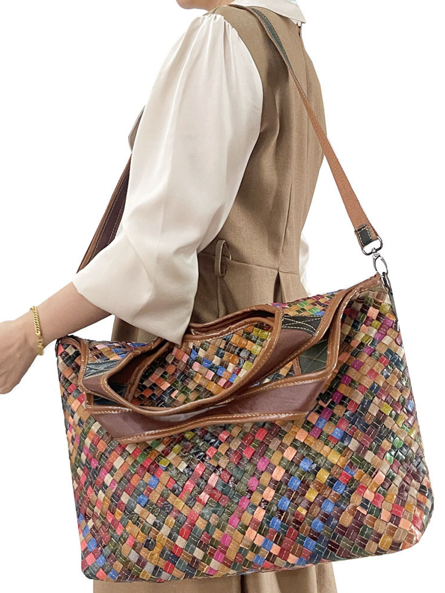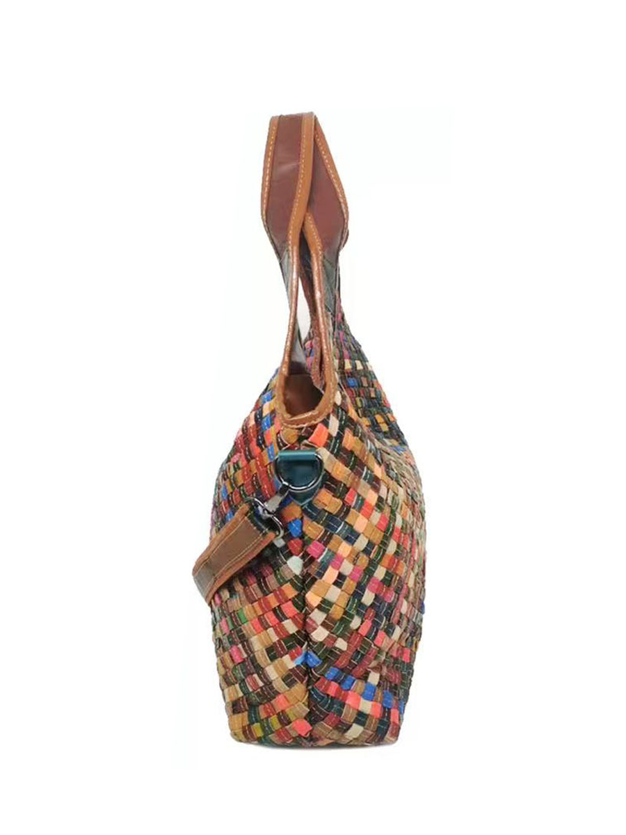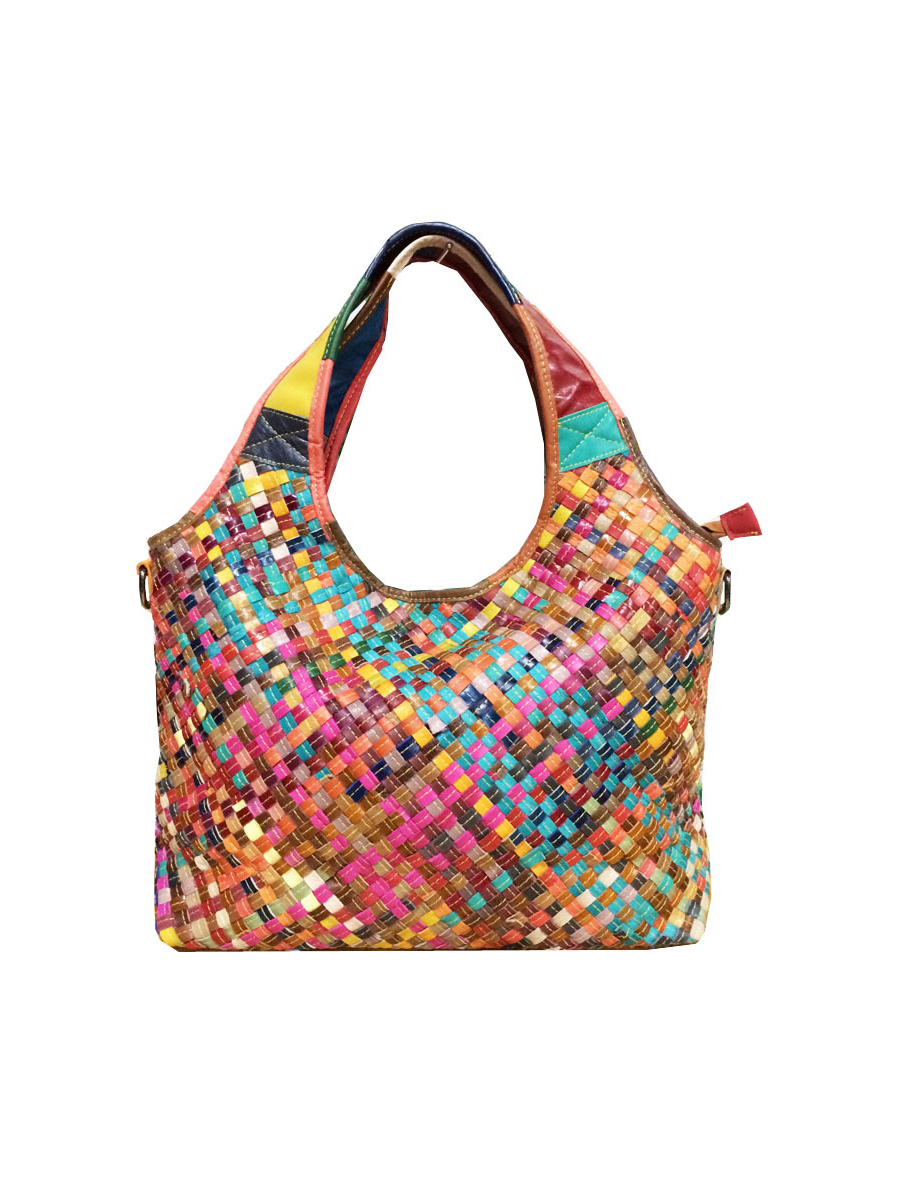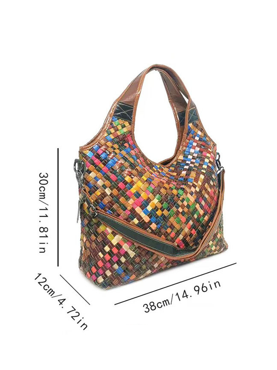 Mulitcolor Dames Leren Geweven Schoudertas