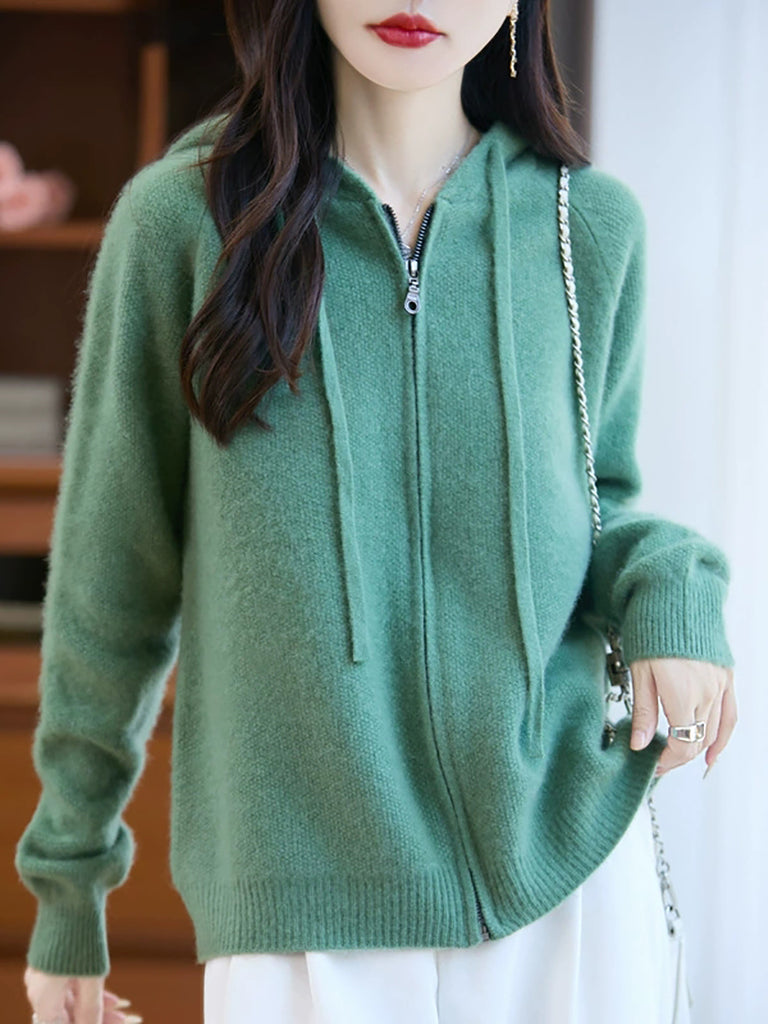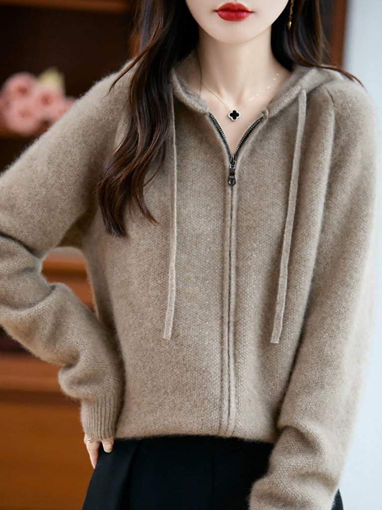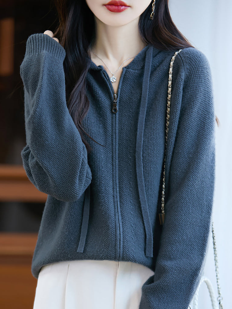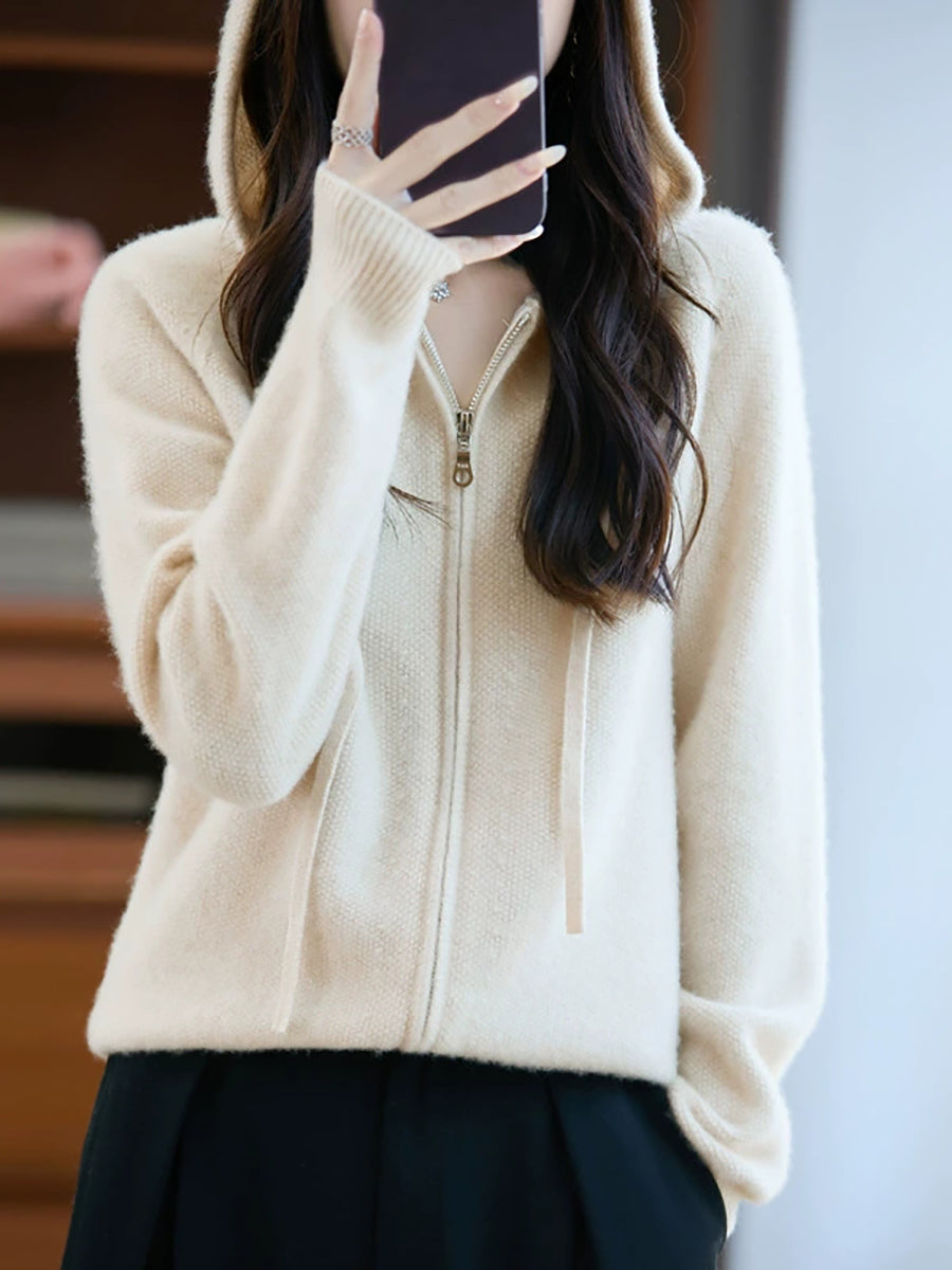 Dames gebreide vest met capuchon in effen kleur voor de herfst