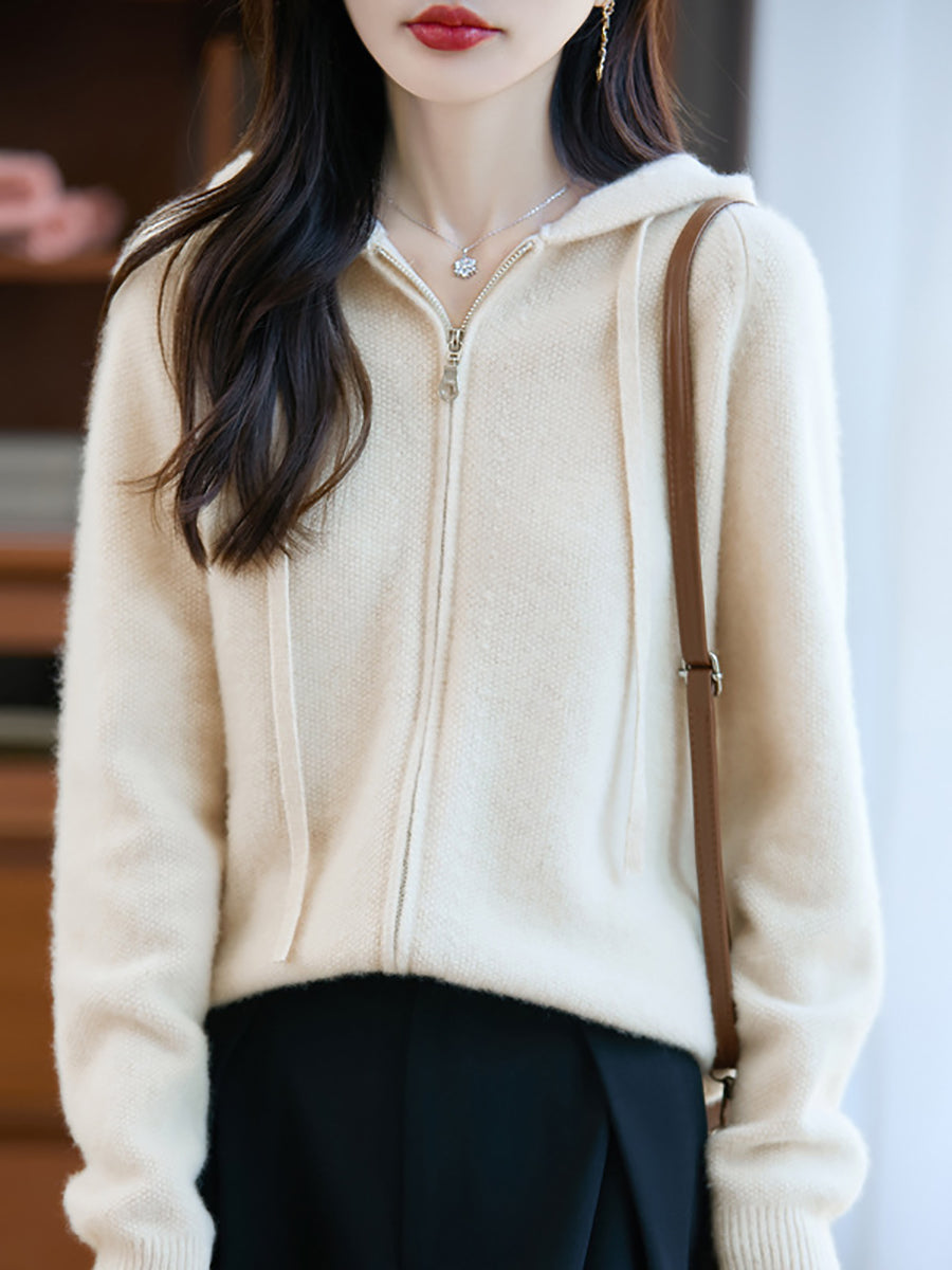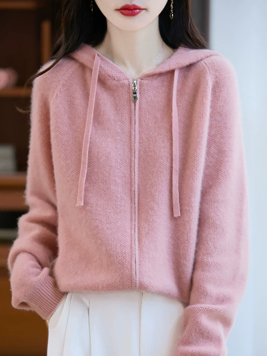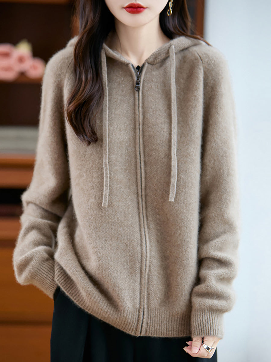Dames gebreide vest met capuchon in effen kleur voor de herfst