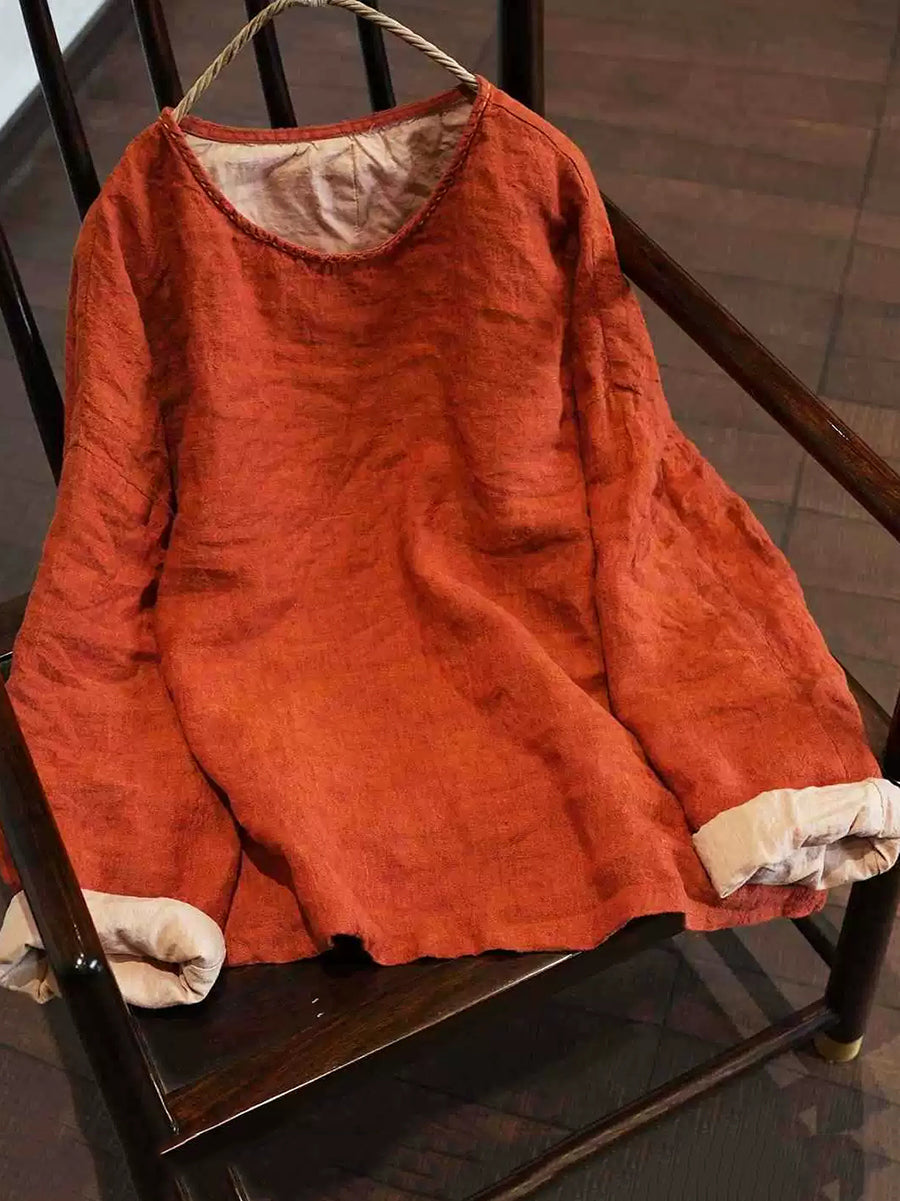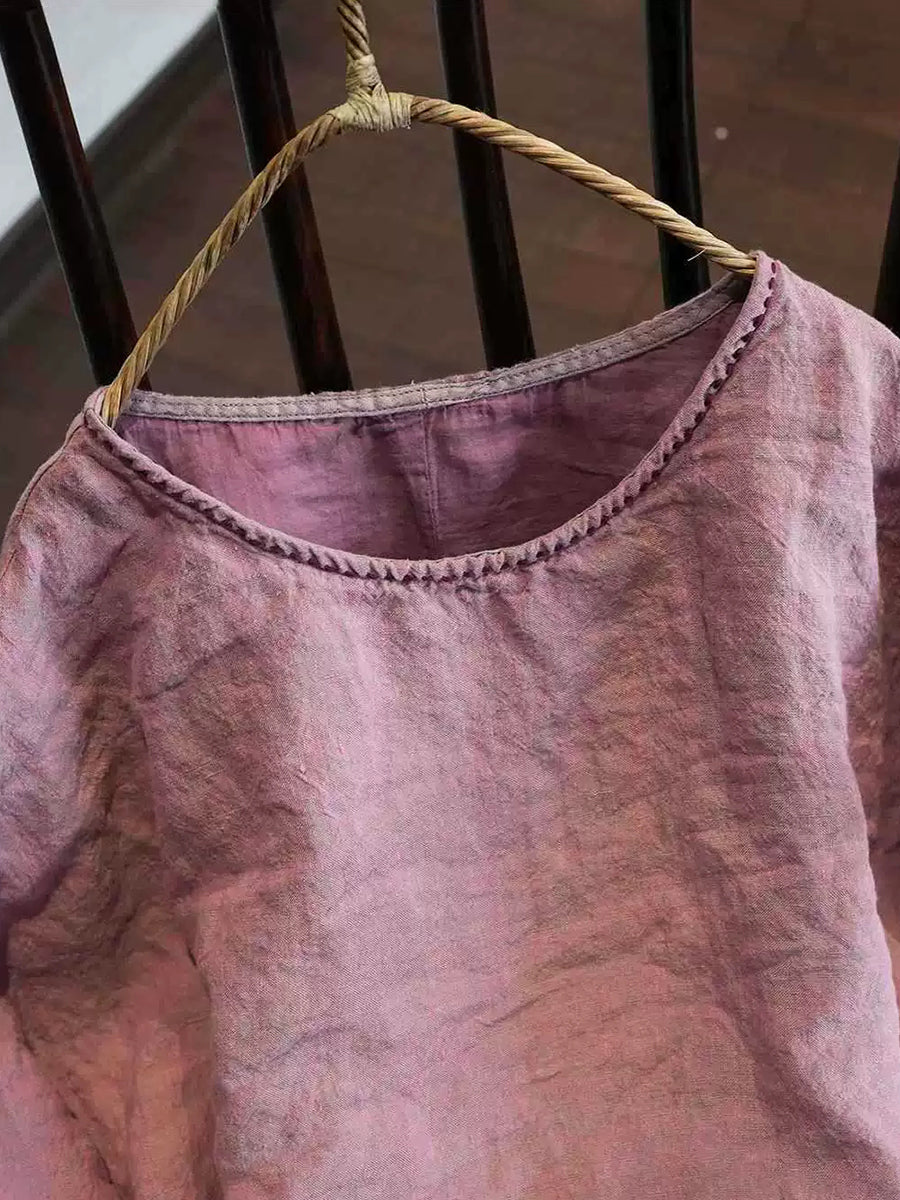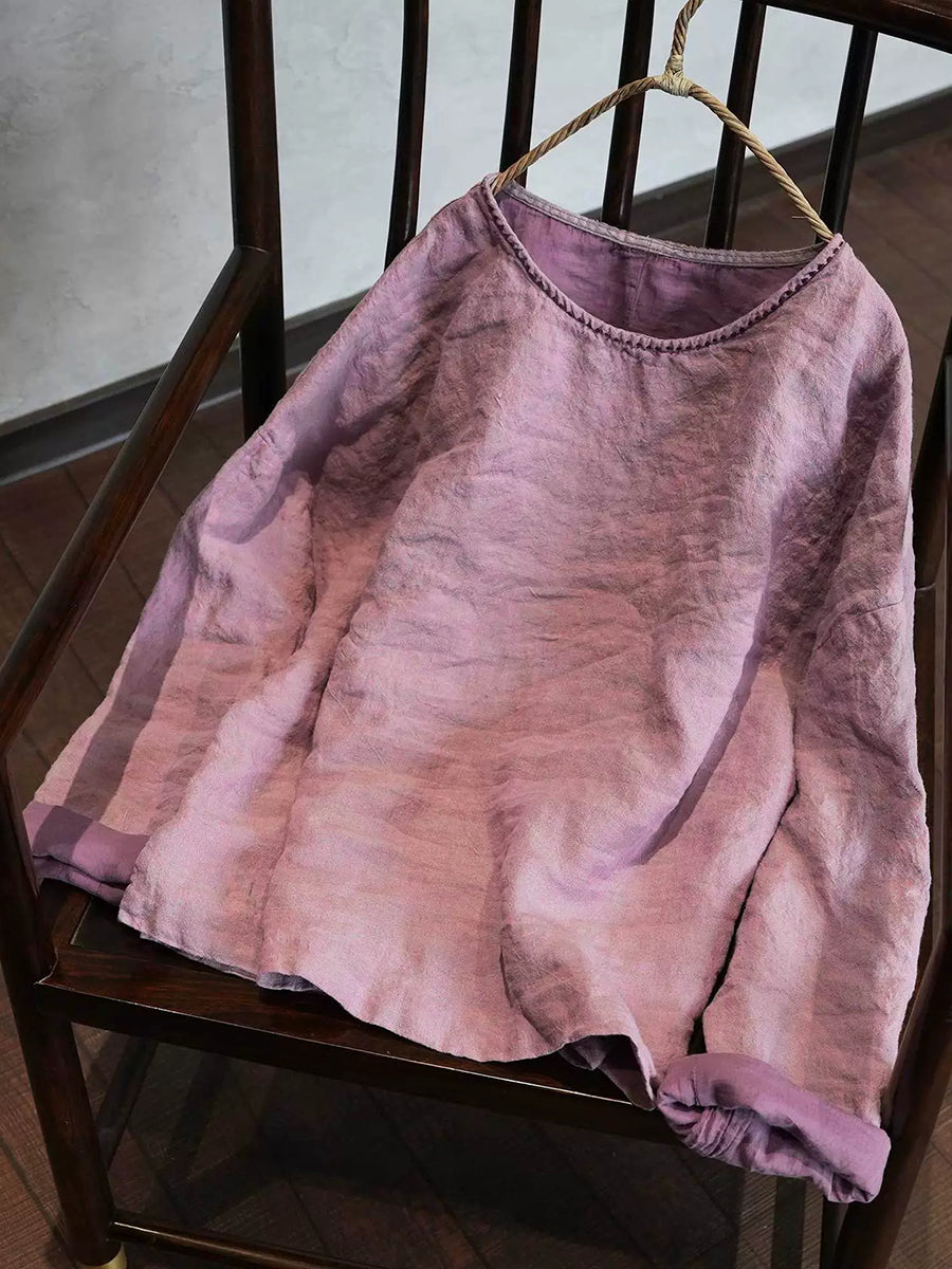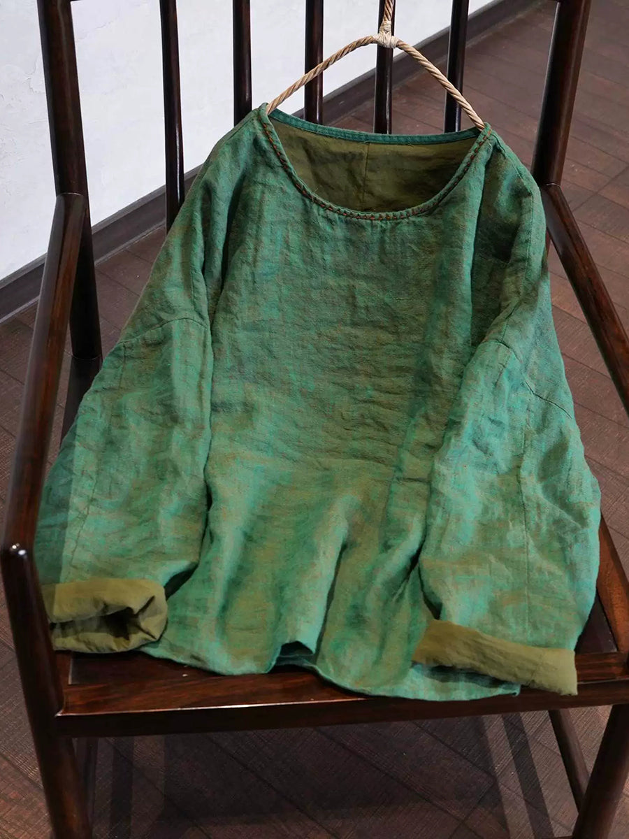 Damesblouse met ronde hals in artistieke stijl, effen kleur