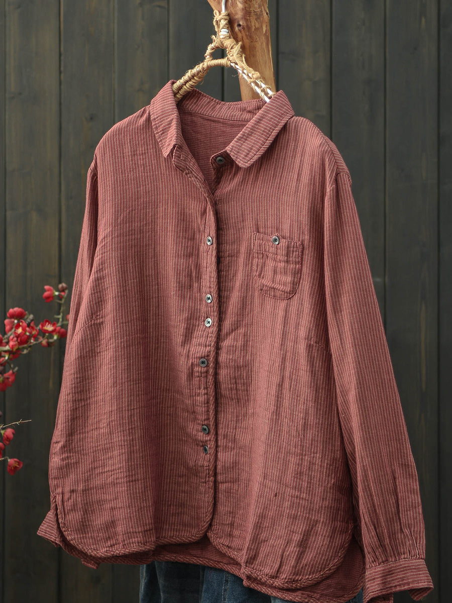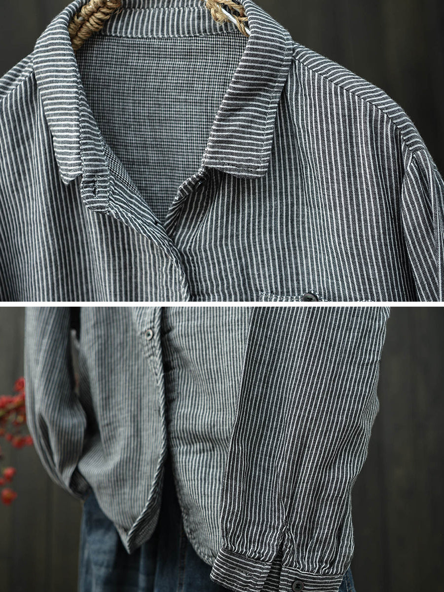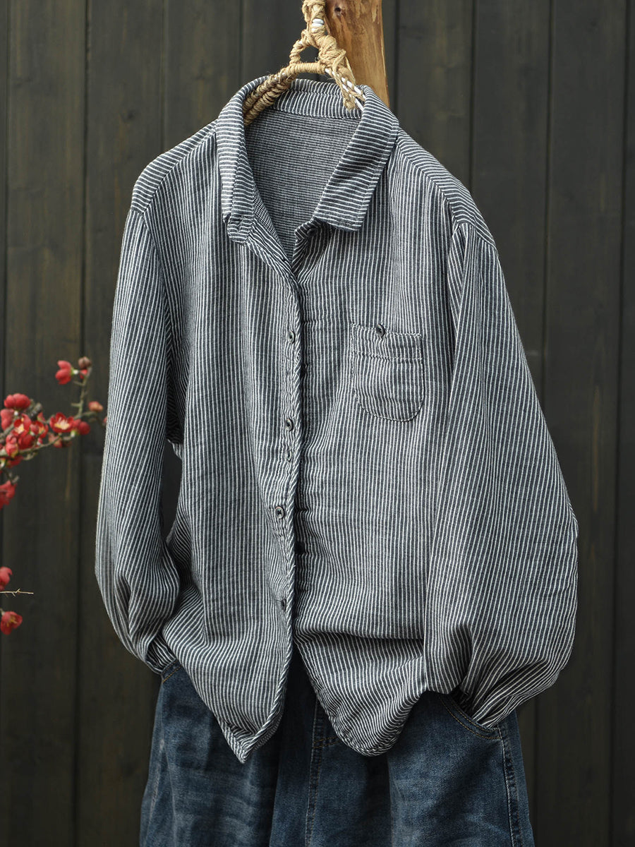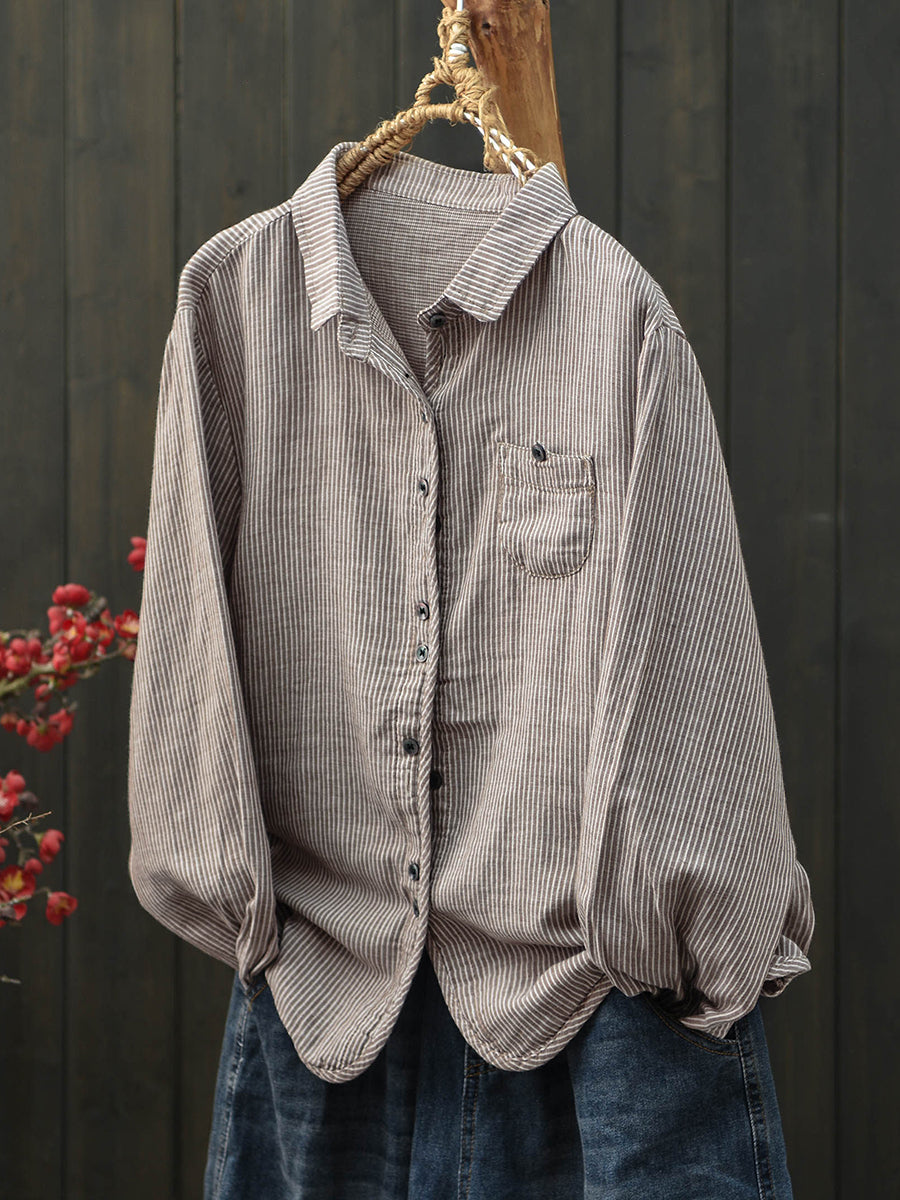 Dames lente overhemd van katoen met artistieke strepen en omgeslagen kraag