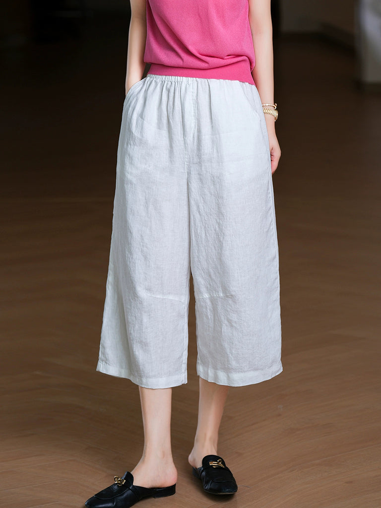 Dames zomer Pure Color 100% linnen wijde cropped broek