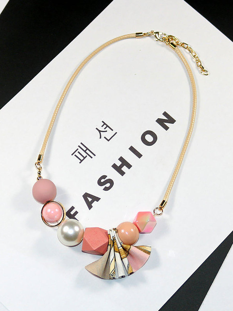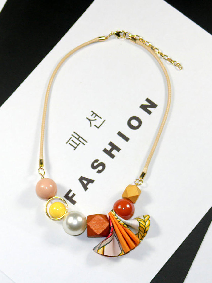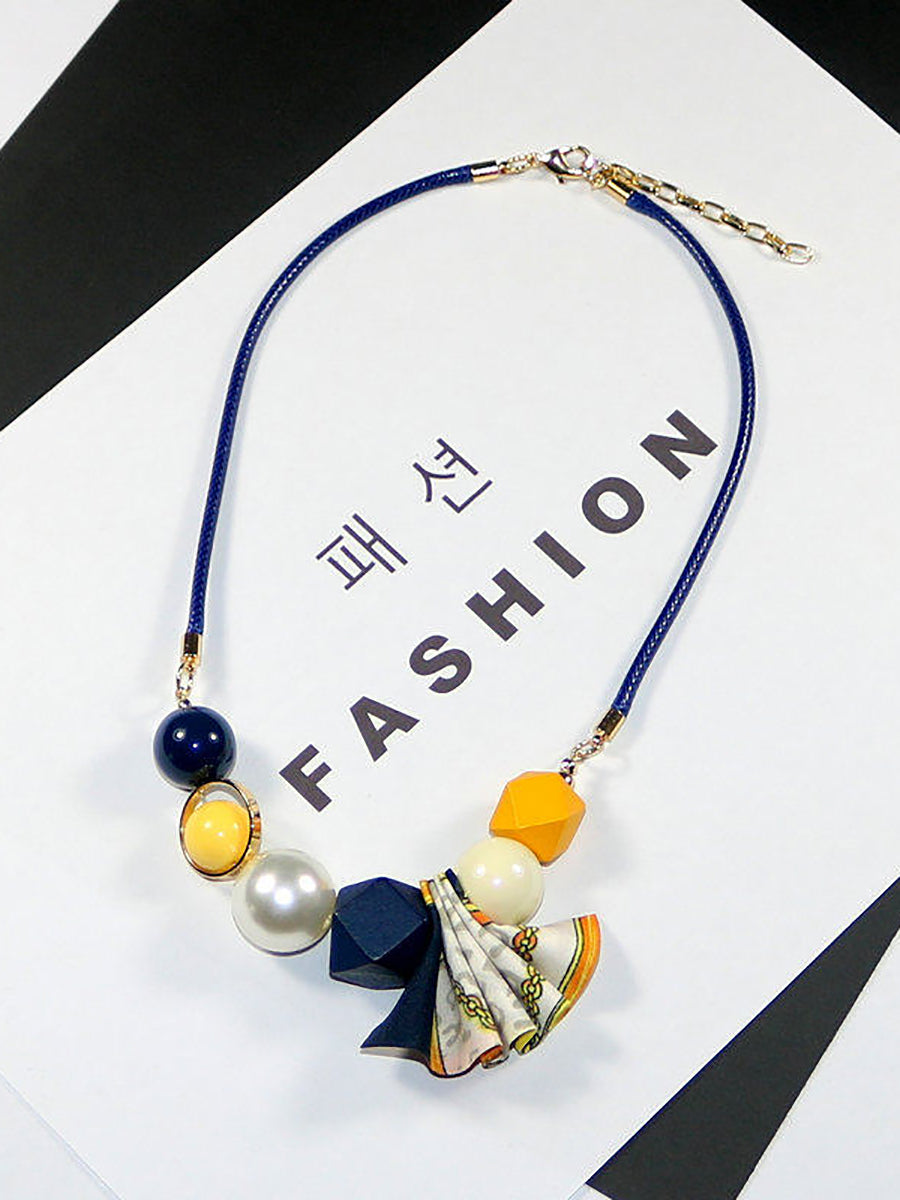 Damesketting van veelzijdige kralen en geweven stof